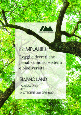 Il prossimo 24 ottobre si svolgerà a partire dalle ore 16.30 presso Palazzo Dosi (Piazza Vittorio Emanuele II, Rieti) un seminario organizzato dal corso di laurea in Scienze della Montagna dal titolo “Leggi e decreti che penalizzano ecosistemi e biodiversità”.