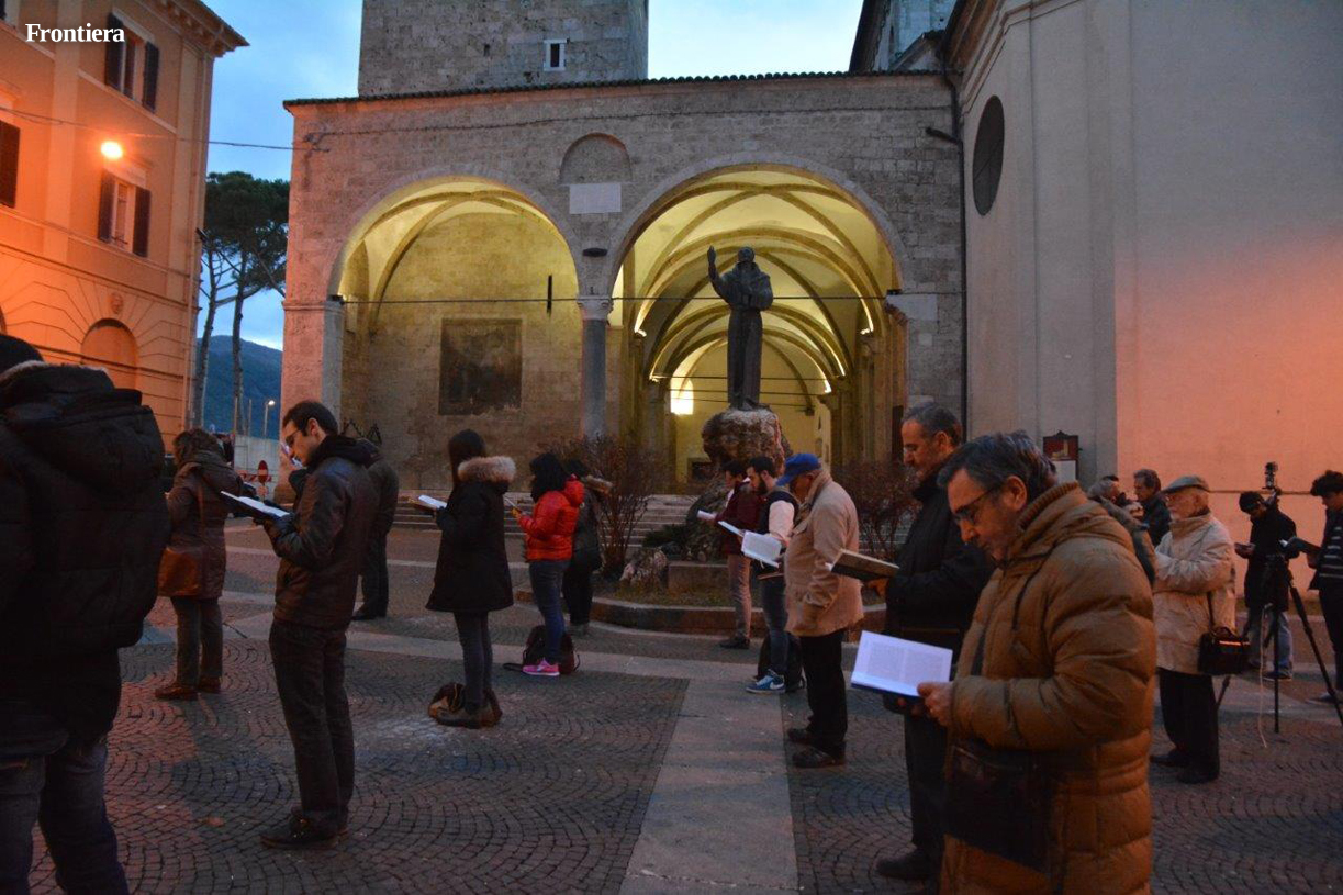 Manifestazioni di segno opposto in centro durante il pomeriggio del 13 dicembre. In piazza Mariano Vittori, c’erano infatti le “Sentinelle in Piedi”, preoccupate dal decreto “Scalfarotto”, e impegnate a denunciare i pericoli per la libertà d’espressione impliciti nella legge per il contrasto all’omofobia in discussione in Parlamento.