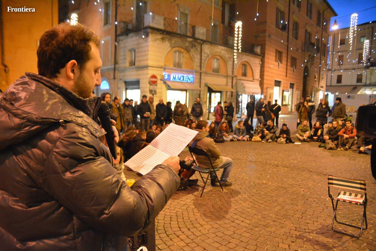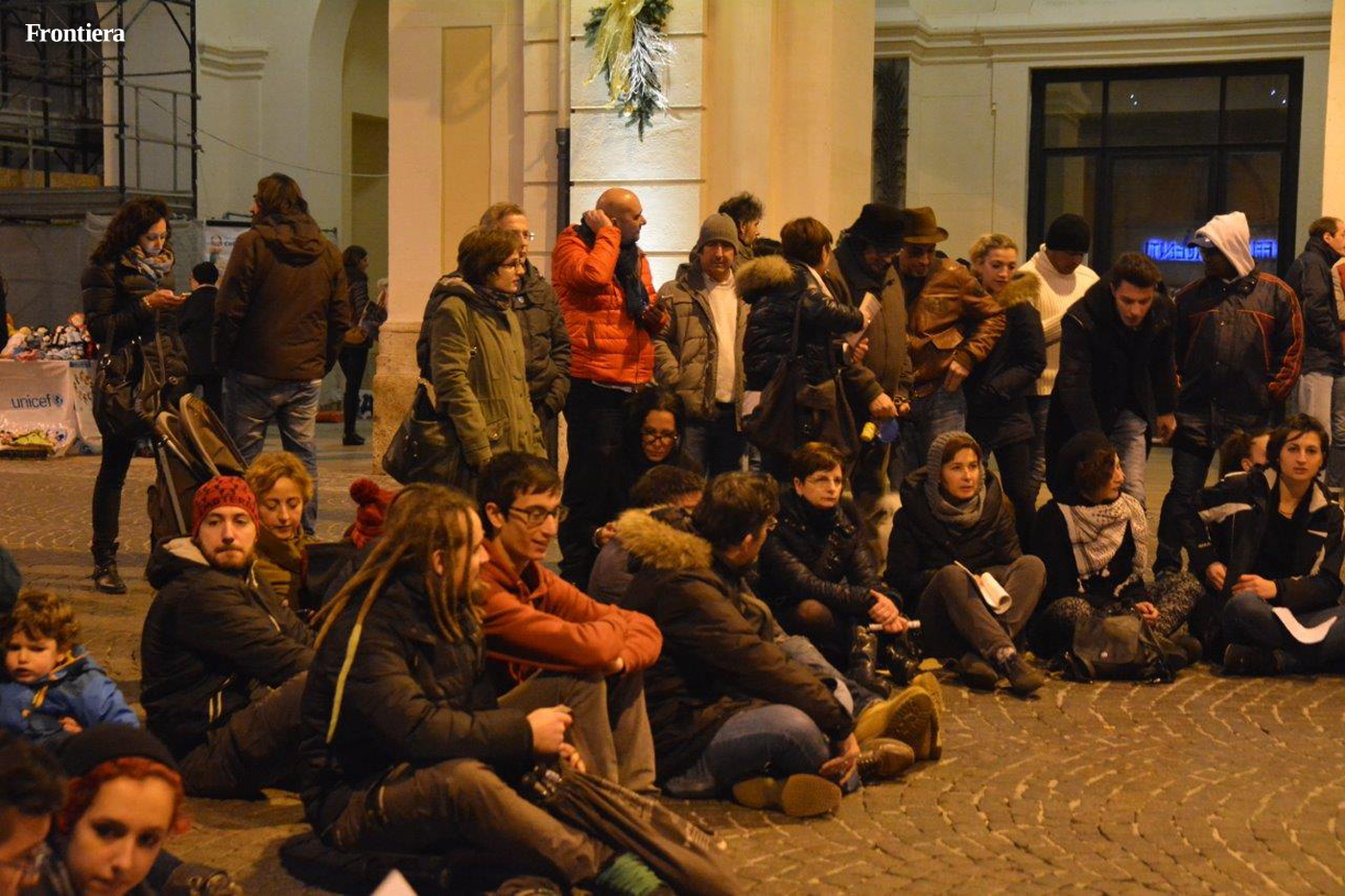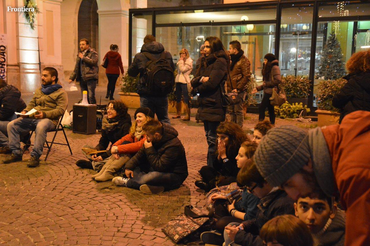 Manifestazioni di segno opposto in centro durante il pomeriggio del 13 dicembre. In piazza Mariano Vittori, c’erano infatti le “Sentinelle in Piedi”, preoccupate dal decreto “Scalfarotto”, e impegnate a denunciare i pericoli per la libertà d’espressione impliciti nella legge per il contrasto all’omofobia in discussione in Parlamento.