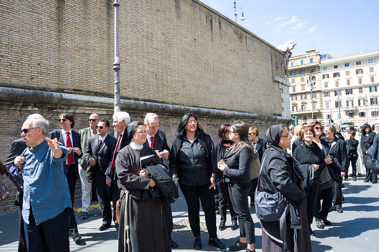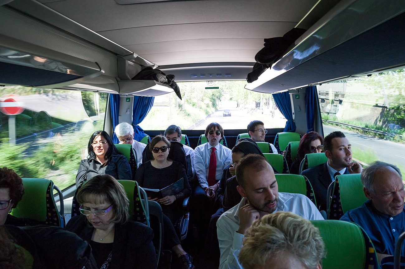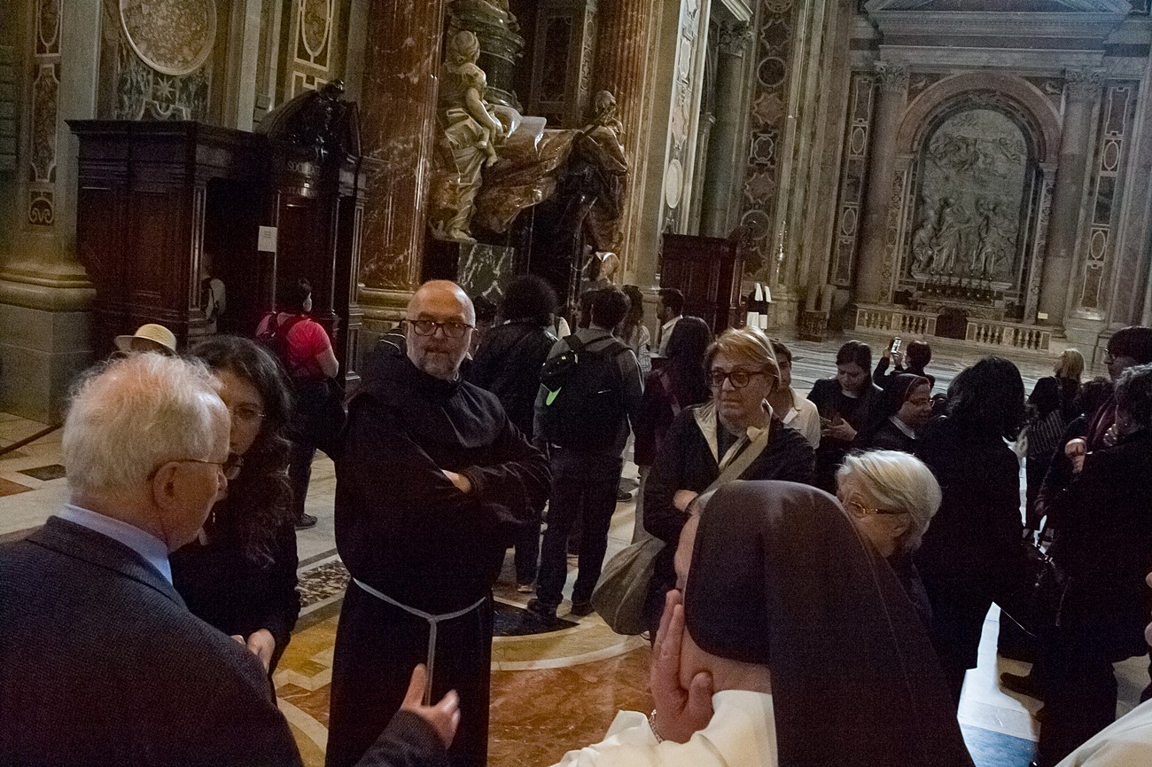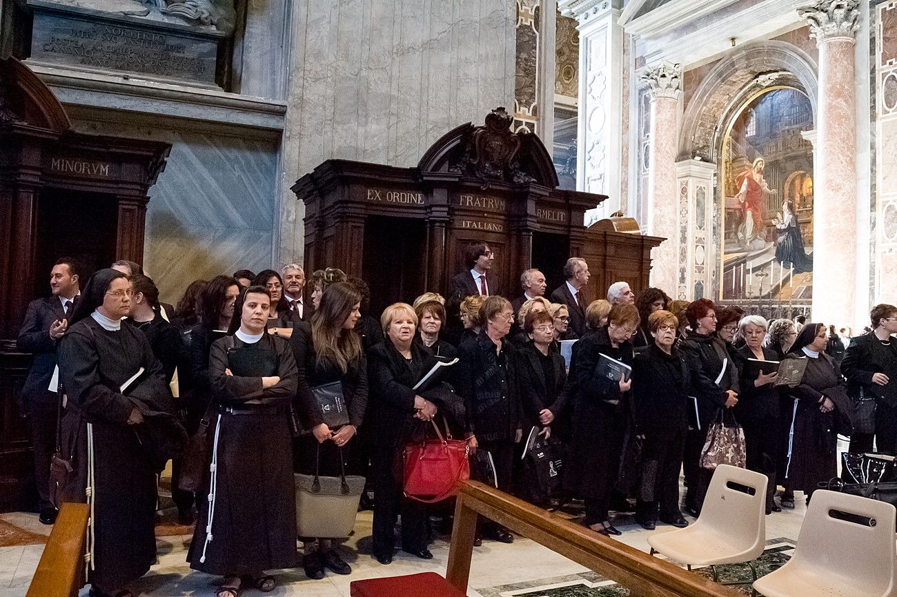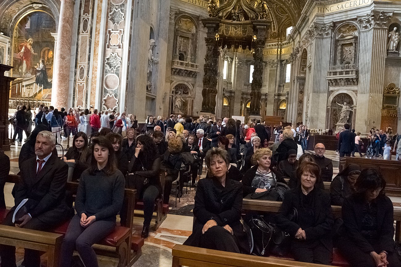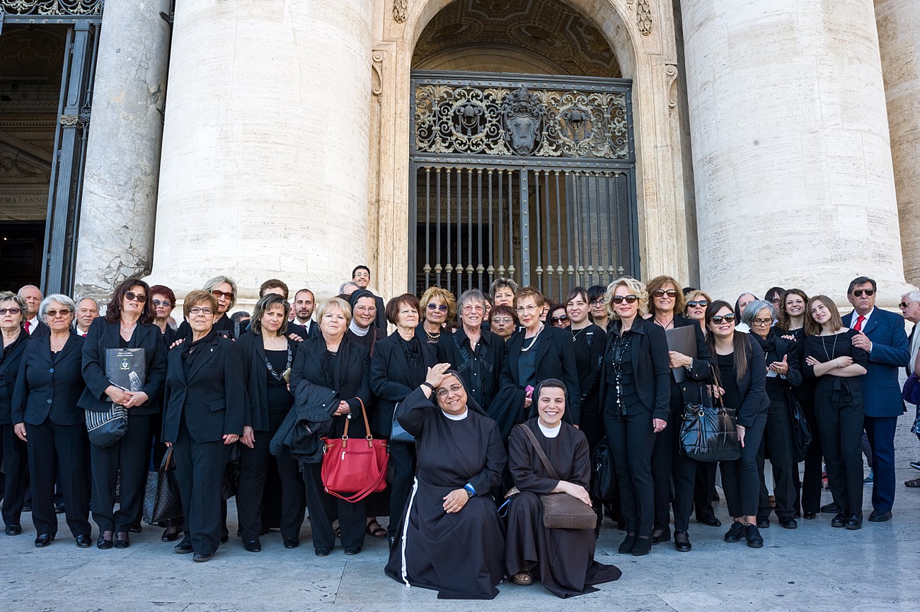 Prima di impartire la benedizione al termine della veglia, mons Pompili ha voluto espressamente ringraziare la schola per il generoso servizio prestato nei giorni faticosi eppure appaganti della Settimana Santa e soprattutto per l’aiuto che il repertorio scelto e l’atteggiamento dei coristi hanno recato alla preghiera di tutti. Per don Domenico, poco amante degli intermezzi extraliturgici all’interno delle celebrazioni, si è trattato di un gesto irrituale, che peraltro non è stato l’unico. Il grazie del vescovo non si è infatti fermato alle parole, ma si è tramutato in dono concreto: il 30 aprile, III domenica di Pasqua, grazie al suo interessamento i cantori sono stati gratificati anche con l’onore di poter animare una messa all’altare della Cattedra in San Pietro. A presiedere l’arciprete della Basilica Vaticana, il cardinale Angelo Comastri, che prima di congedare l’assemblea ha lodato il contributo del coro alla celebrazione e ha augurato alla diocesi reatina di potersi al più presto risollevare dopo il trauma del sisma che l’ha così duramente colpita. Molto soddisfatti il maestro Temistocle Capone, direttore della cappella musicale del Vicariato di San Pietro e responsabile dell’accoglienza dei cori ospiti in basilica, che ha già rinnovato l’invito per un’altra occasione, e il direttore dell’Ufficio liturgico, padre Ezio Casella, che ha accompagnato la schola nella trasferta romana e ha concelebrato insieme a un altro sacerdote reatino, don Zdenek Kopriva, a Roma con l’Azione Cattolica diocesana per i 150 anni dell’associazione. Don Roberto D’Ammando, anch’egli a Roma per lo stesso motivo, ha ripreso il suo posto fra i tenori, come sempre fa ogni volta che il nuovo incarico di vicario parrocchiale di San Giovanni Battista a Campoloniano glielo permette.