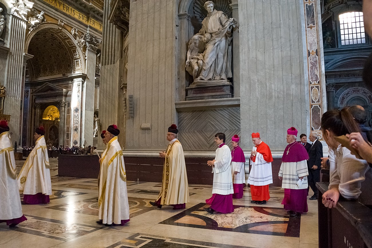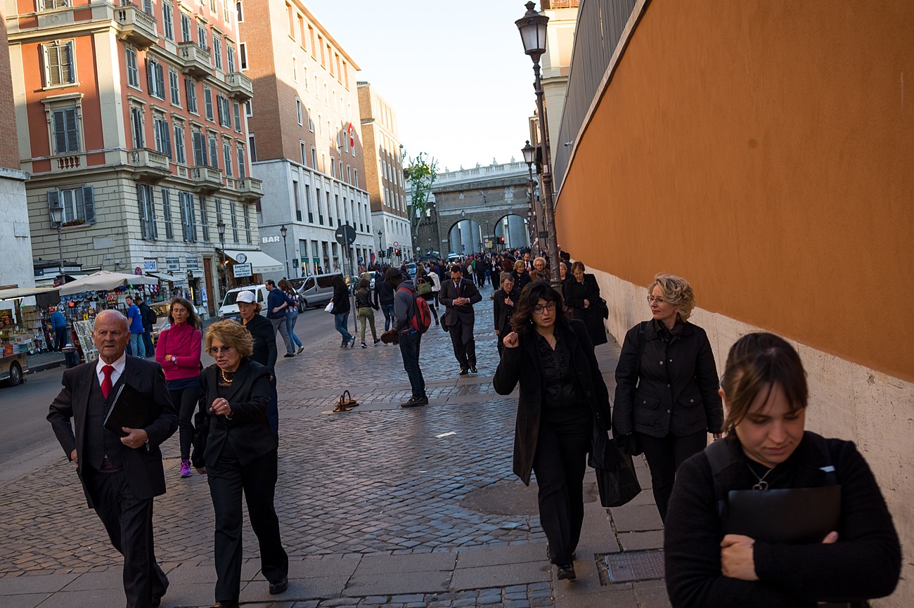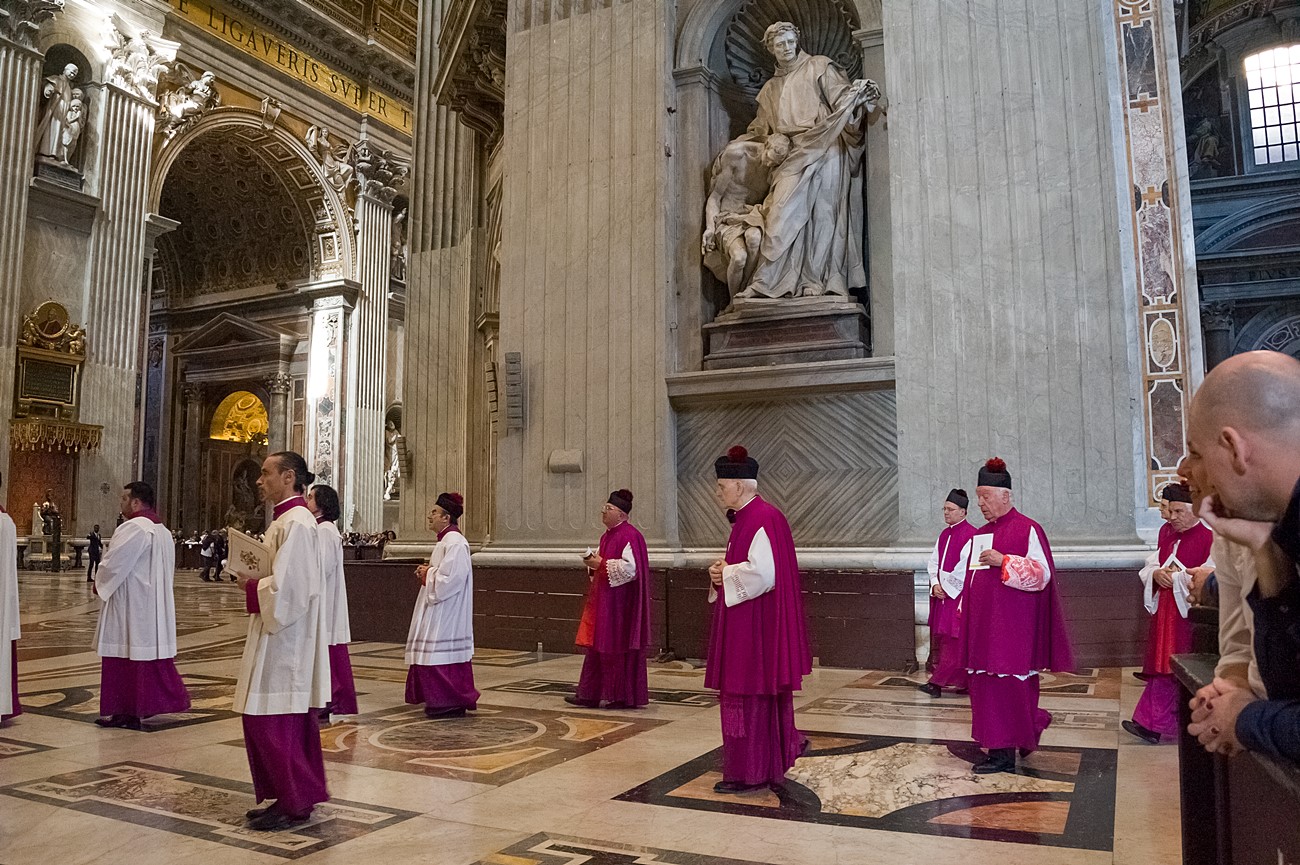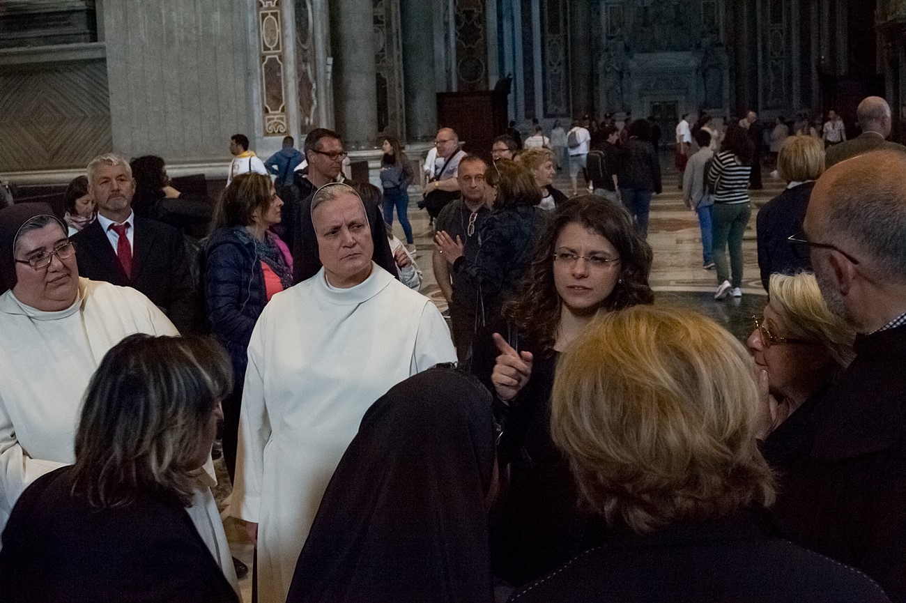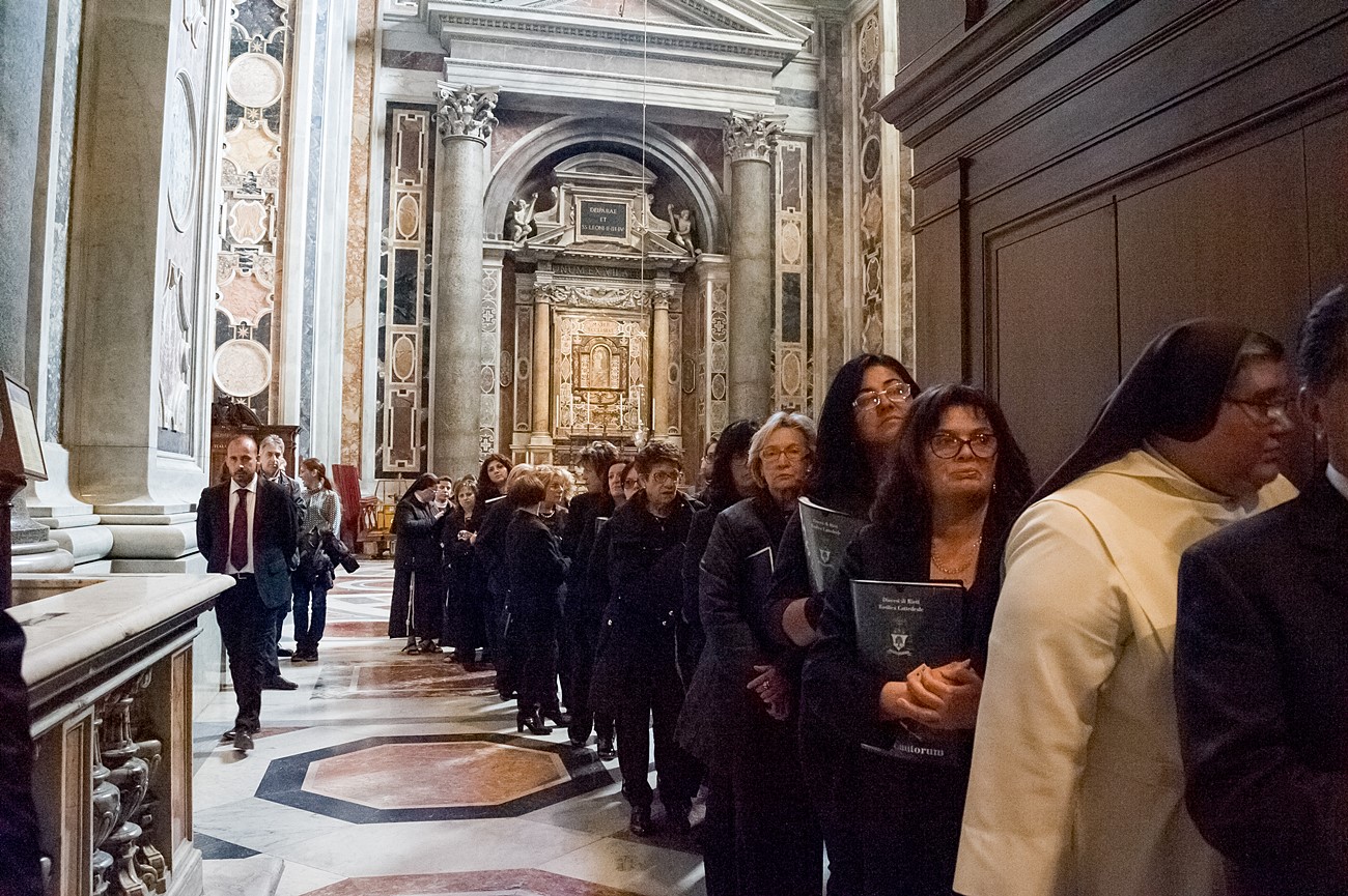 Prima di impartire la benedizione al termine della veglia, mons Pompili ha voluto espressamente ringraziare la schola per il generoso servizio prestato nei giorni faticosi eppure appaganti della Settimana Santa e soprattutto per l’aiuto che il repertorio scelto e l’atteggiamento dei coristi hanno recato alla preghiera di tutti. Per don Domenico, poco amante degli intermezzi extraliturgici all’interno delle celebrazioni, si è trattato di un gesto irrituale, che peraltro non è stato l’unico. Il grazie del vescovo non si è infatti fermato alle parole, ma si è tramutato in dono concreto: il 30 aprile, III domenica di Pasqua, grazie al suo interessamento i cantori sono stati gratificati anche con l’onore di poter animare una messa all’altare della Cattedra in San Pietro. A presiedere l’arciprete della Basilica Vaticana, il cardinale Angelo Comastri, che prima di congedare l’assemblea ha lodato il contributo del coro alla celebrazione e ha augurato alla diocesi reatina di potersi al più presto risollevare dopo il trauma del sisma che l’ha così duramente colpita. Molto soddisfatti il maestro Temistocle Capone, direttore della cappella musicale del Vicariato di San Pietro e responsabile dell’accoglienza dei cori ospiti in basilica, che ha già rinnovato l’invito per un’altra occasione, e il direttore dell’Ufficio liturgico, padre Ezio Casella, che ha accompagnato la schola nella trasferta romana e ha concelebrato insieme a un altro sacerdote reatino, don Zdenek Kopriva, a Roma con l’Azione Cattolica diocesana per i 150 anni dell’associazione. Don Roberto D’Ammando, anch’egli a Roma per lo stesso motivo, ha ripreso il suo posto fra i tenori, come sempre fa ogni volta che il nuovo incarico di vicario parrocchiale di San Giovanni Battista a Campoloniano glielo permette.