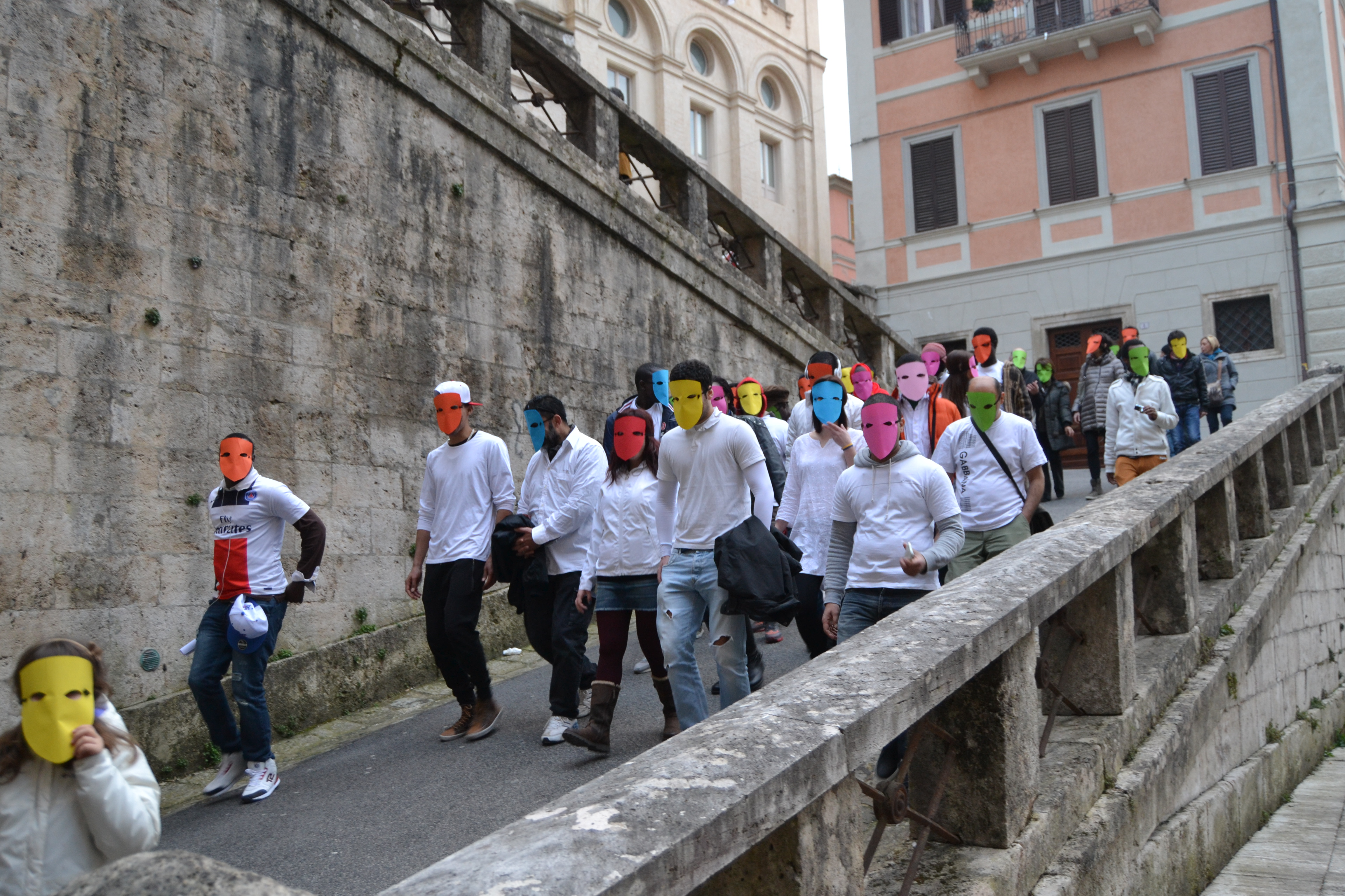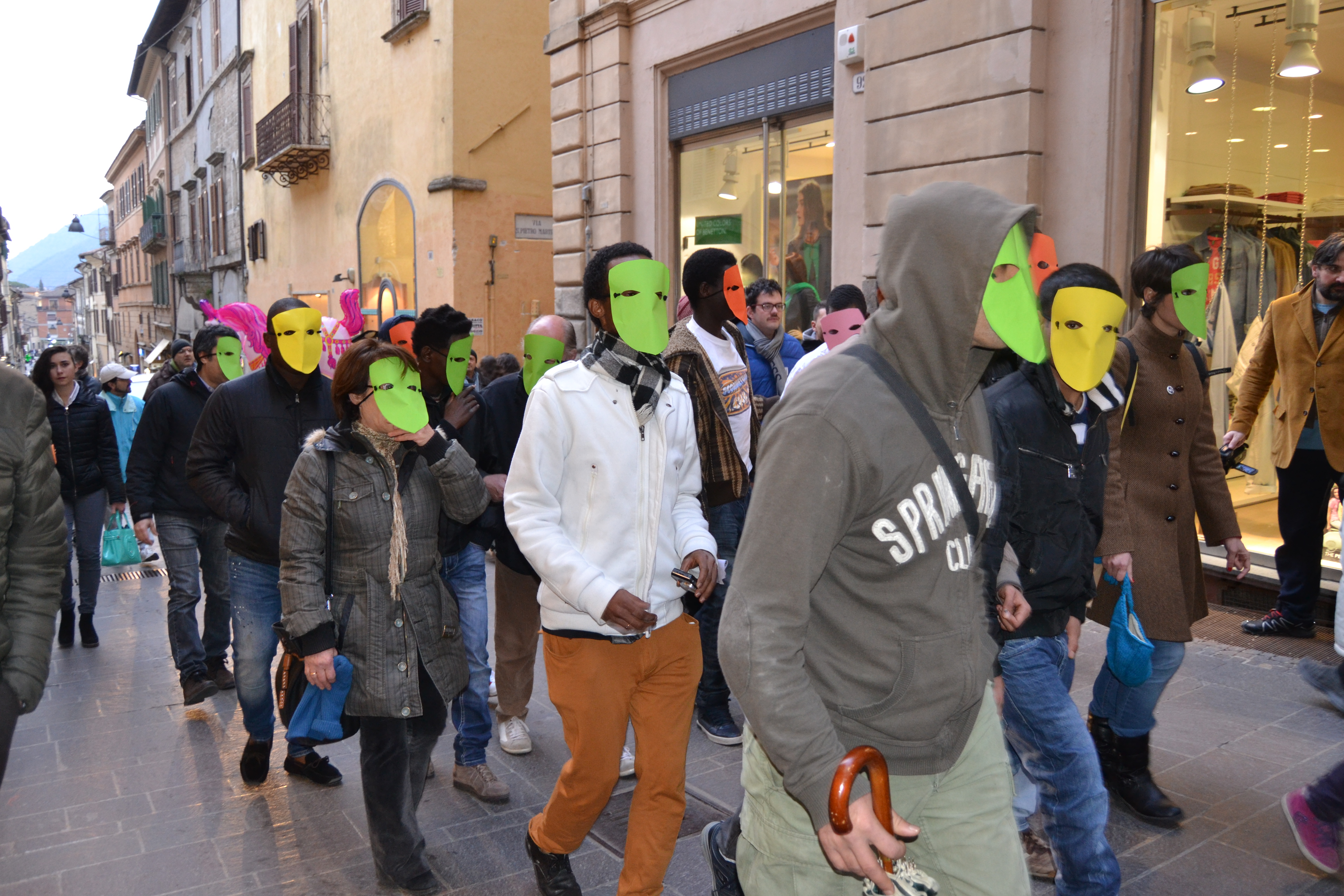 In occasione della XI settimana contro il razzismo, la Caritas Diocesana e l’Arci di Rieti hanno organizzato un flash mob di apertura agli eventi di sensibilizzazione che caratterizzeranno tutta la prossima settimana. L’iniziativa ha visto una breve marcia dei rifugiati e richiedenti asilo del progetto Sprar attraversare la città partendo da Piazza Cavour per risalire via Roma, attraversare Piazza Vittorio Emanuele II ed arrivare a destinazione a Piazza Mazzini. Lì, in cerchio, ognuno ha gridato il proprio nome, il proprio paese d’origine e la propria appartenenza a questo mondo. Un modo per sottolineare come, malgrado le nostre differenze etniche e culturali, siamo tutti figli di questa Terra.