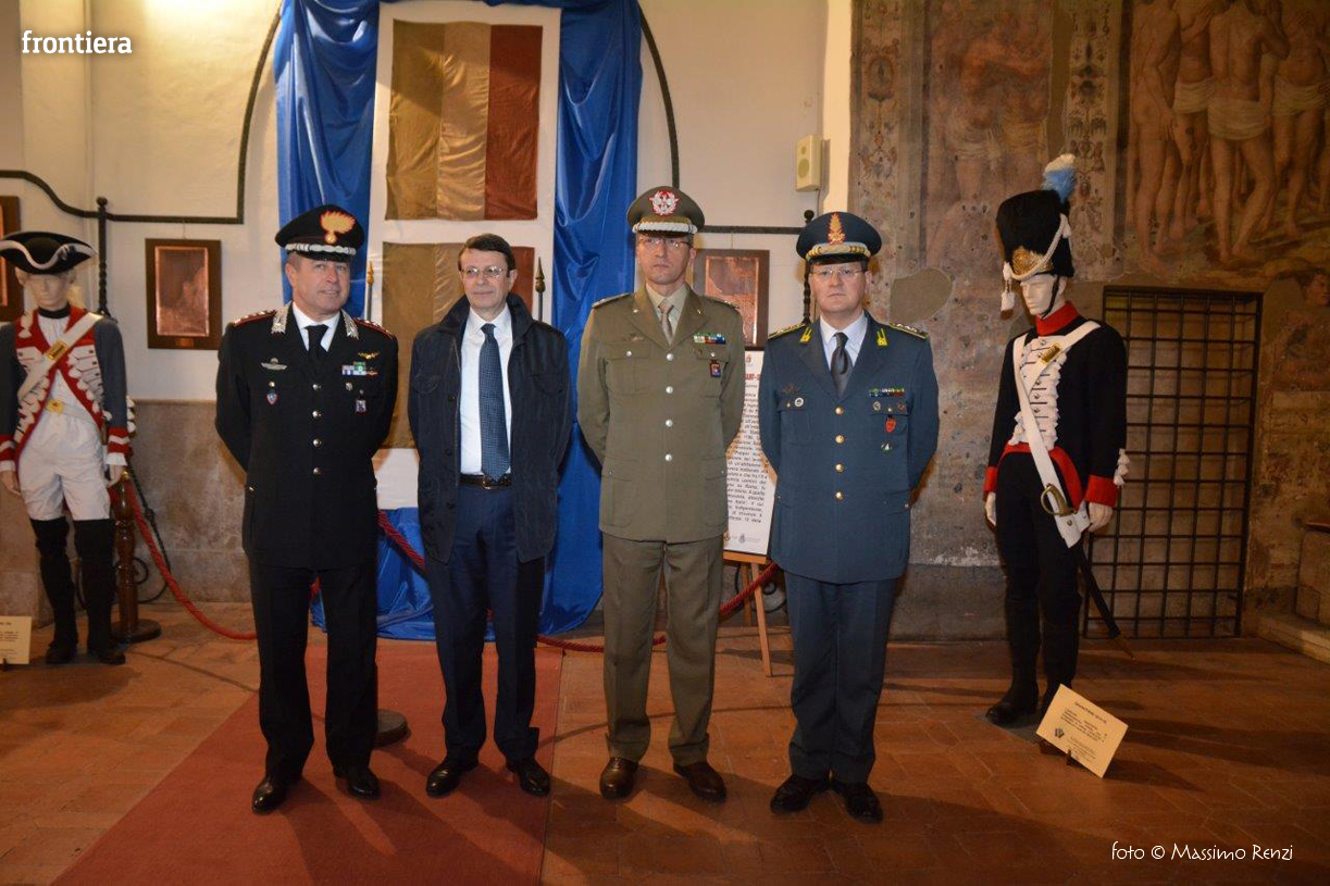 La cerimonia è stata preceduta dalla deposizione di una corona al monumento ai Caduti all’interno della Caserma “Attilio Verdirosi”, che ospita ancora per qualche giorno, esattamente sino al 31 marzo p.v., la mostra “Il più antico Tricolore Italiano – Il Ritorno. Nel Centenario della Prima Guerra Mondiale”.