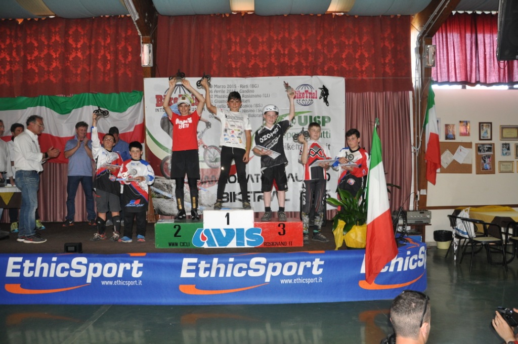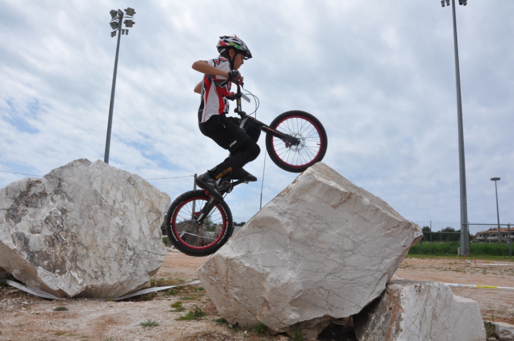 Queste le tre nazioni e i relativi tre riders che hanno composto il podio della categoria benjamin alla prima prova di Coppa Europa 2015. Sabato scorso in quel di Rosignano Solvay si è potuto assistere alle numerose evoluzioni dei riders provenienti da tutta Europa all’interno del campo scuola di bike trial gestito dall’associazione Cicli Avis Rosignano presieduta da Massimo Iacoponi. Il percorso di gara era composto da cinque zone controllate salendo di livello in termini di difficoltà dalla numero uno alla cinque. Il primo era formato da bobine di legno a bancali, il secondo da enormi pietre di marmo Carrara, il terzo da assi di equilibrio, il quarto da enormi gomme e l’ultimo da grossi tronchi. Quattro i giri di gara e tre ore e mezzo il tempo totale a disposizione. Il reatino Crescenzi partiva subito fortissimo siglando uno zero dopo l’altro e concludeva il primo giro con una sola penalità, commessa nella difficilissima zona cinque dei tronchi. Precedeva così tutti gli altri partecipanti, l’inglese Shepherd ne aveva 5 alla pari del catalano Rovira, il ceco Veprek invece ne aveva sei e ben più distanziati tutti gli altri. Ancora in testa Diego Crescenzi anche al termine del secondo giro con quattro penalità totali e ci rimaneva fino alla fine del terzo giro quando per via di una scivolata della ruota anteriore su di un tronco, prendeva cinque penalità. Rovira andava a vincdere con solo sette penalià precedendo il reatino che ne aveva dodici, Shepherd con quattordici e Veprek con sedici. Ben più penalizzati tutti gli altri.