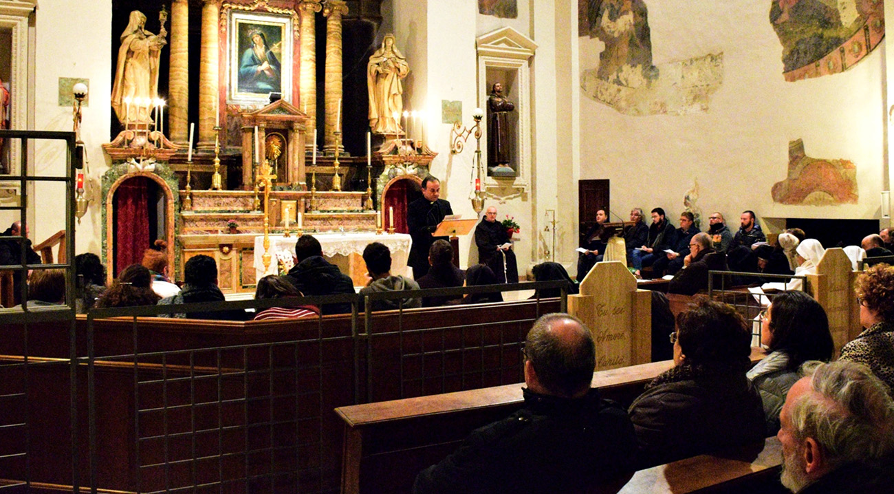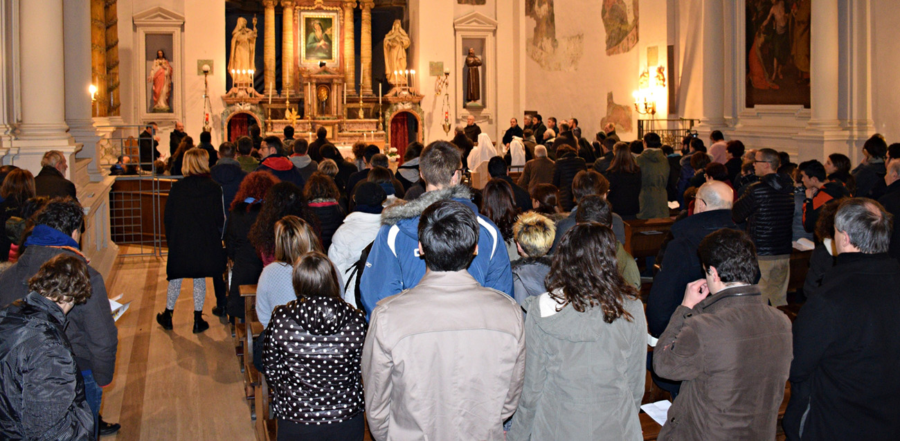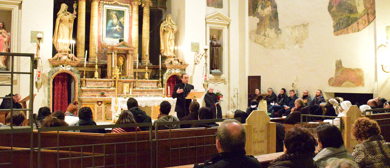 La chiesa di Santa Chiara torna ad accogliere i giovani per la “lectio divina” d’Avvento di monsignor Pompili. Dopo la pausa della scorsa settimana (Clicca qui per il video della prima Lectio), data la coincidenza con la festività della patrona santa Barbara, torna l’appuntamento con il breve ciclo di riflessione sulla parola di Dio proposta dal vescovo alla fascia dei 18-35enni in questa fase di avvio del Giubileo della misericordia.