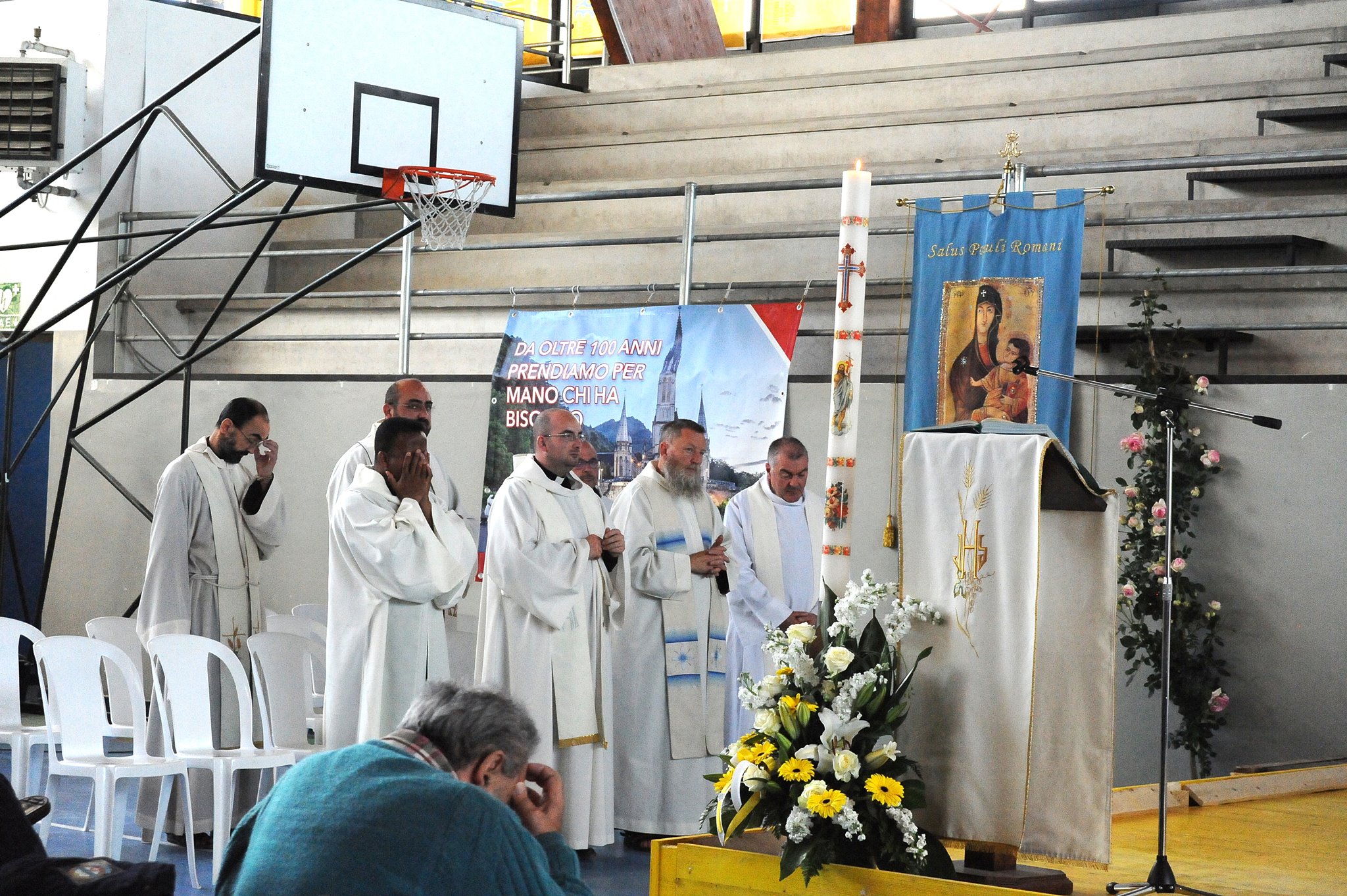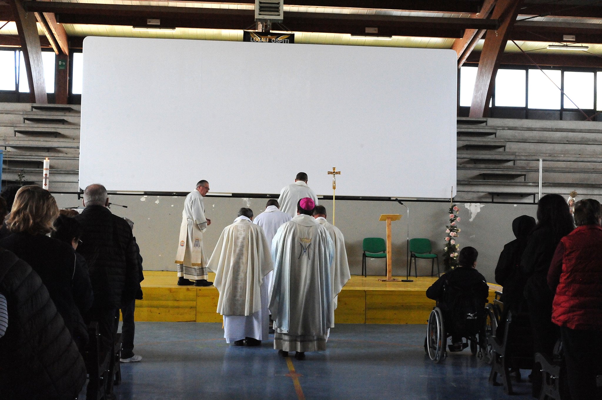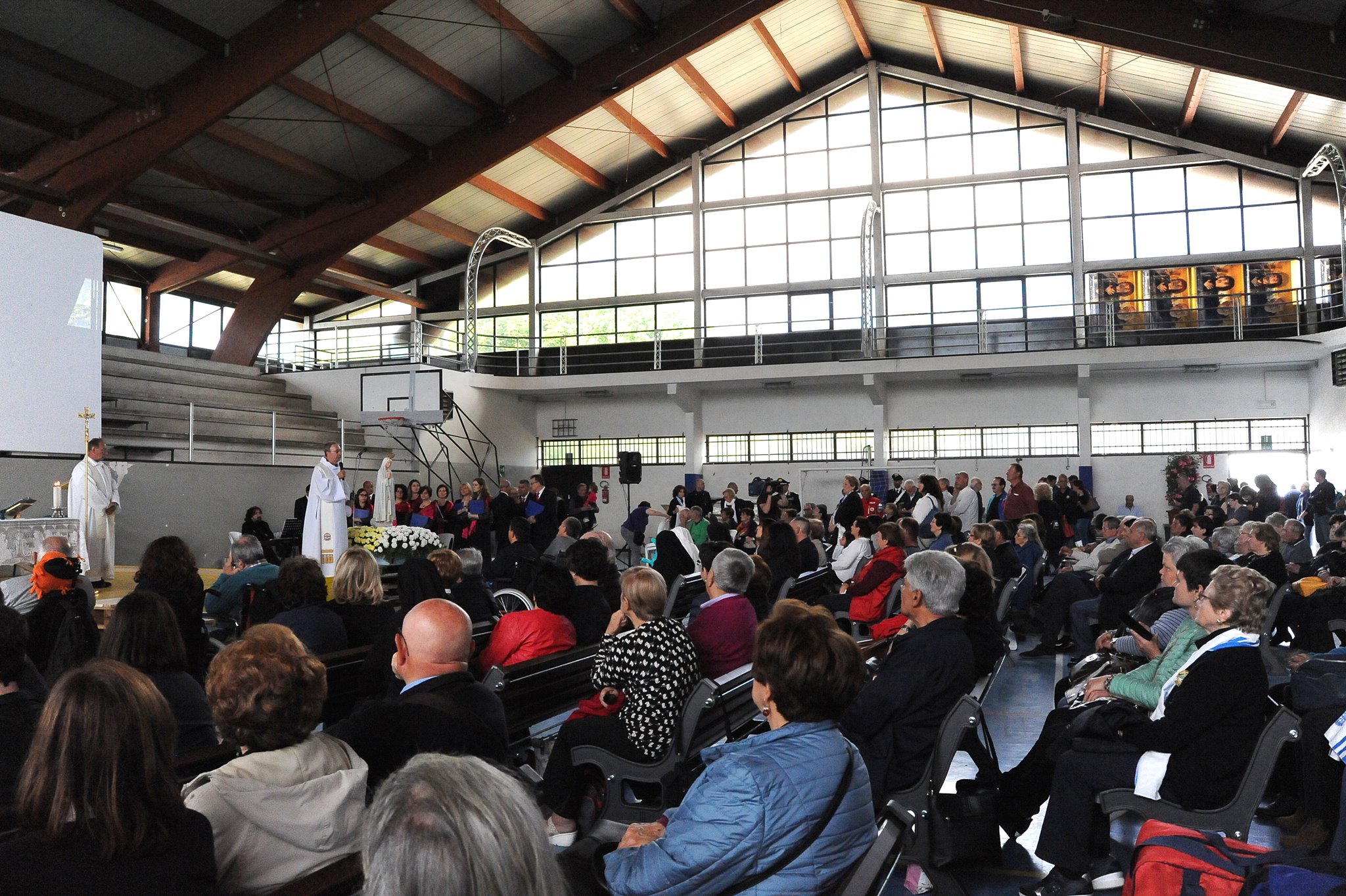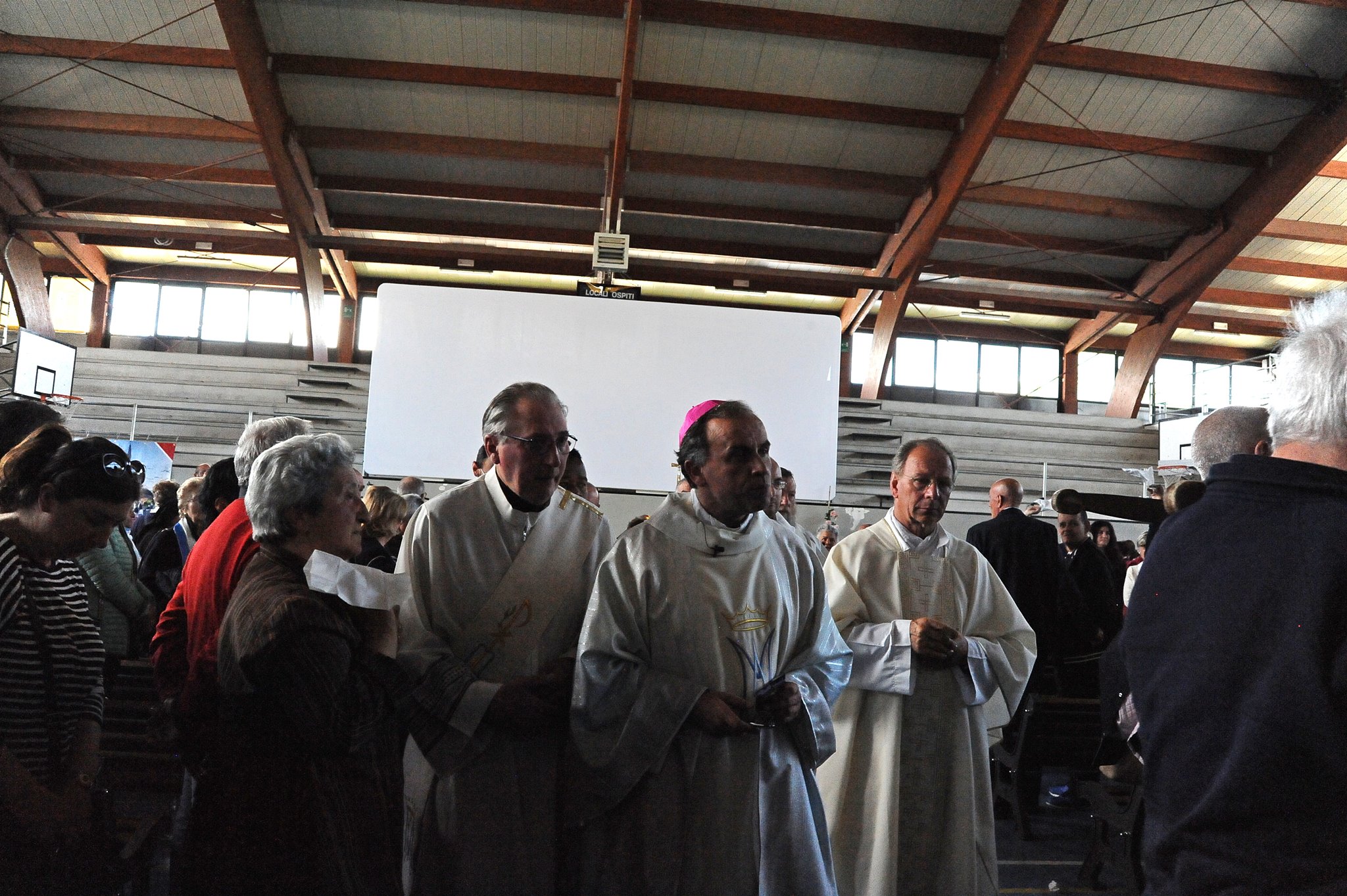 In occasione dell’arrivo ad Amatrice della statua della Madonna di Fatima, il vescovo Domenico ha celebrato la messa nel palazzetto dello sport con i malati e i volontari dell’Unitalsi di Roma e del Lazio