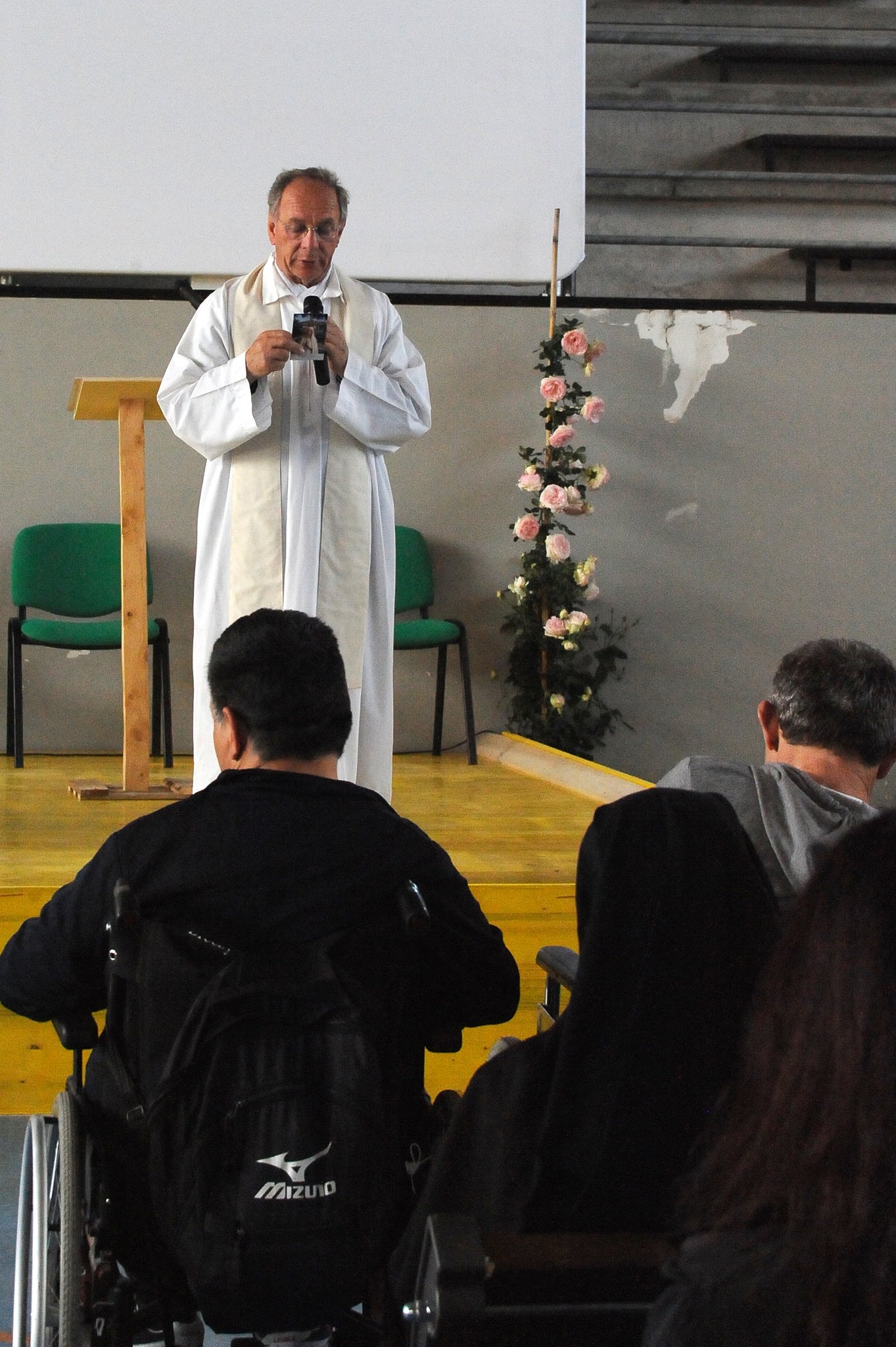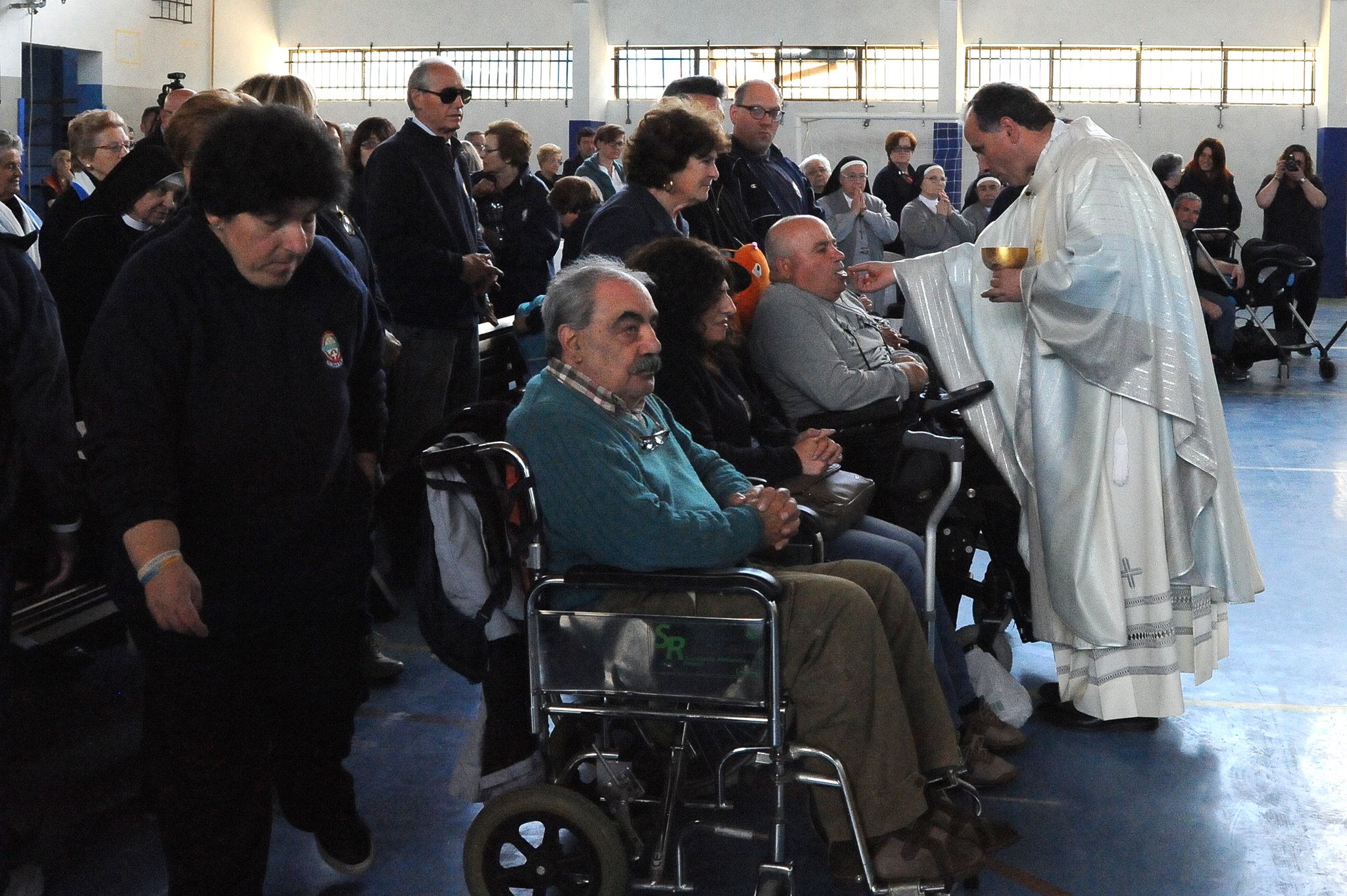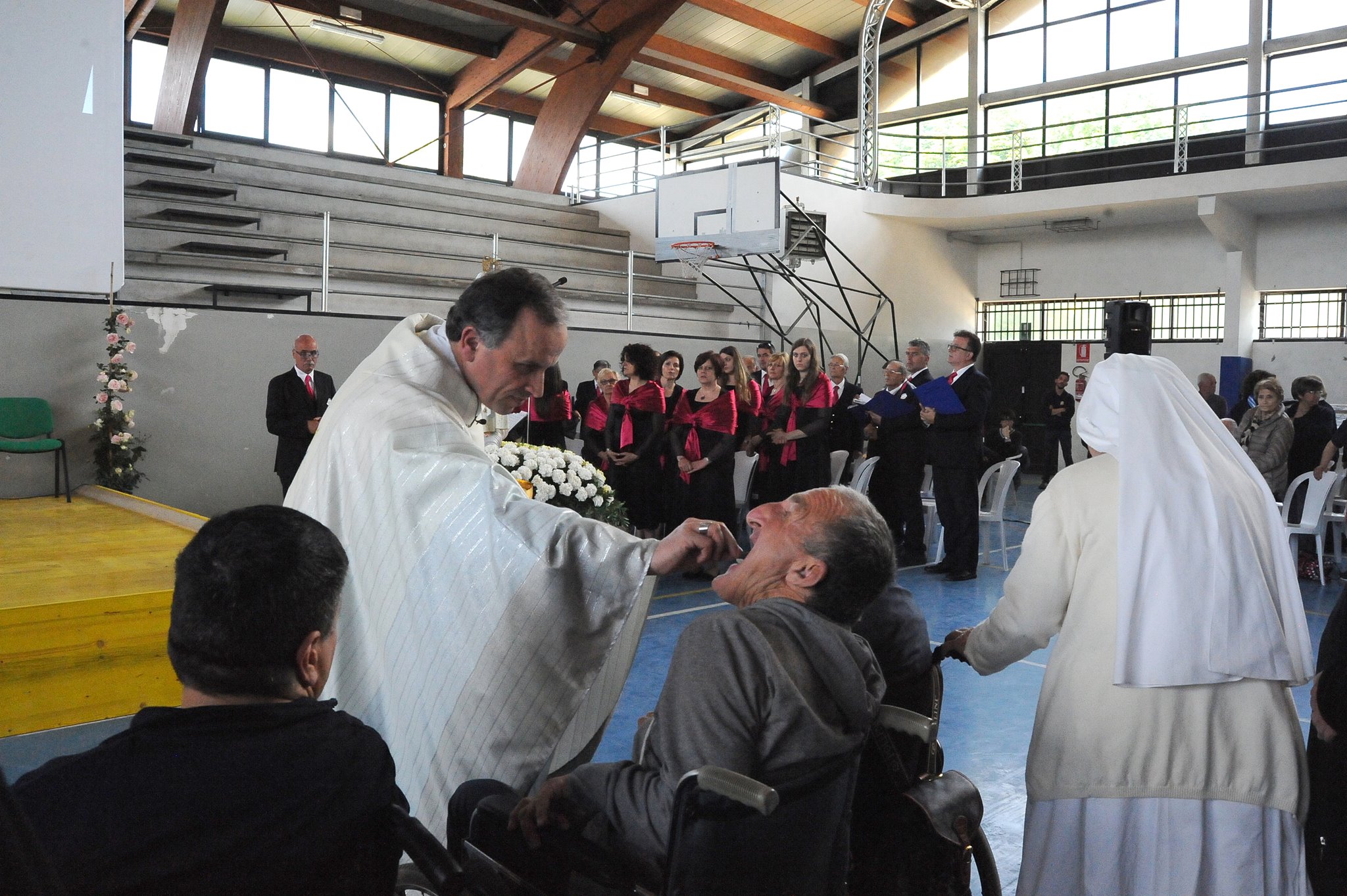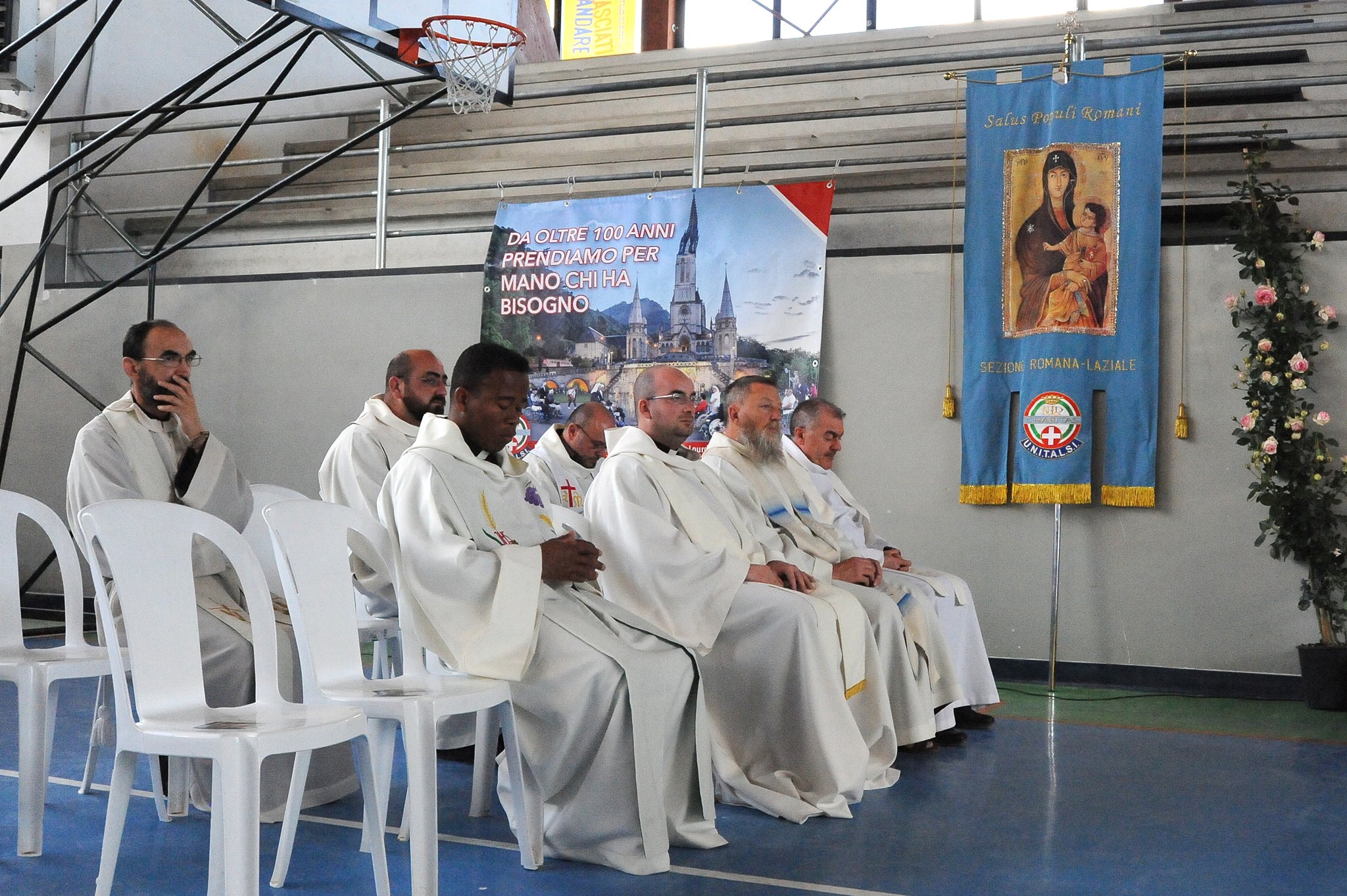 In occasione dell’arrivo ad Amatrice della statua della Madonna di Fatima, il vescovo Domenico ha celebrato la messa nel palazzetto dello sport con i malati e i volontari dell’Unitalsi di Roma e del Lazio