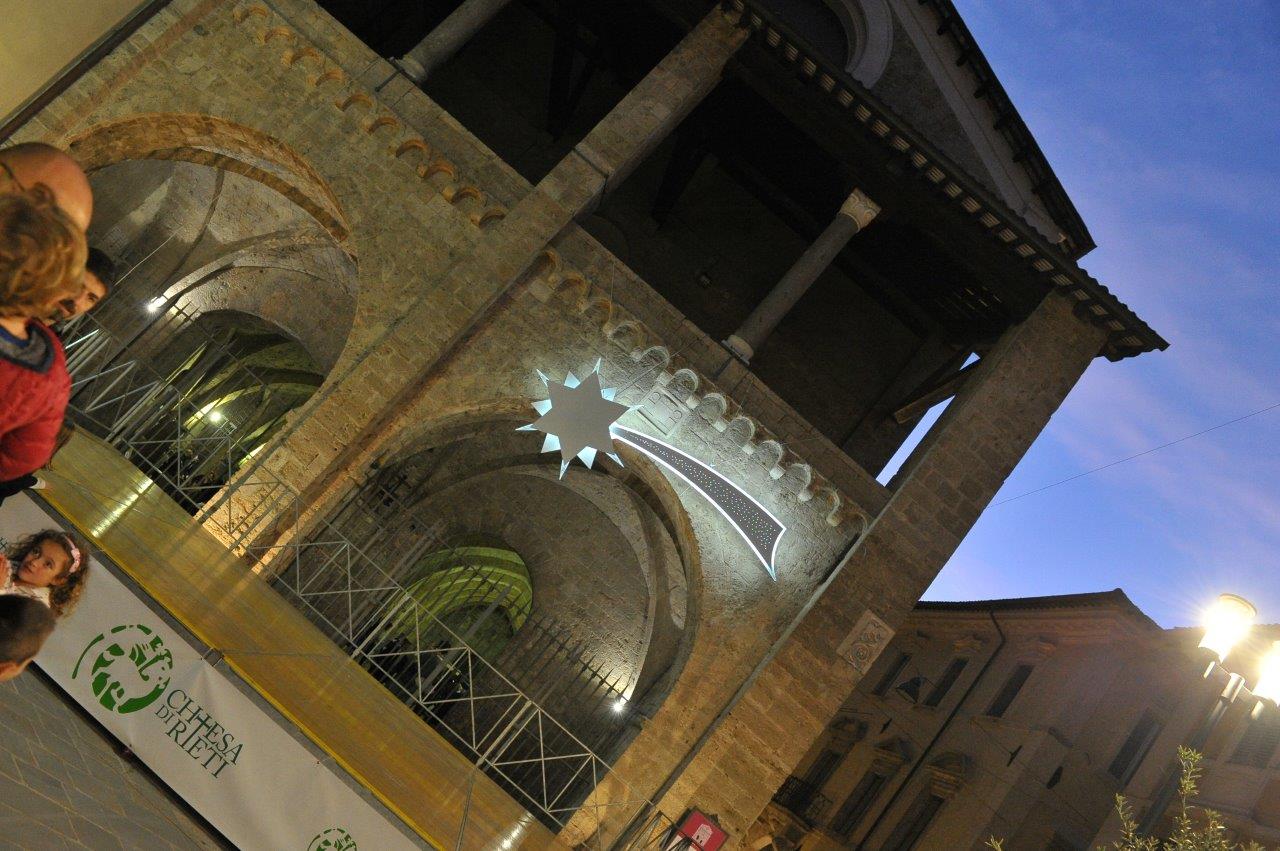 Si sono conclusi nella serata di domenica 8 ottobre gli eventi del progetto “I Borghi di Francesco”, con l’accensione – sulla facciata del Palazzo Papale di Rieti – di una grande stella cometa. Il manufatto – realizzato da una ditta reatina su indicazione della Confraternita di Misericordia di Rieti – annuncia l’arrivo delle attività natalizie riunite sotto il nome de “La Valle del Primo Presepe”, che vede la diocesi di Rieti in sinergia con i comuni di Greccio e Rieti nella riscoperta dell’invenzione francescana del presepe. Un segno della fede cristiana che da Greccio si è diffuso in tutto il mondo.