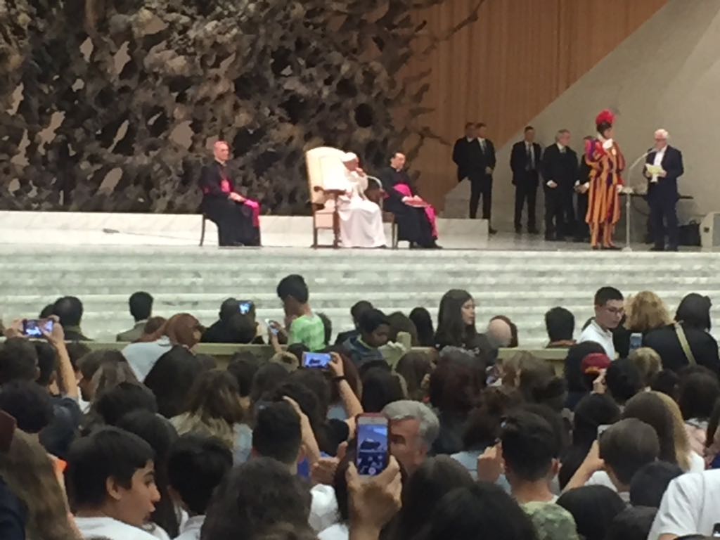 Tra i settemila partecipanti all’incontro con Papa Francesco nella mattina del 6 maggio, era presente anche una cinquantina di alunni dell’Istituto Magistrale di Rieti guidati dal dirigente scolastico Gerardina Volpe. L’iniziativa è stata organizzata nell’ambito del “Meeting Nazionale delle scuole per la pace, la fraternità e il dialogo”.