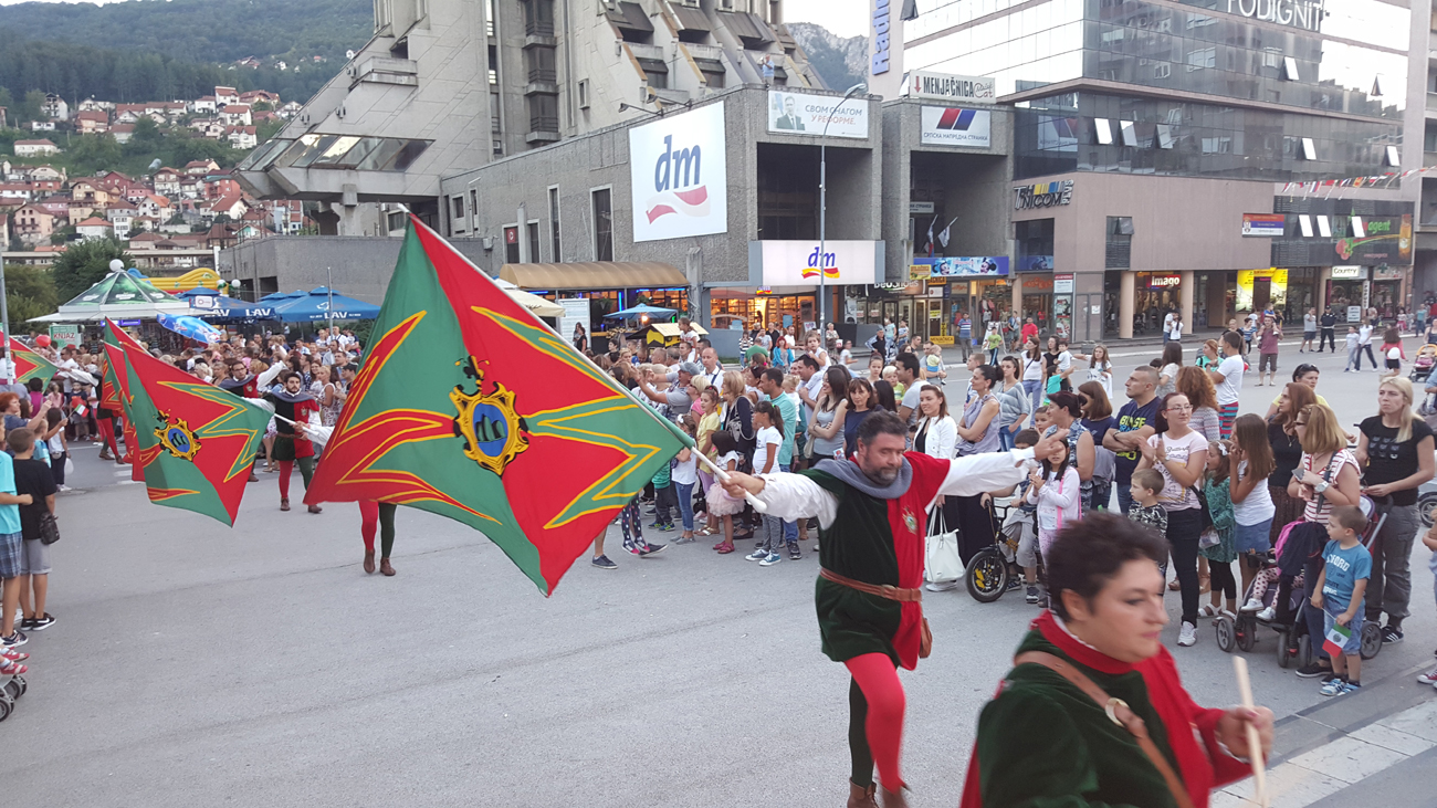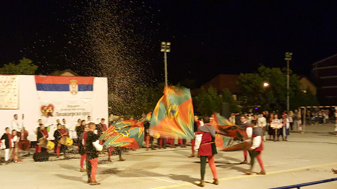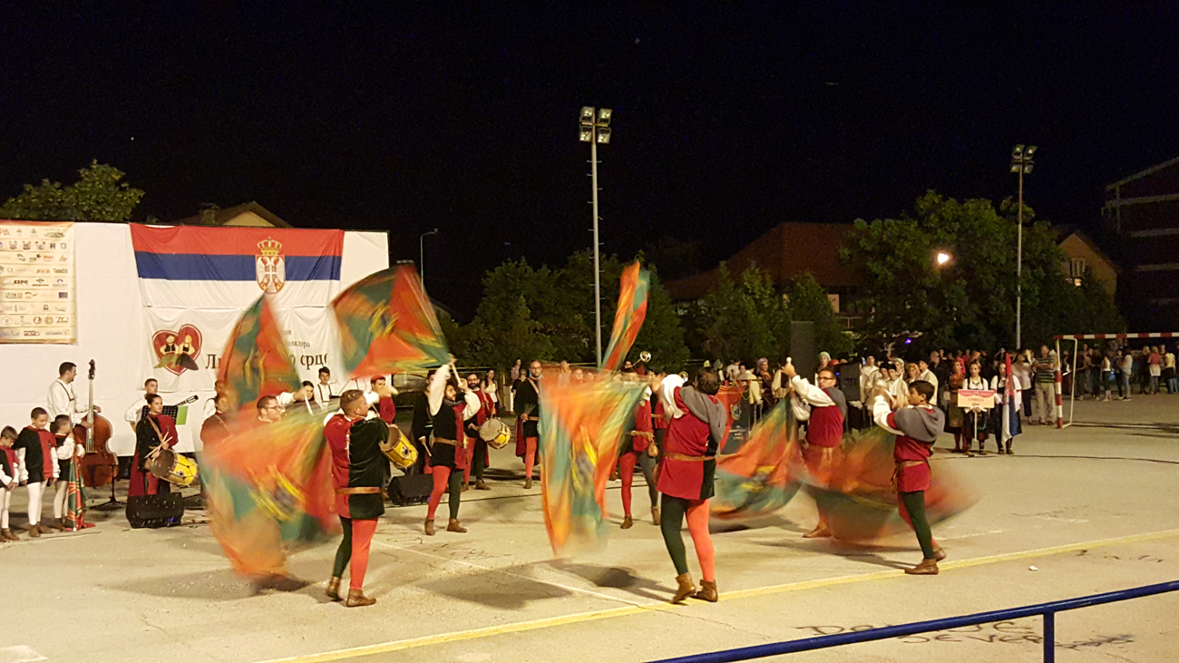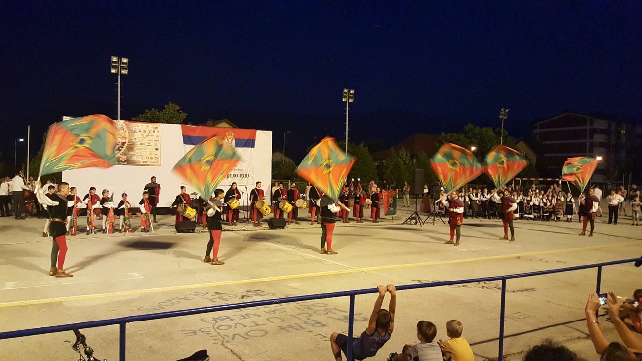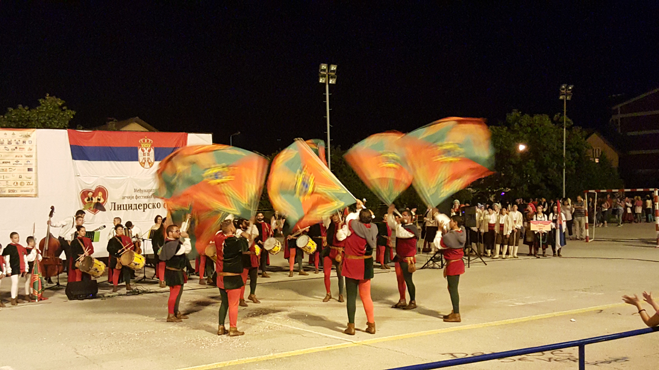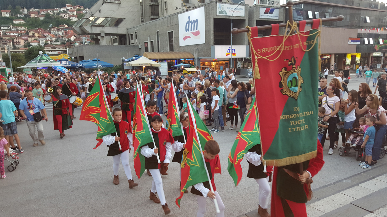 Gli sbandieratori e musici di Borgo Velino, hanno incantato con le loro evoluzioni i numerosissimi spettatori presenti già dall’apertura del Festival il giorno 15 agosto con la grande parata nelle vie centrali della Città di Uzice. Se gli “adulti del gruppo velinate” hanno ricevuto moltissimi applausi, per i giovanissimi (Edoardo, Cristian, Matteo, Micol, Valeria e Cristopher) vi sono state vere e proprie ovazioni nel vedere i piccoli volteggiare le bandiere. Poi gli spettacoli si sono svolti anche in un altra città serba Bajina Basta ed anche qui ( non erano mai stati presenti altri sbandieratori) si è ripetuto il gradimento per grandi e piccoli del gruppo reatino. Altra tappa: Visegrad (Bellissima cittadina della Bosnia and Erzegovina conosciuta per il suo famoso ponte sul fiume “Drina”.