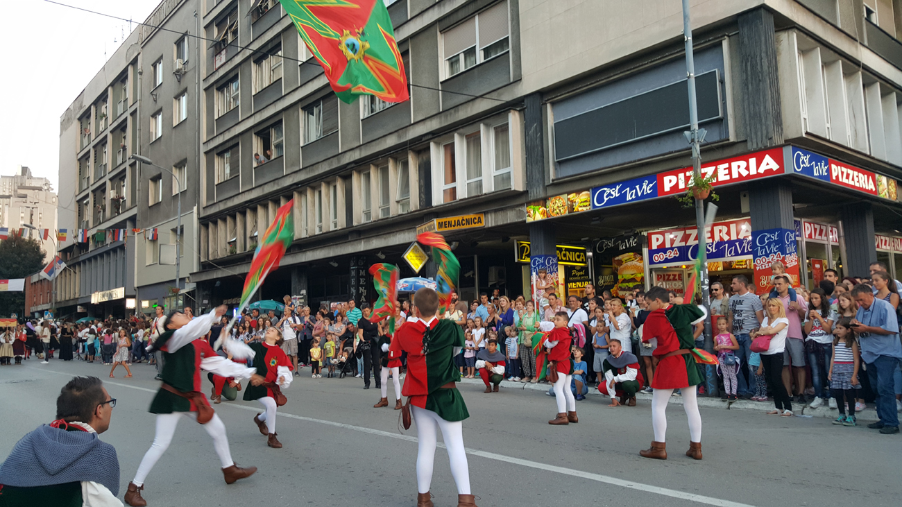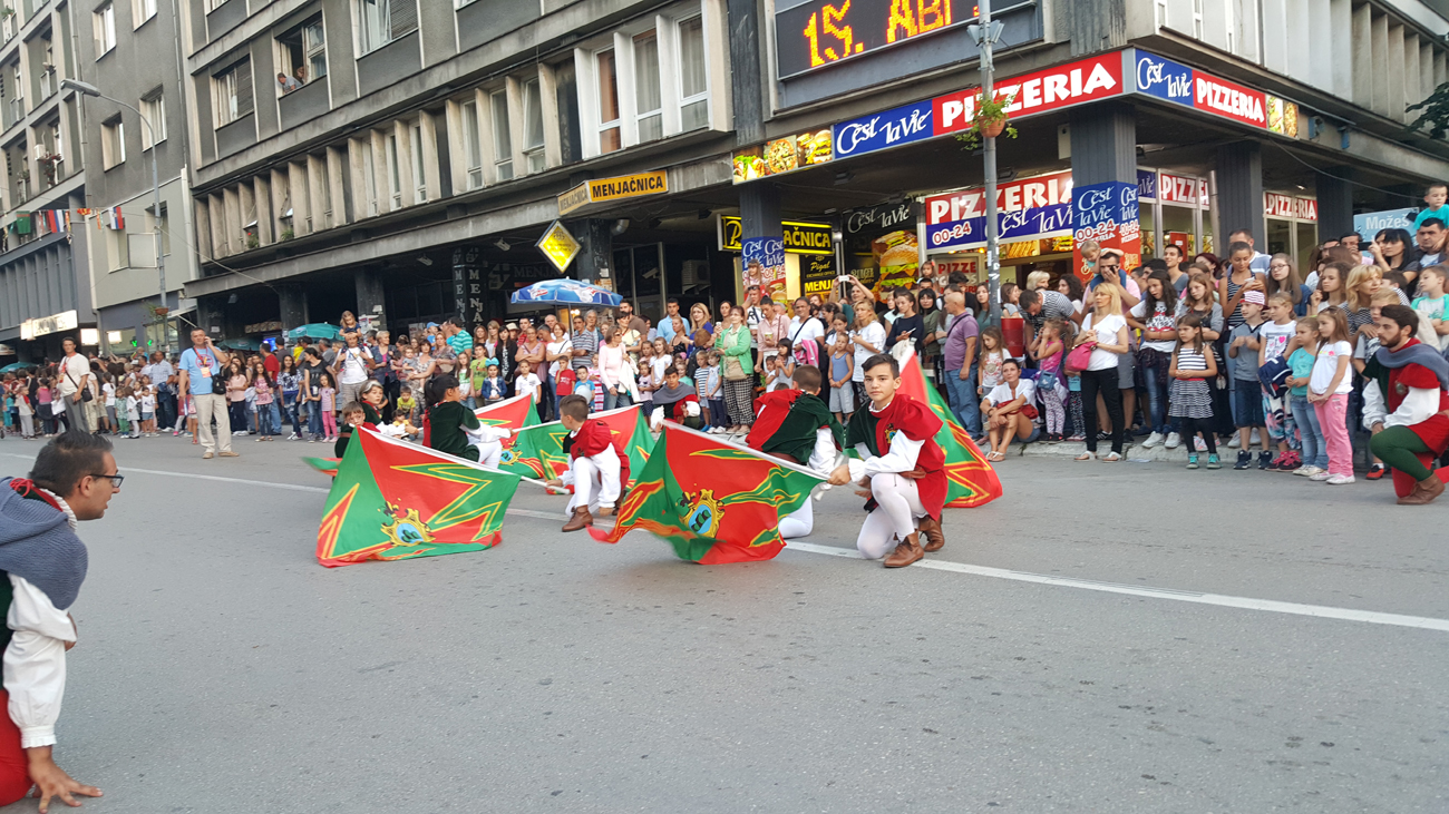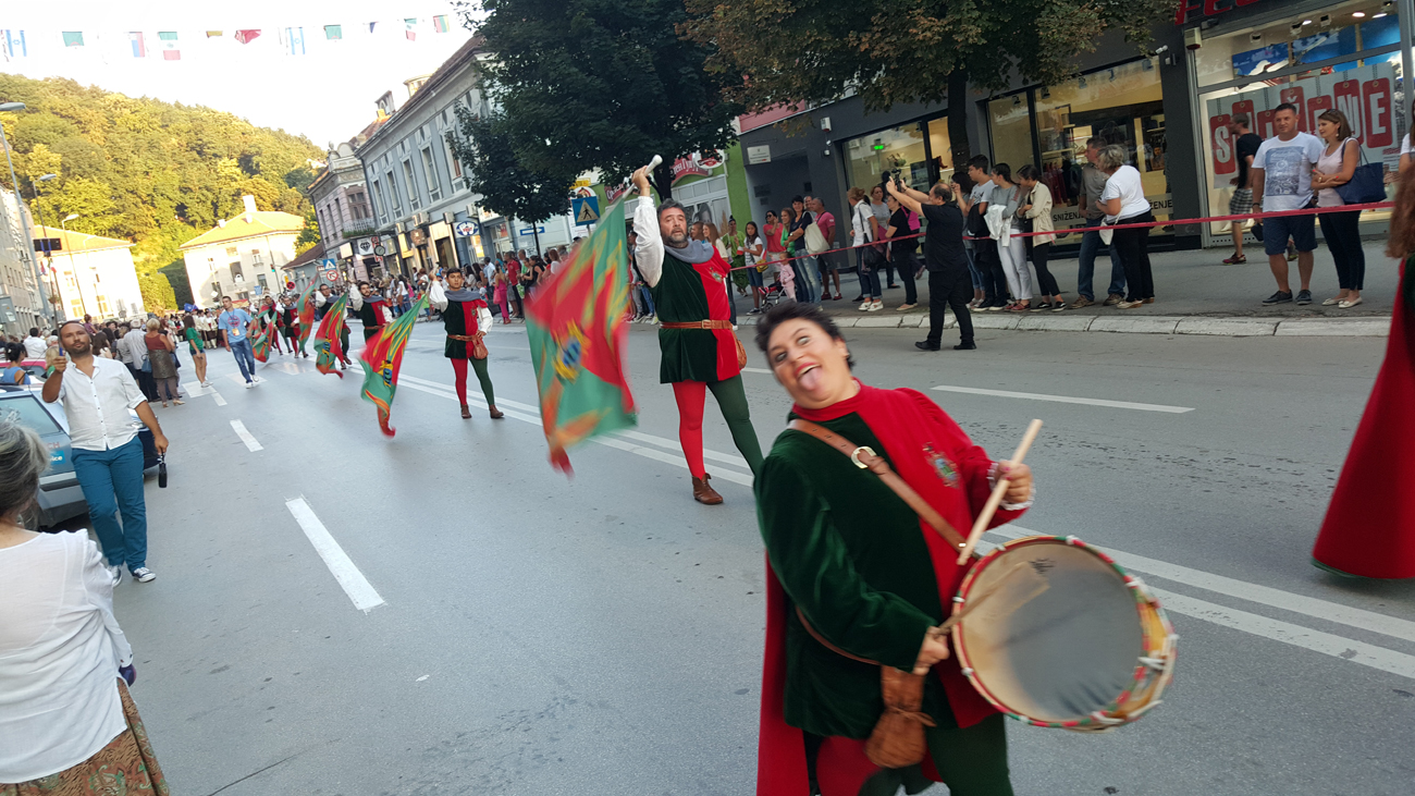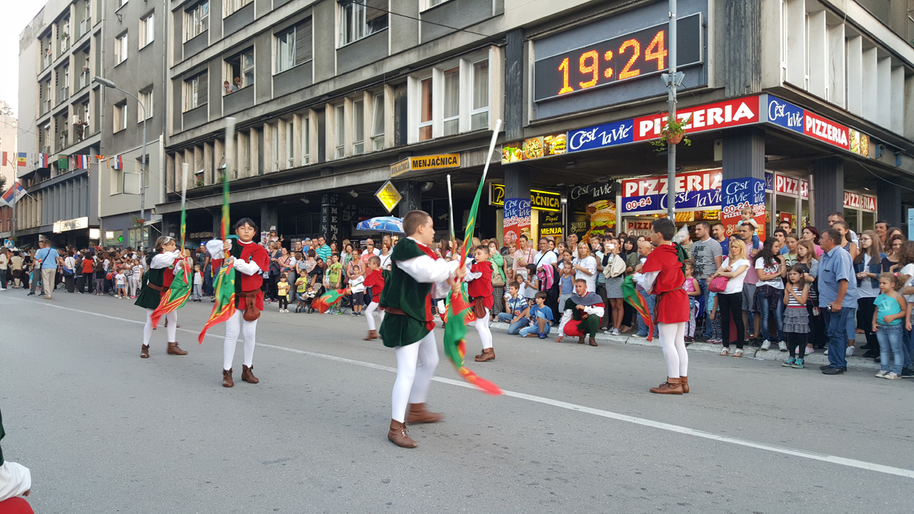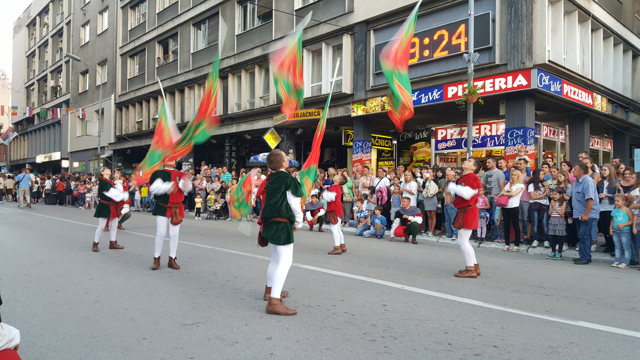 Gli sbandieratori e musici di Borgo Velino, hanno incantato con le loro evoluzioni i numerosissimi spettatori presenti già dall’apertura del Festival il giorno 15 agosto con la grande parata nelle vie centrali della Città di Uzice. Se gli “adulti del gruppo velinate” hanno ricevuto moltissimi applausi, per i giovanissimi (Edoardo, Cristian, Matteo, Micol, Valeria e Cristopher) vi sono state vere e proprie ovazioni nel vedere i piccoli volteggiare le bandiere. Poi gli spettacoli si sono svolti anche in un altra città serba Bajina Basta ed anche qui ( non erano mai stati presenti altri sbandieratori) si è ripetuto il gradimento per grandi e piccoli del gruppo reatino. Altra tappa: Visegrad (Bellissima cittadina della Bosnia and Erzegovina conosciuta per il suo famoso ponte sul fiume “Drina”.