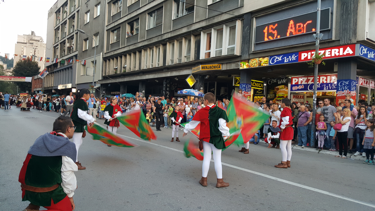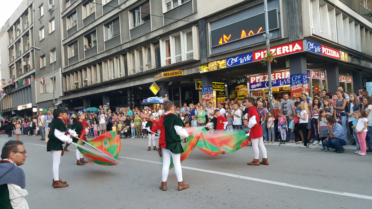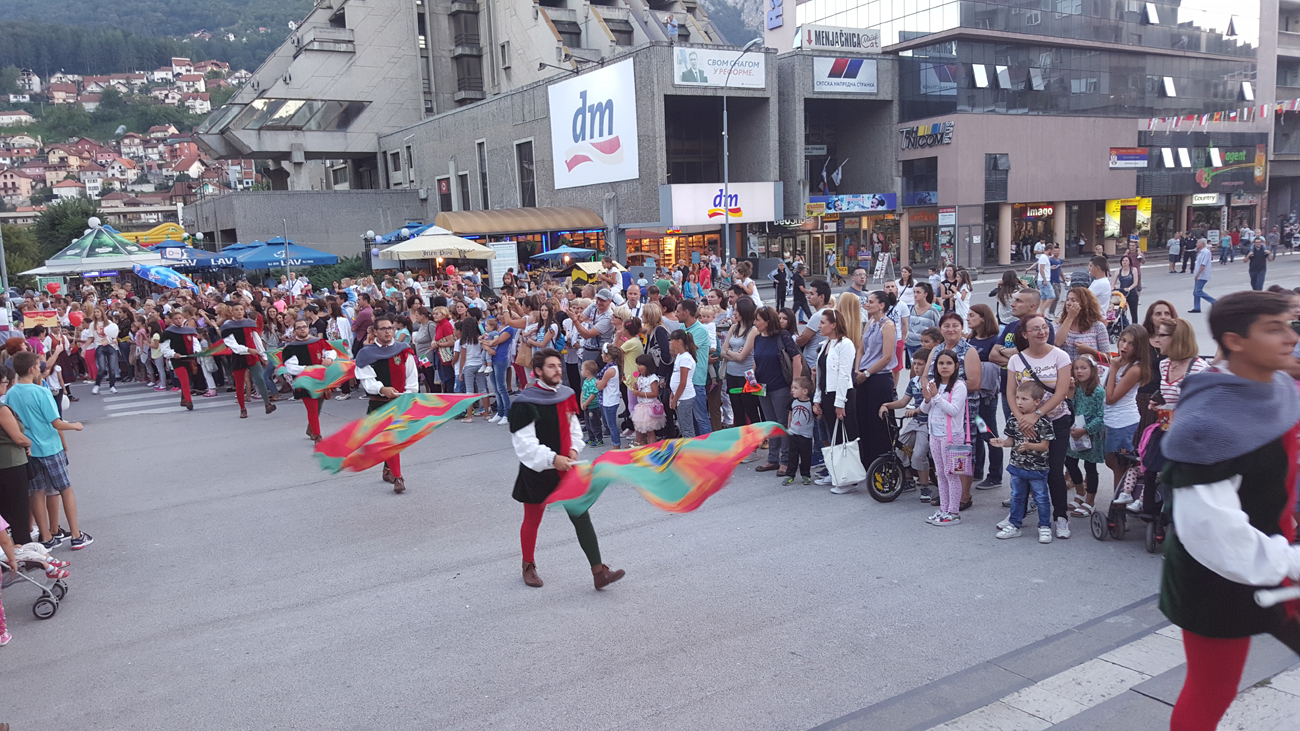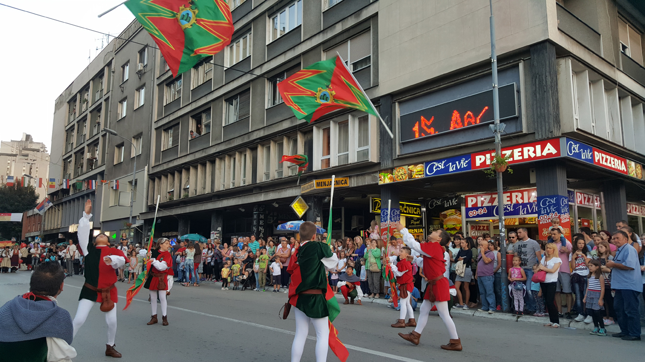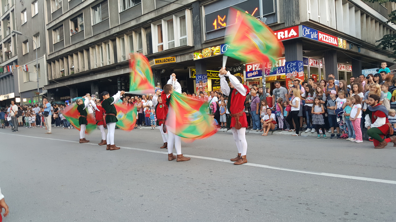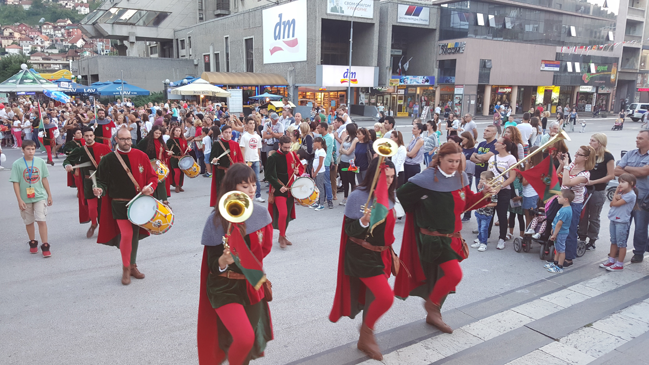Gli sbandieratori e musici di Borgo Velino, hanno incantato con le loro evoluzioni i numerosissimi spettatori presenti già dall’apertura del Festival il giorno 15 agosto con la grande parata nelle vie centrali della Città di Uzice. Se gli “adulti del gruppo velinate” hanno ricevuto moltissimi applausi, per i giovanissimi (Edoardo, Cristian, Matteo, Micol, Valeria e Cristopher) vi sono state vere e proprie ovazioni nel vedere i piccoli volteggiare le bandiere. Poi gli spettacoli si sono svolti anche in un altra città serba Bajina Basta ed anche qui ( non erano mai stati presenti altri sbandieratori) si è ripetuto il gradimento per grandi e piccoli del gruppo reatino. Altra tappa: Visegrad (Bellissima cittadina della Bosnia and Erzegovina conosciuta per il suo famoso ponte sul fiume “Drina”.