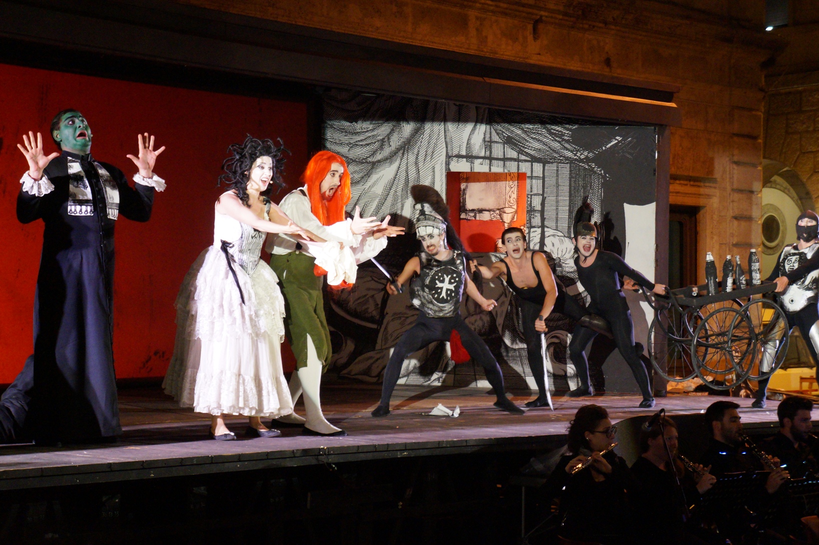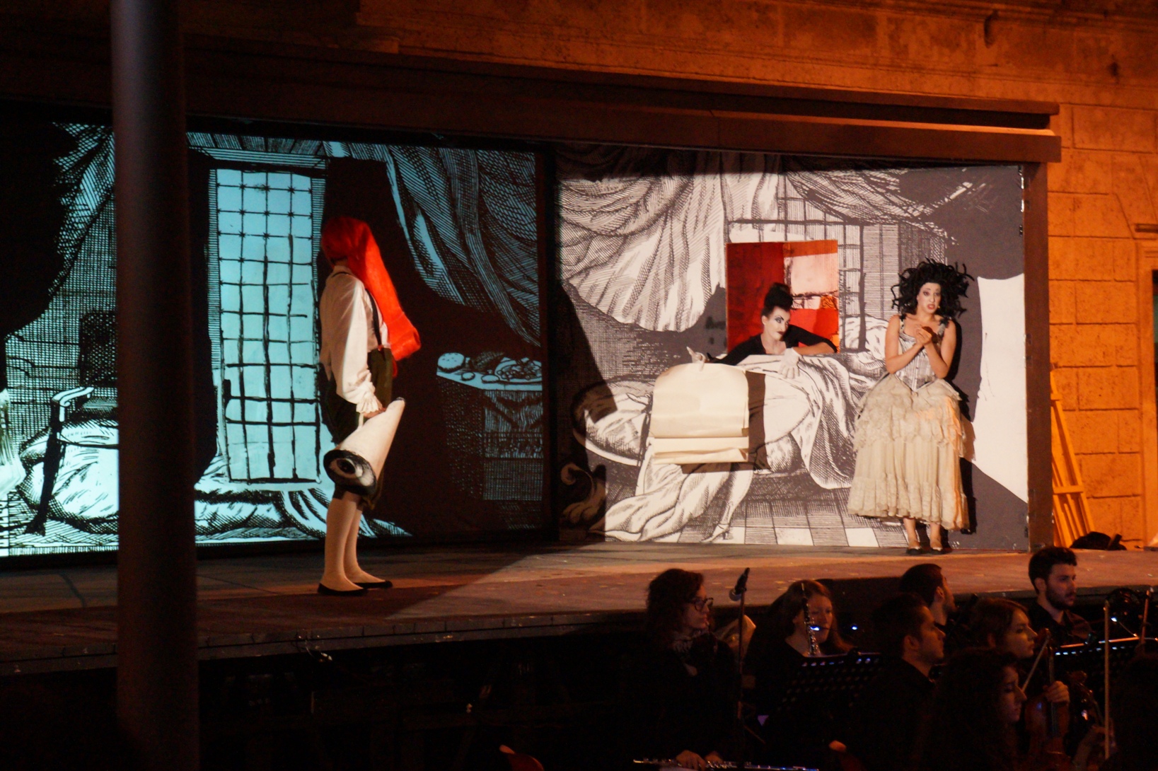 Tutto sommato l’idea di portare Rossini nelle piazze è riuscita e questo si deve alla Youth Orchestra del Teatro dell’Opera di Roma diretta da Carlo Donadio e Roberto De Maio; alle scenografie e ai costumi di Gianuligi Toccafondo; all’adattamento musicale di Tommaso Chieco e Marco Giustini; agli attori (Manuel Amati, Akaki Ioseliani, Takahiro Shimotsuka, Abraham García-González, Reut Ventorero) e alla regia di Fabio Cherstich.
