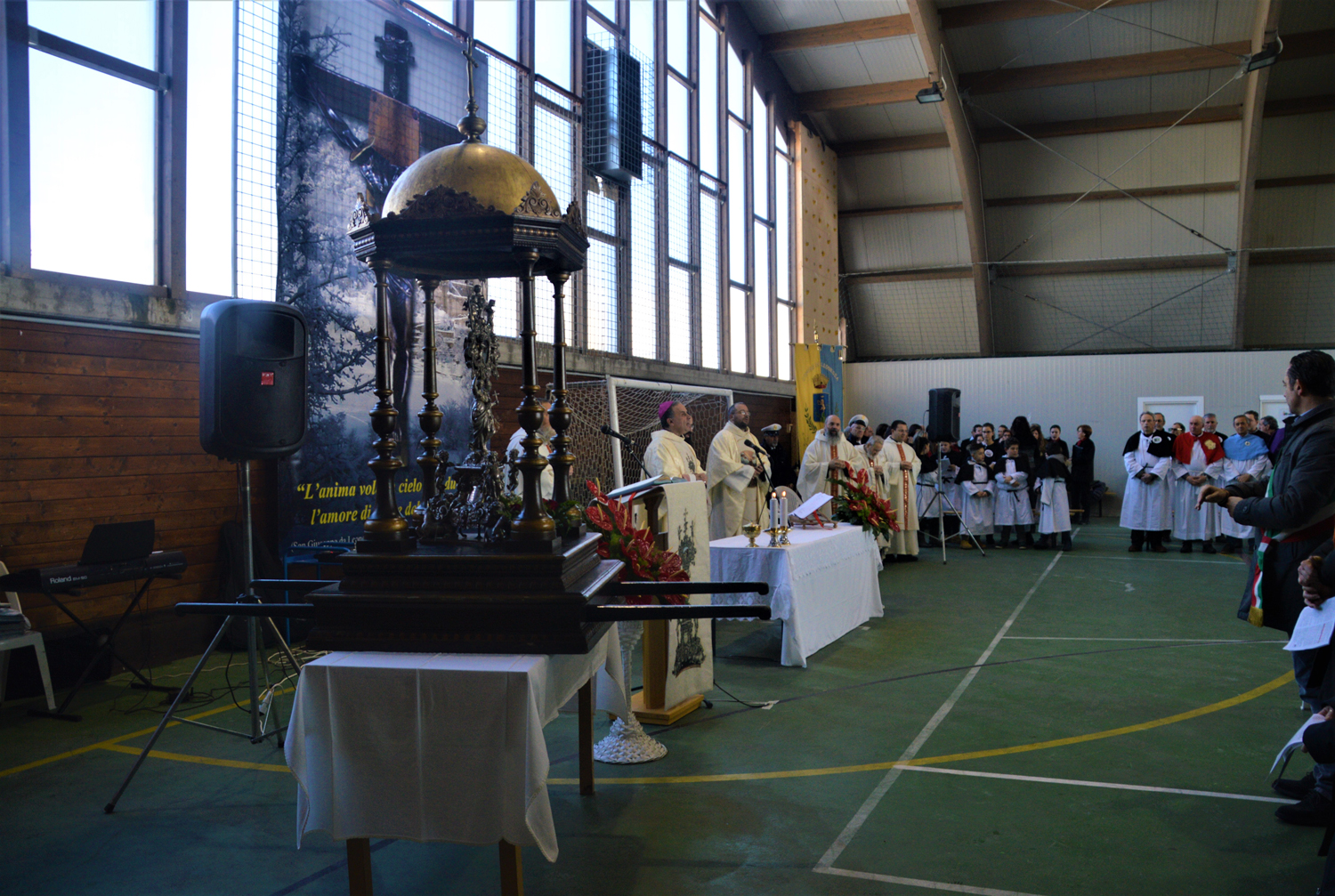 Nonostante l’inagibilità delle chiese maggiori a causa degli eventi sismici degli scorsi mesi, non è mancata a Leonessa la partecipazione ai festeggiamenti in onore del cappuccino san Giuseppe. Già la novena, infatti, ha visto tanti fedeli raccogliersi in preghiera durante le celebrazioni svolte al palazzetto dello sport situato all’ingresso del paese, lo stesso che all’inizio dell’anno ha accolto il Meeting dei giovani della diocesi. Ogni sera la liturgia è stata animata da una comunità nella quale san Giuseppe è stato a predicare, a partire il 26 gennaio con Montereale, per poi proseguire con Ville di Sotto, Ville di Sopra, Posta, Cittareale, Otricoli, Cascia, e Amatrice.