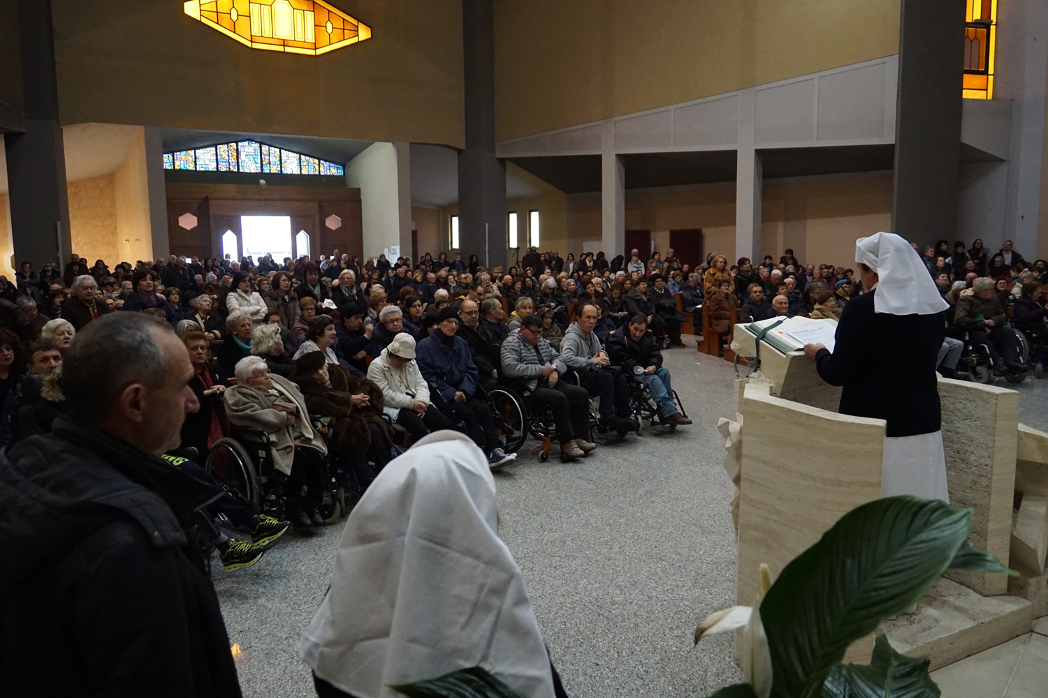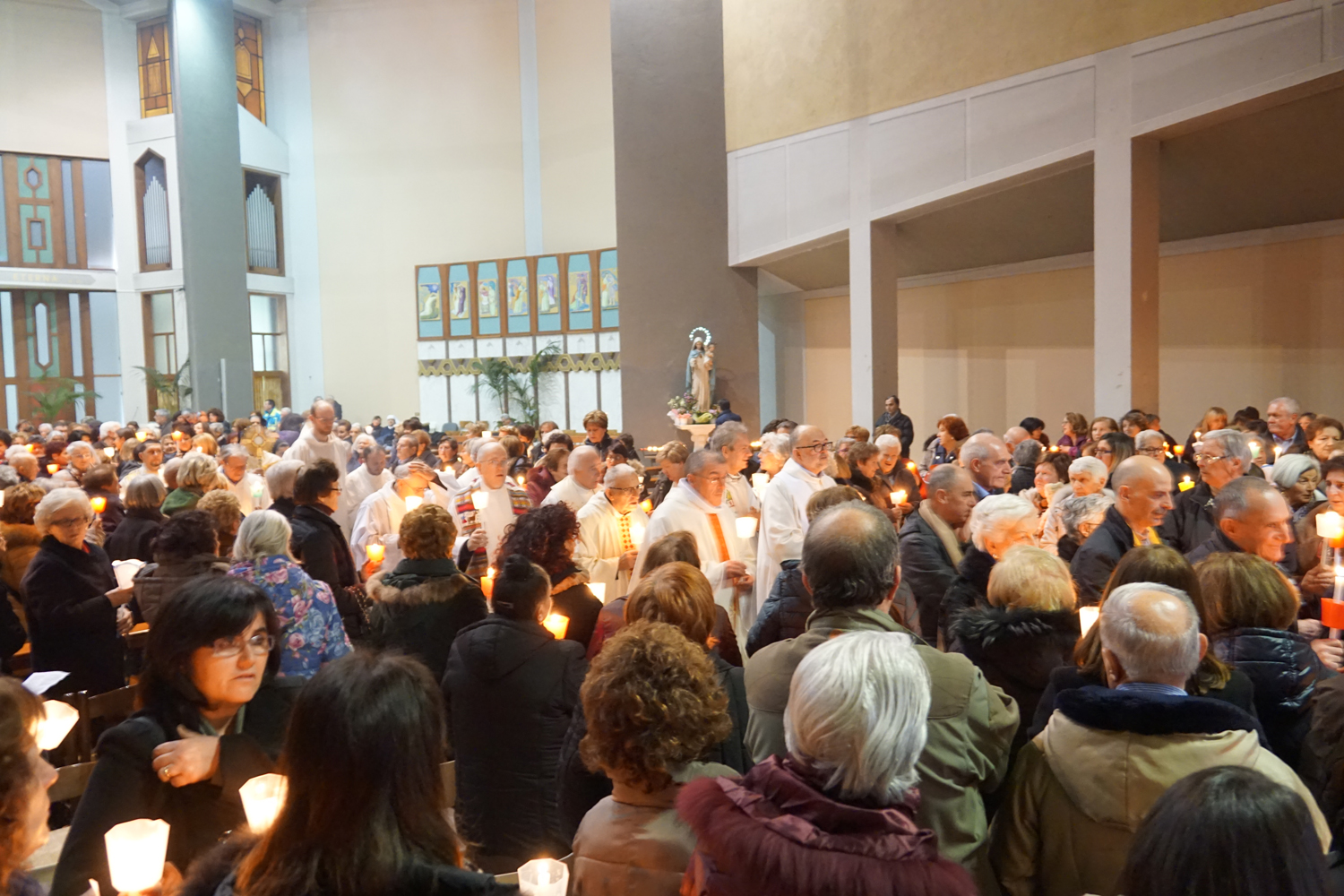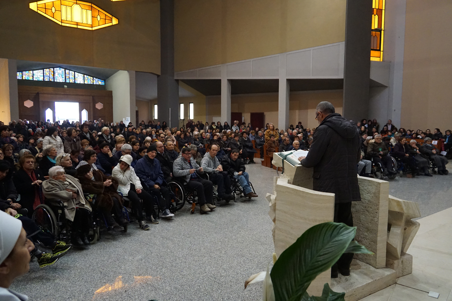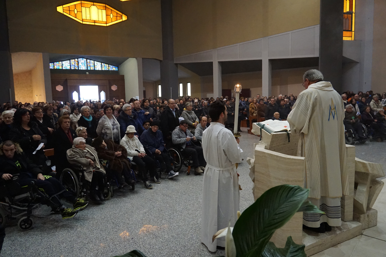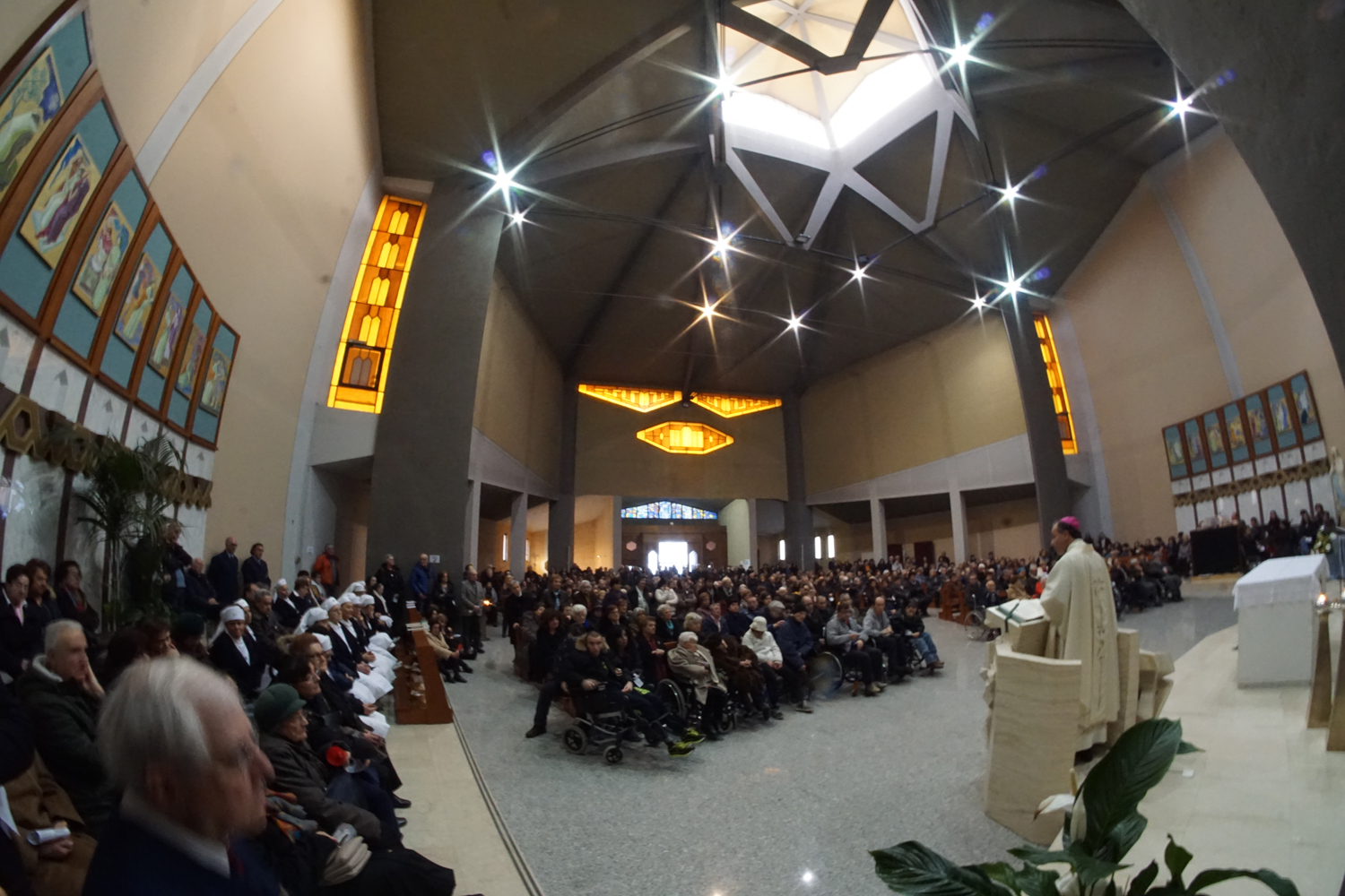 Chiesa gremita, come sempre, il pomeriggio dell’undici febbraio, in quel di Regina Pacis, per il tradizionale appuntamento nel giorno che segna l’anniversario della prima apparizione di Maria a santa Bernadette Soubirous. Un appuntamento che esisteva sin dagli anni Settanta nella chiesa cittadina intitolata alla Regina della pace, organizzato congiuntamente dalla parrocchia con l’Unitalsi e l’Ufficio diocesano pellegrinaggi, e divenuto più “ufficiale” da 25 anni in qua con la consacrazione di tale data quale Giornata mondiale del malato per volontà del santo papa Giovanni Paolo II.