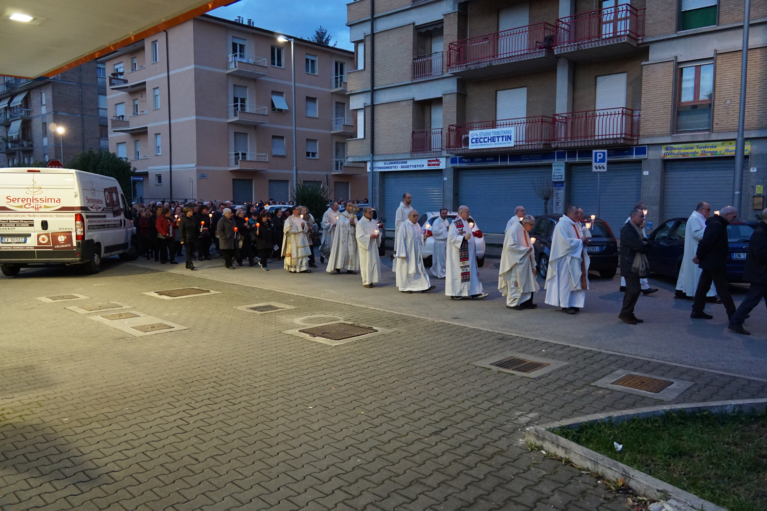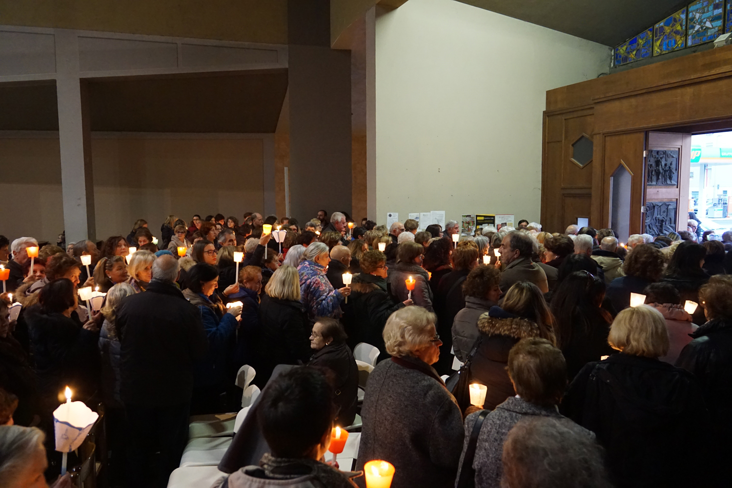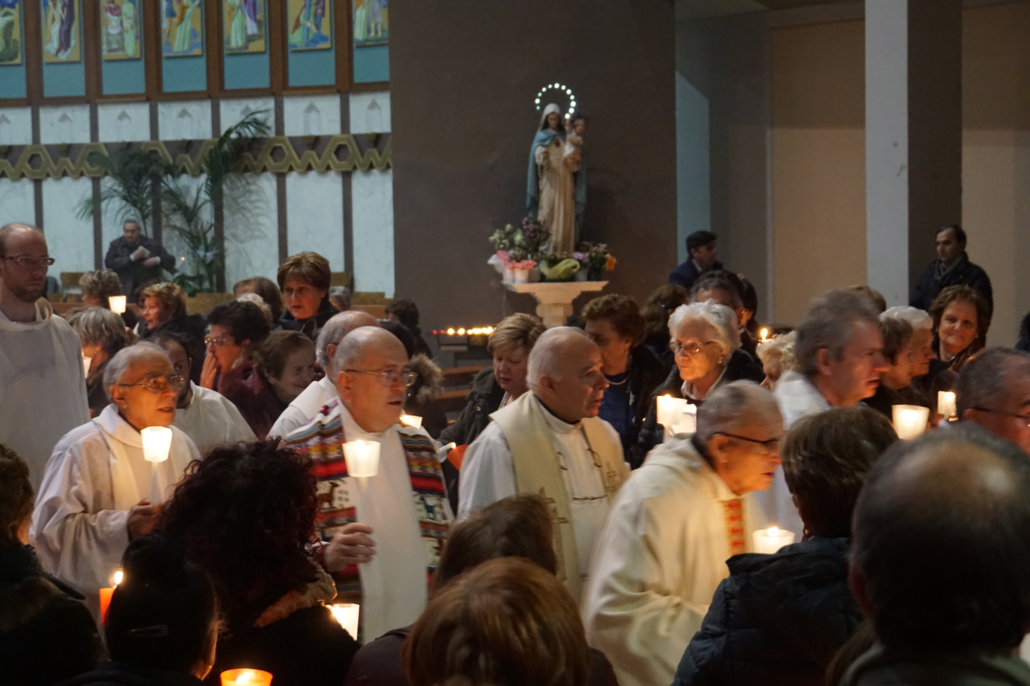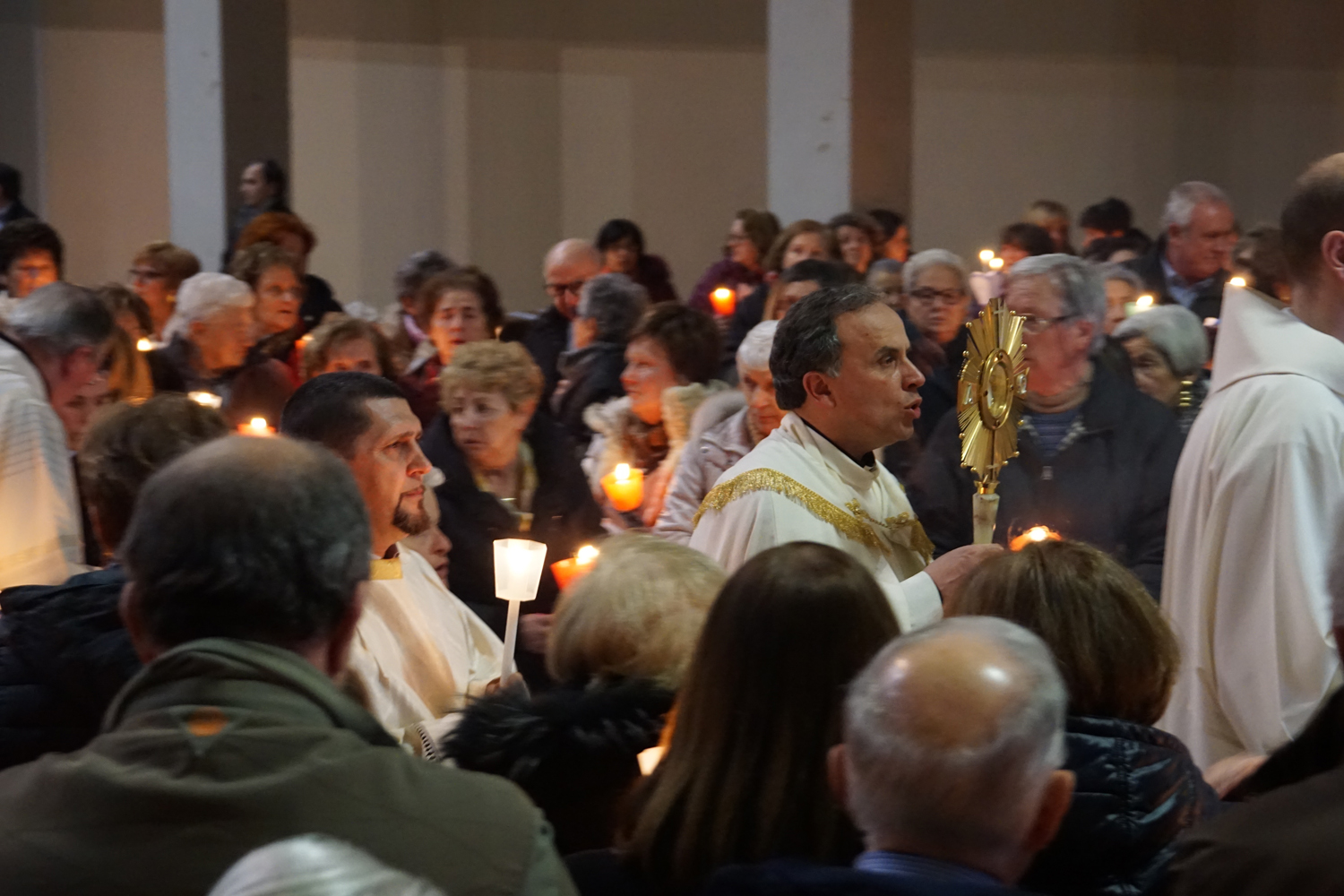 Il pensiero è andato a lui in particolare durante la processione eucaristica che è seguita alla Messa, ricordando quando guidava la preghiera innalzando le classiche acclamazioni tipiche delle processioni nell’ésplanade di Lourdes. Con canti e preghiere, tutti i partecipanti hanno sfilato nel portare il Santissimo Sacramento nelle strade attorno al complesso parrocchiale, per poi rientrare e concludere con la preghiera di adorazione conclusiva, la benedizione eucaristica e il suggestivo canto dell’Ave di Lourdes caratterizzato, come nel santuario francese, dal tenere in alto i flambeaux accesi durante il ritornello.