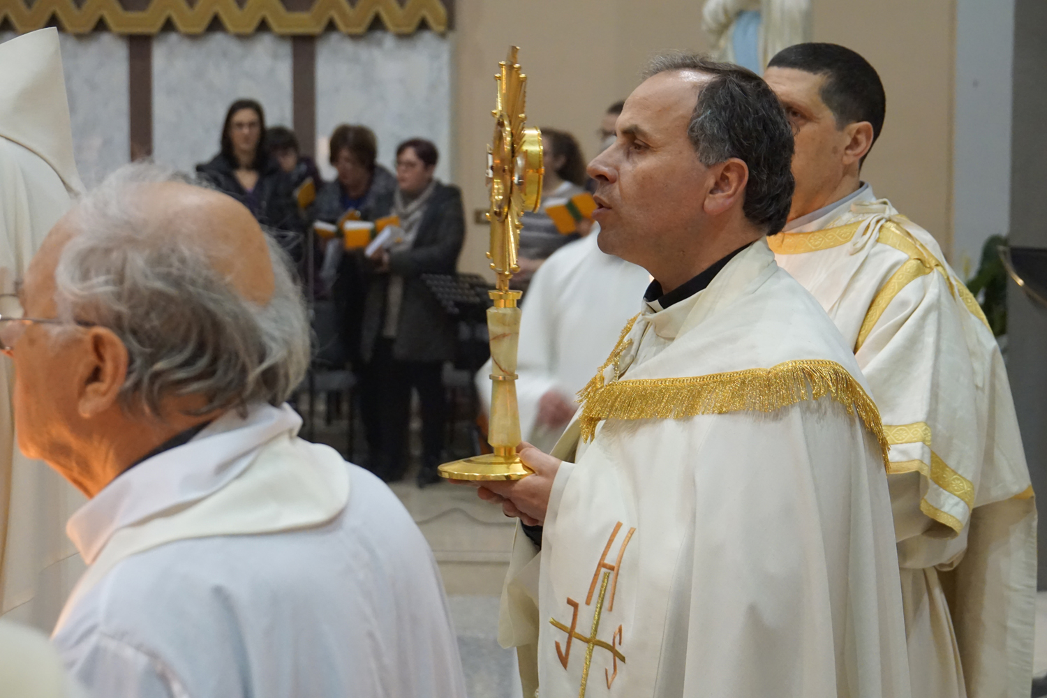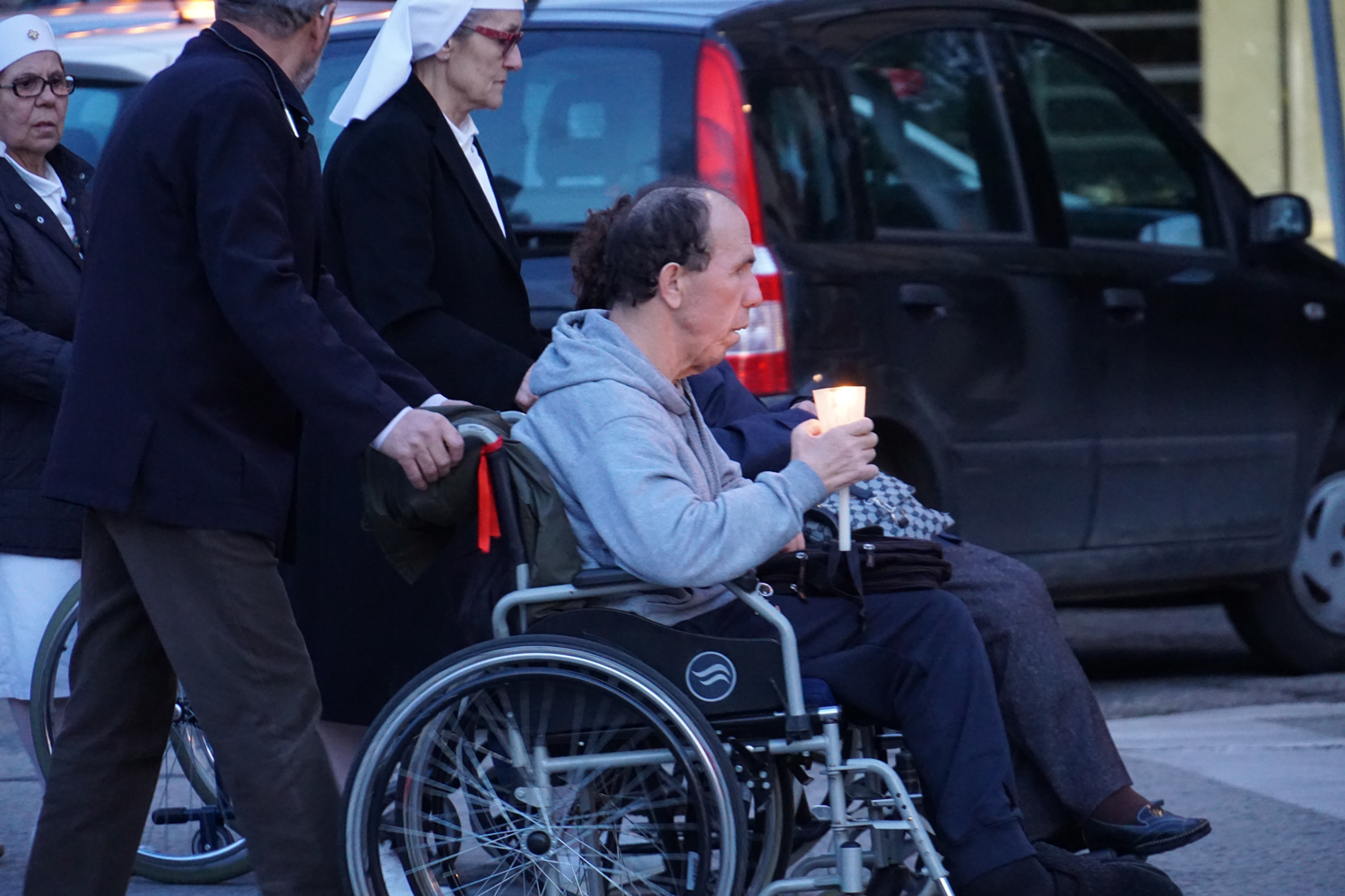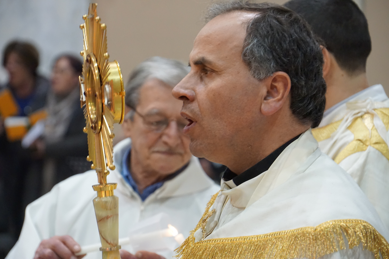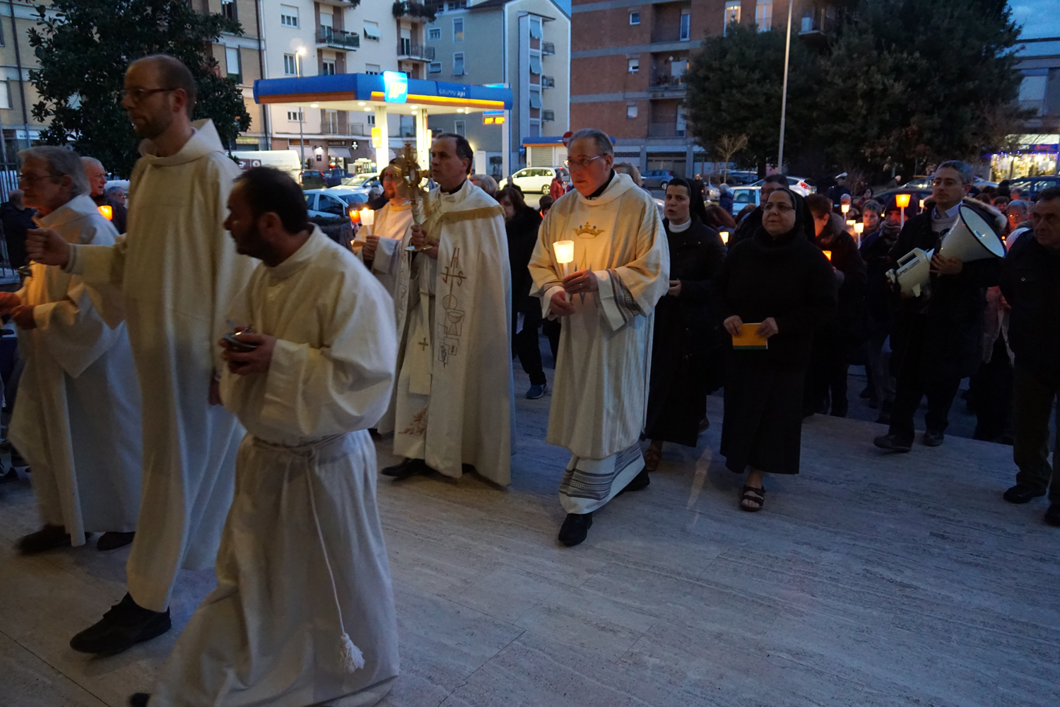 Il pensiero è andato a lui in particolare durante la processione eucaristica che è seguita alla Messa, ricordando quando guidava la preghiera innalzando le classiche acclamazioni tipiche delle processioni nell’ésplanade di Lourdes. Con canti e preghiere, tutti i partecipanti hanno sfilato nel portare il Santissimo Sacramento nelle strade attorno al complesso parrocchiale, per poi rientrare e concludere con la preghiera di adorazione conclusiva, la benedizione eucaristica e il suggestivo canto dell’Ave di Lourdes caratterizzato, come nel santuario francese, dal tenere in alto i flambeaux accesi durante il ritornello.