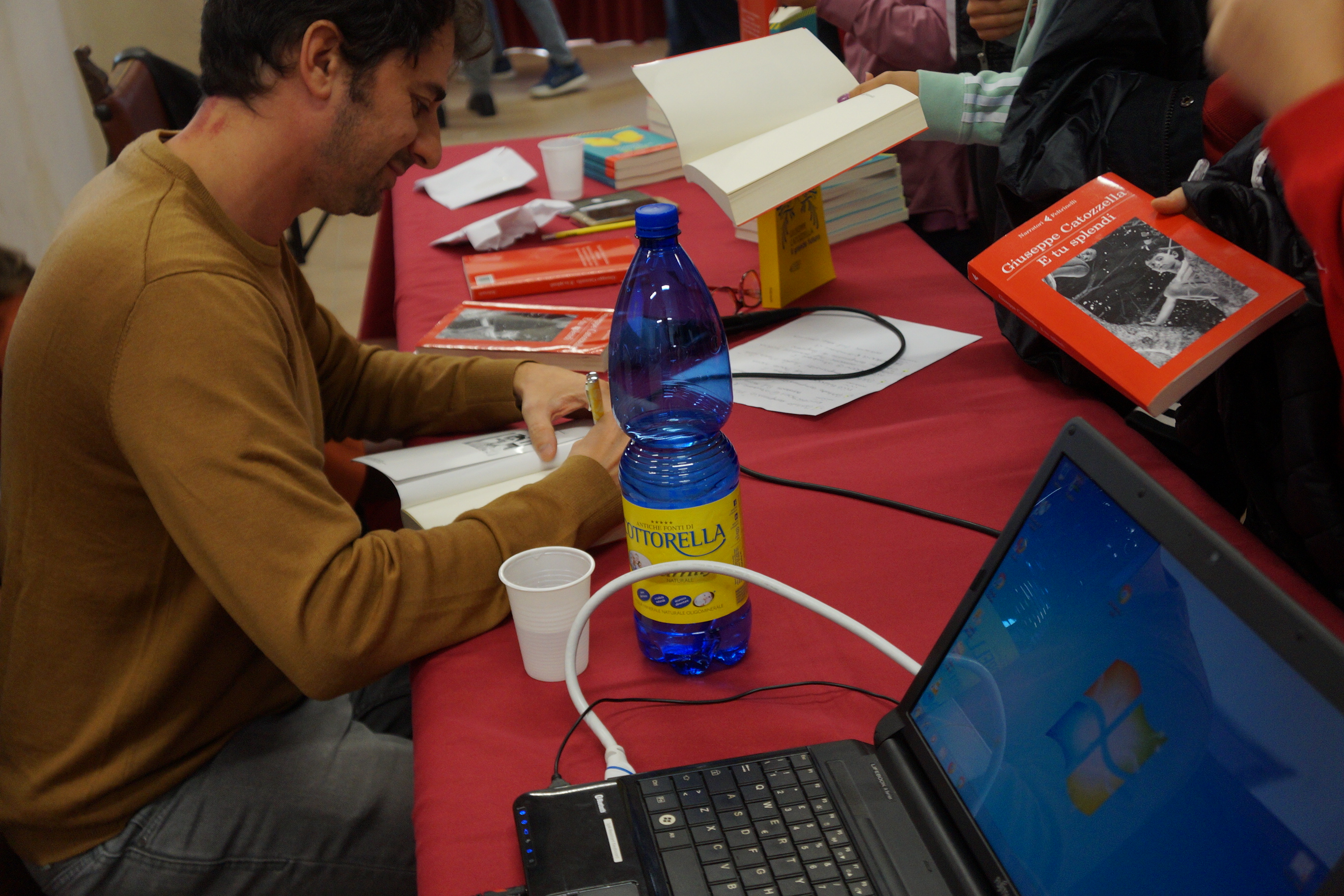 Ad introdurre l’incontro tra l’autore e i tantissimi studenti venuti ad ascoltarlo, Serena Petrocchi della Libreria Rieti (che ha organizzato l’evento) facendo notare agli studenti di essere «fortunati ad avere libri in mano, anziché armi» come accade a tanti bambini nel mondo di Catozzella ha raccontato nei suoi libri.
