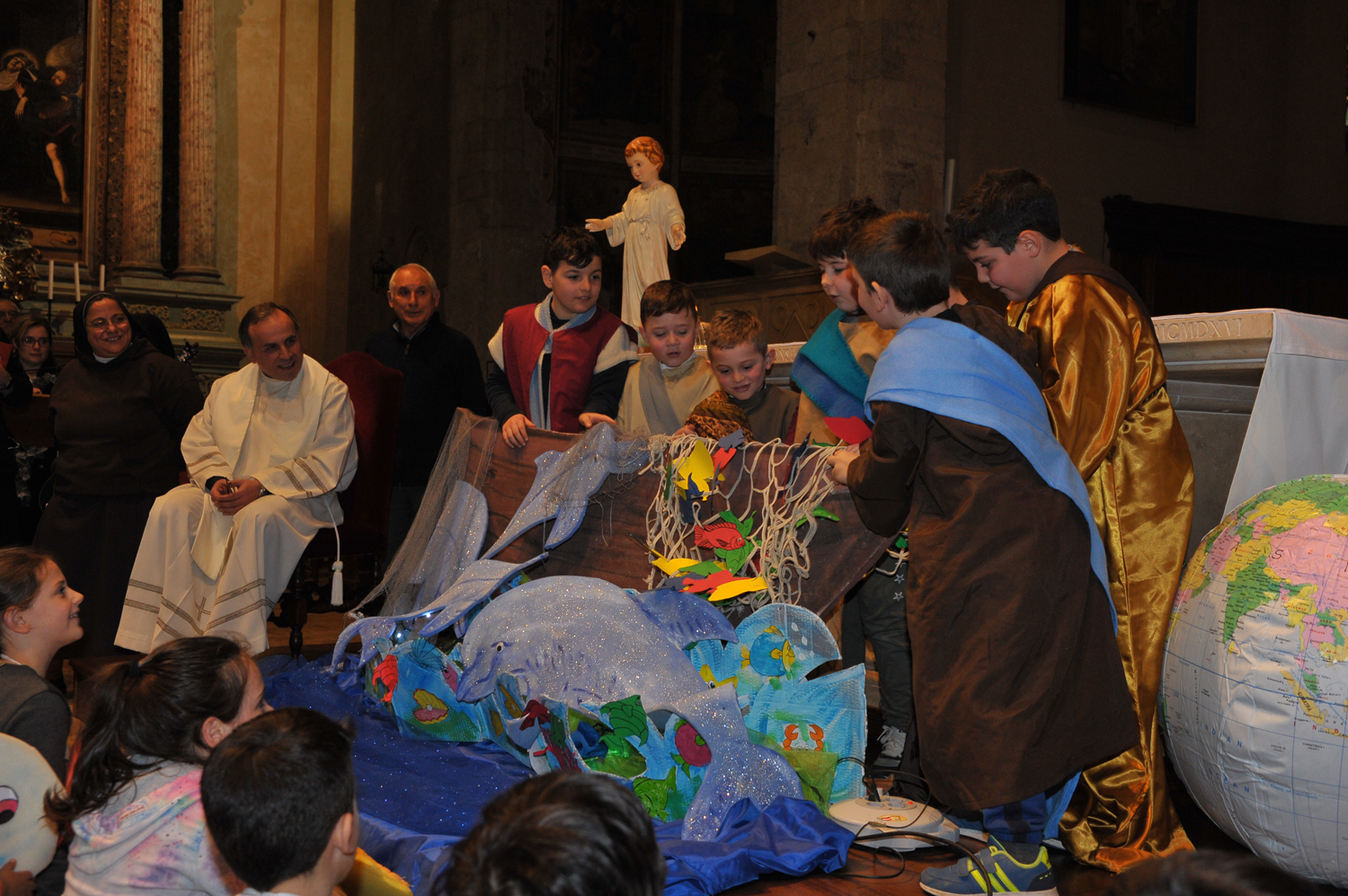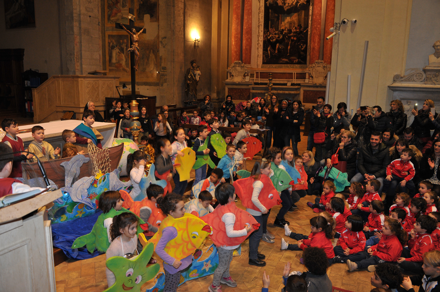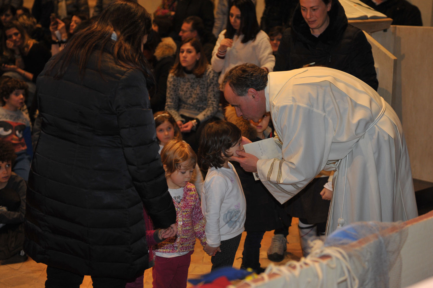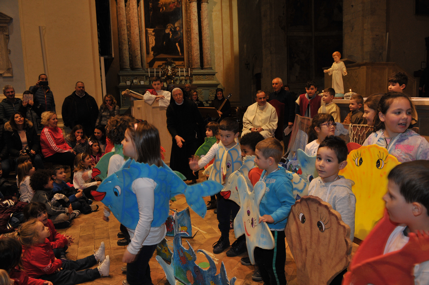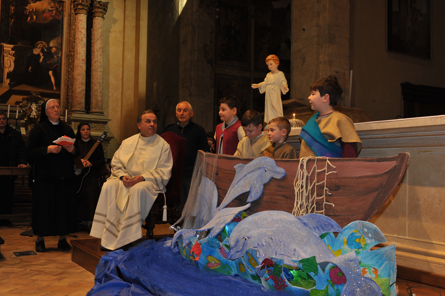 Mentre un bambino interpretava Gesù e altri gli apostoli, i compagni si sono affidati alla Parola, avvicinandosi ad essa nel modo forse a loro più naturale. Ai giovanissimi dell’asilo Maraini, della paritaria delle Pie Venerini in via Pietro Boschi, degli istituti Santa Lucia, Bambin Gesù e Divino Amore di Rieti, della scuola Santa Chiara di Santa Rufina e delle parrocchie cittadine di Quattrostrade, Micioccoli, Borgo e Vazia si è poi rivolto il vescovo Domenico, accompagnandoli nel segno della croce e condividendo con loro un momento di preghiera rivolto al Bambino, ma anche invitando i protagonisti della giornata a guardare in profondità. Con parole semplici, mons Pompili ha infatti spiegato ai ragazzini che più dei doni presentati, segno di adesione missionaria e vicinanza materiale al prossimo, è prezioso il tempo dedicato agli altri.