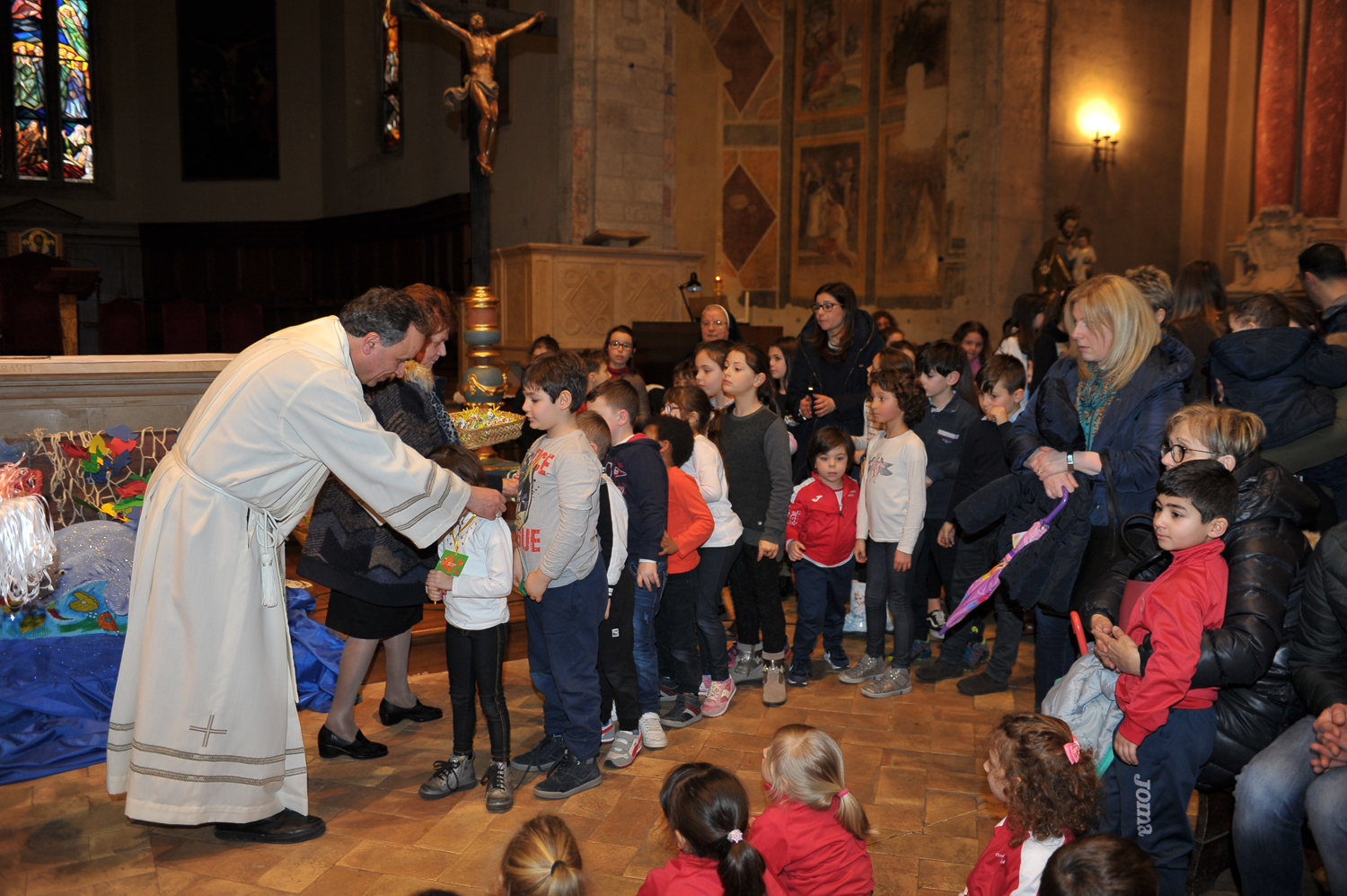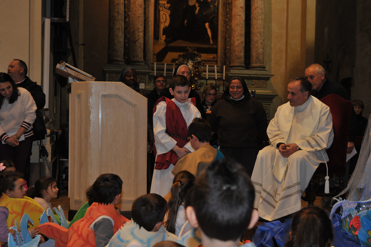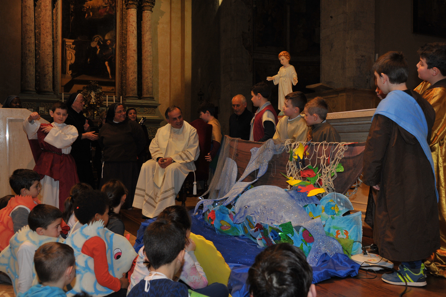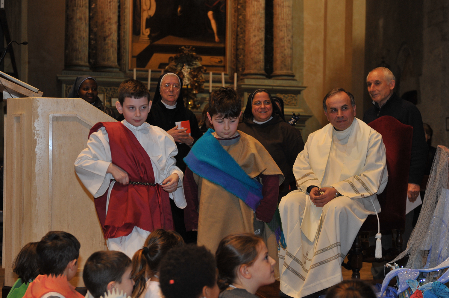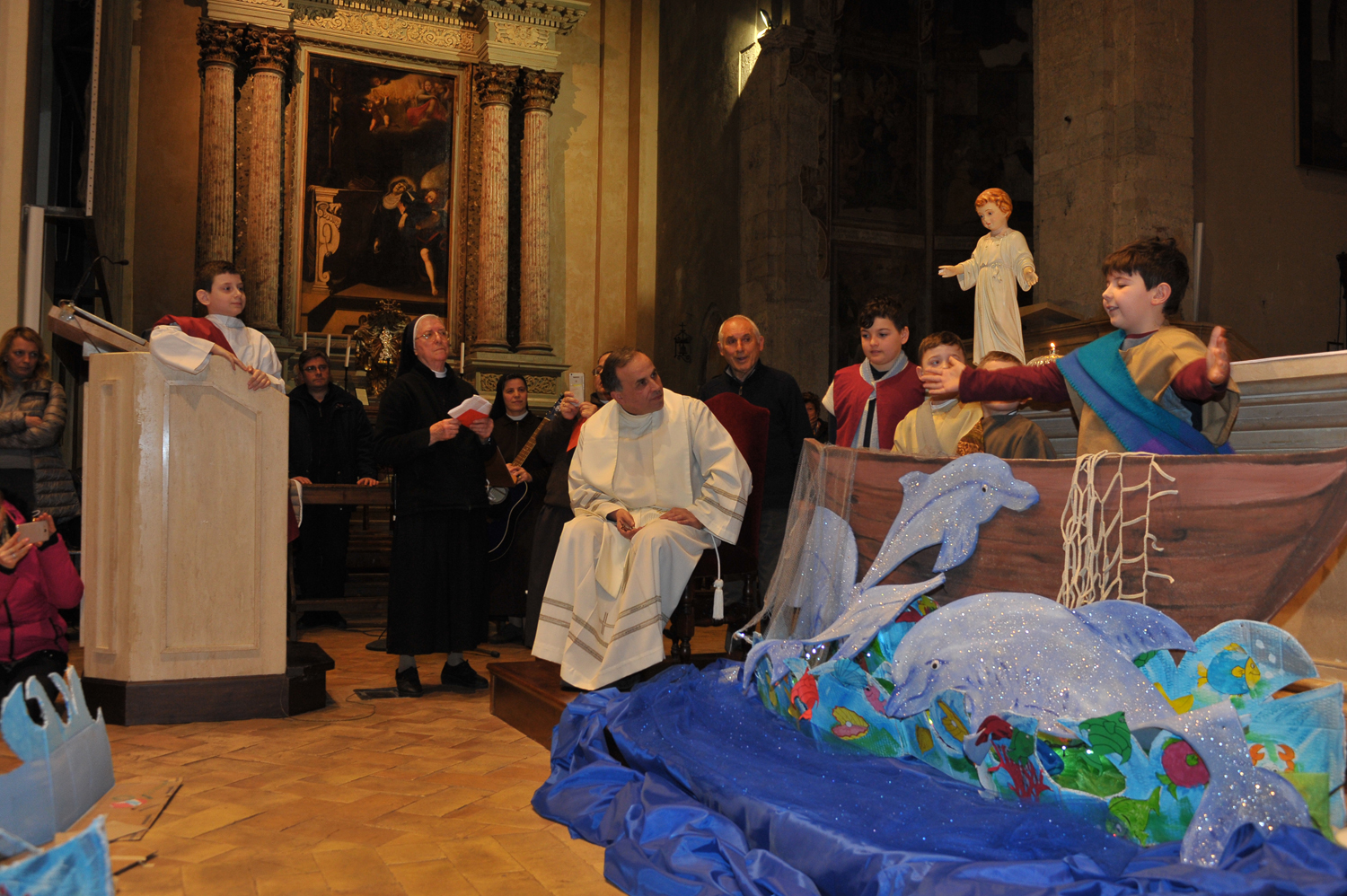 Mentre un bambino interpretava Gesù e altri gli apostoli, i compagni si sono affidati alla Parola, avvicinandosi ad essa nel modo forse a loro più naturale. Ai giovanissimi dell’asilo Maraini, della paritaria delle Pie Venerini in via Pietro Boschi, degli istituti Santa Lucia, Bambin Gesù e Divino Amore di Rieti, della scuola Santa Chiara di Santa Rufina e delle parrocchie cittadine di Quattrostrade, Micioccoli, Borgo e Vazia si è poi rivolto il vescovo Domenico, accompagnandoli nel segno della croce e condividendo con loro un momento di preghiera rivolto al Bambino, ma anche invitando i protagonisti della giornata a guardare in profondità. Con parole semplici, mons Pompili ha infatti spiegato ai ragazzini che più dei doni presentati, segno di adesione missionaria e vicinanza materiale al prossimo, è prezioso il tempo dedicato agli altri.