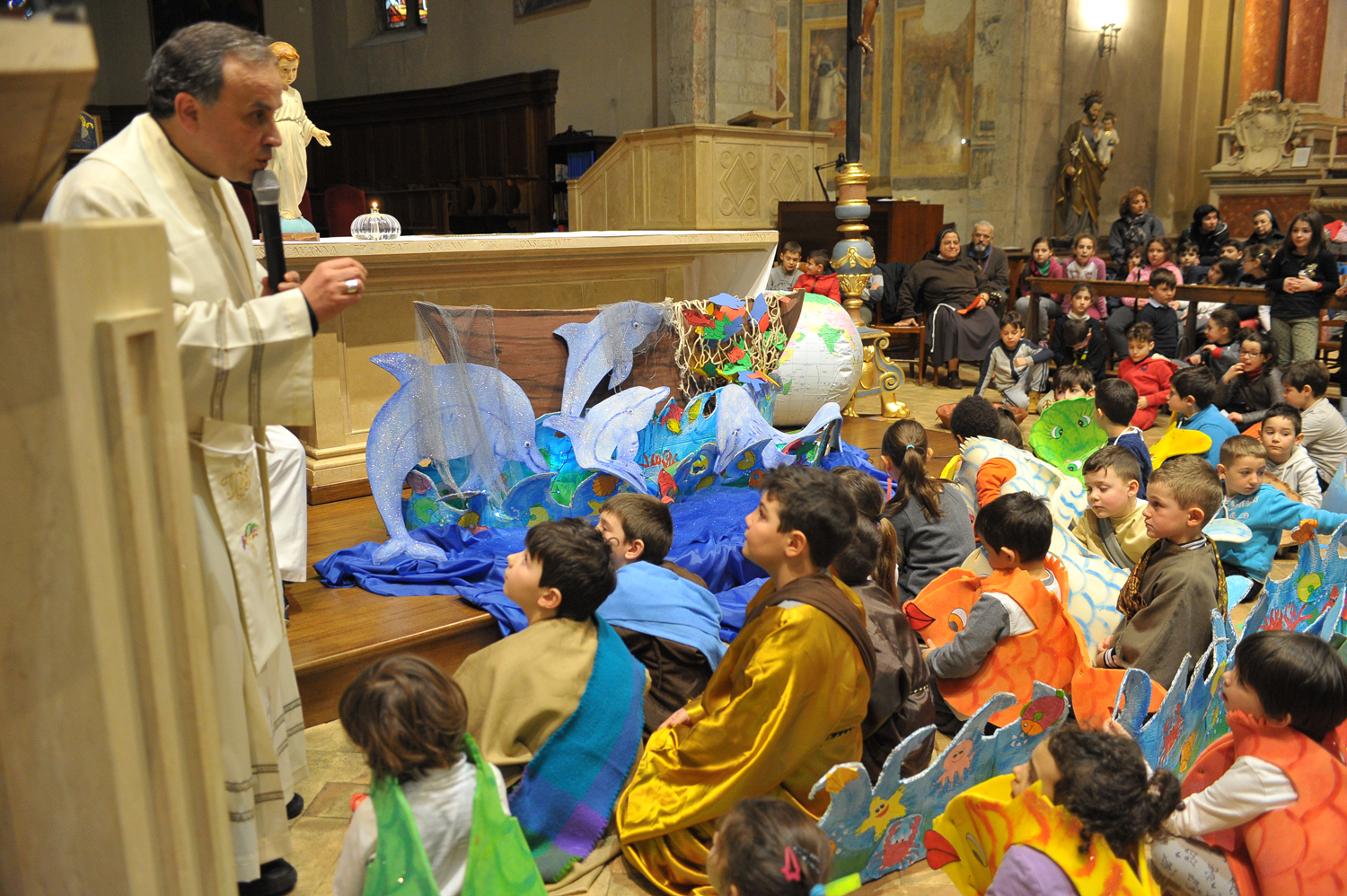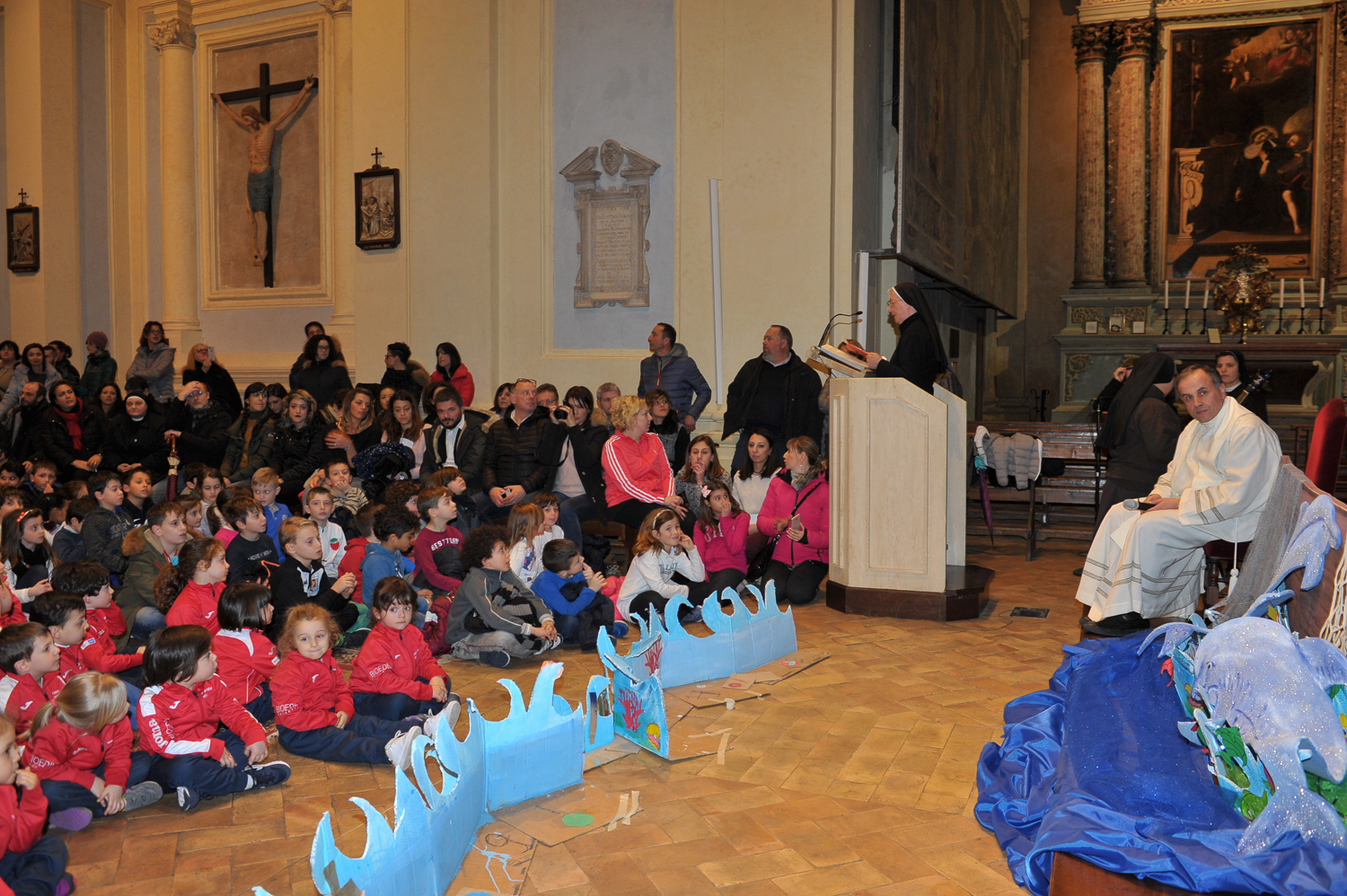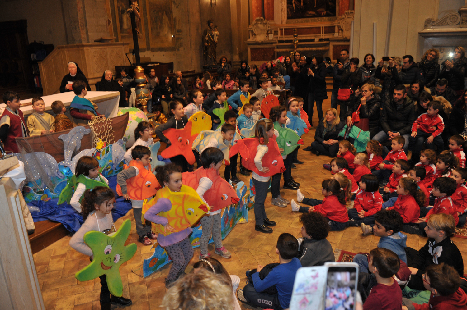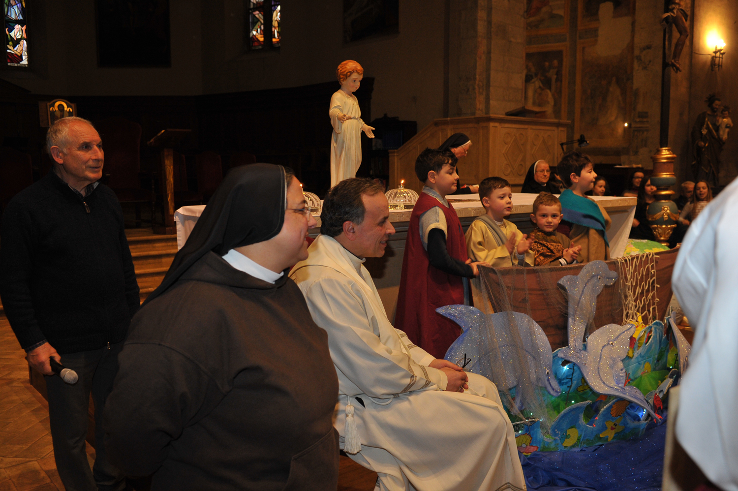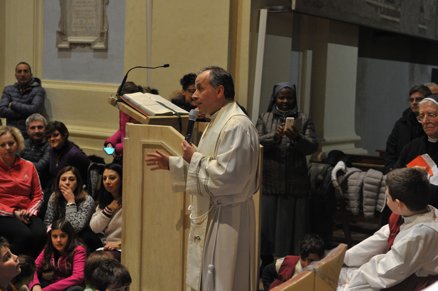 Mentre un bambino interpretava Gesù e altri gli apostoli, i compagni si sono affidati alla Parola, avvicinandosi ad essa nel modo forse a loro più naturale. Ai giovanissimi dell’asilo Maraini, della paritaria delle Pie Venerini in via Pietro Boschi, degli istituti Santa Lucia, Bambin Gesù e Divino Amore di Rieti, della scuola Santa Chiara di Santa Rufina e delle parrocchie cittadine di Quattrostrade, Micioccoli, Borgo e Vazia si è poi rivolto il vescovo Domenico, accompagnandoli nel segno della croce e condividendo con loro un momento di preghiera rivolto al Bambino, ma anche invitando i protagonisti della giornata a guardare in profondità. Con parole semplici, mons Pompili ha infatti spiegato ai ragazzini che più dei doni presentati, segno di adesione missionaria e vicinanza materiale al prossimo, è prezioso il tempo dedicato agli altri.