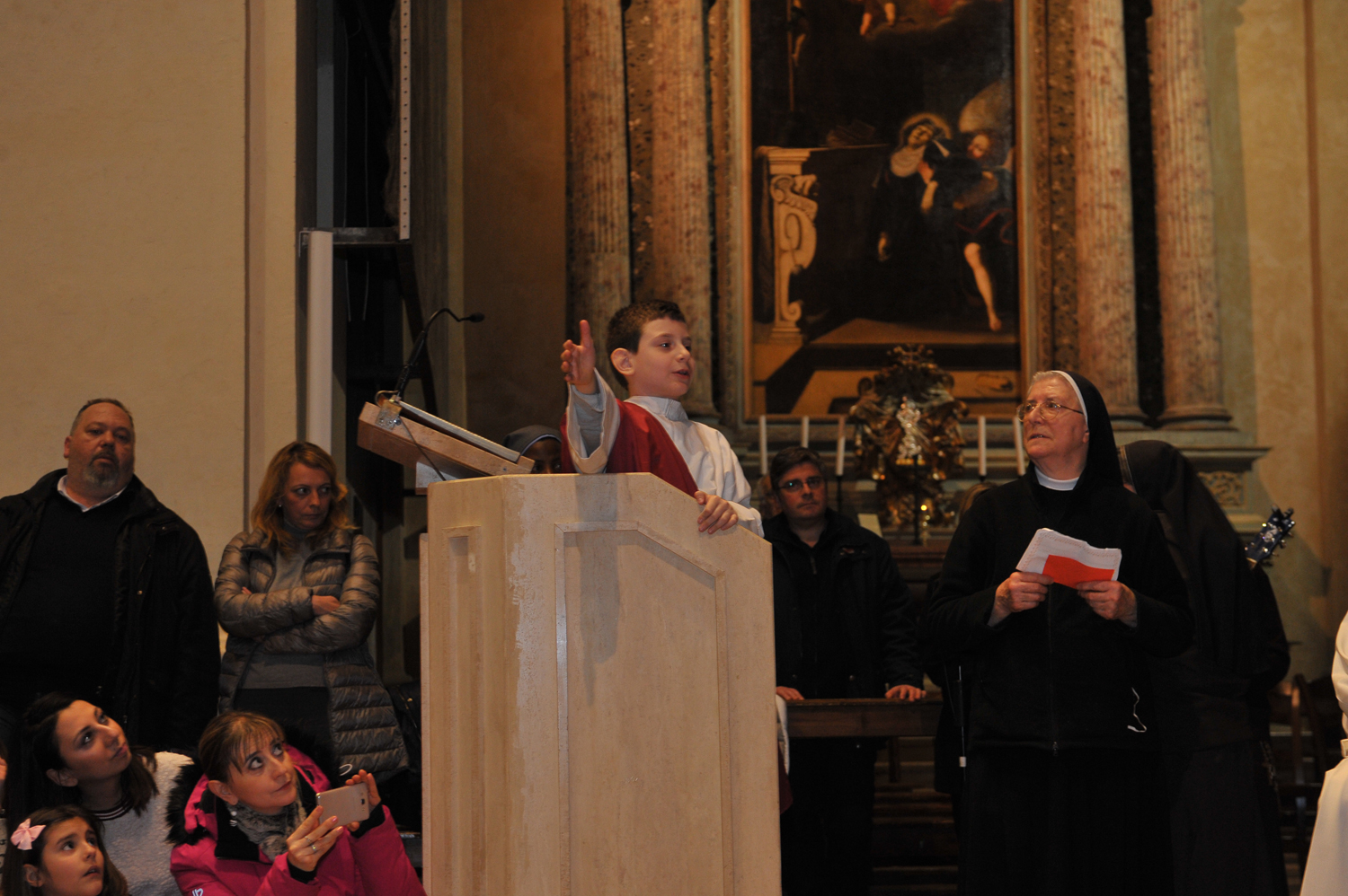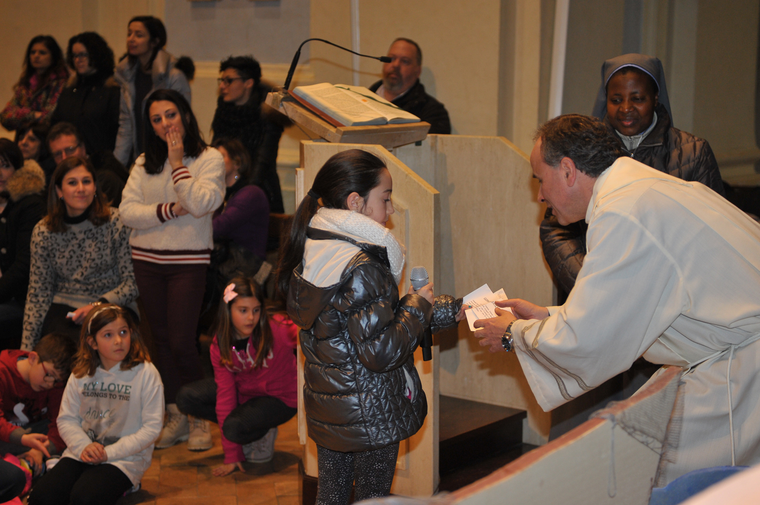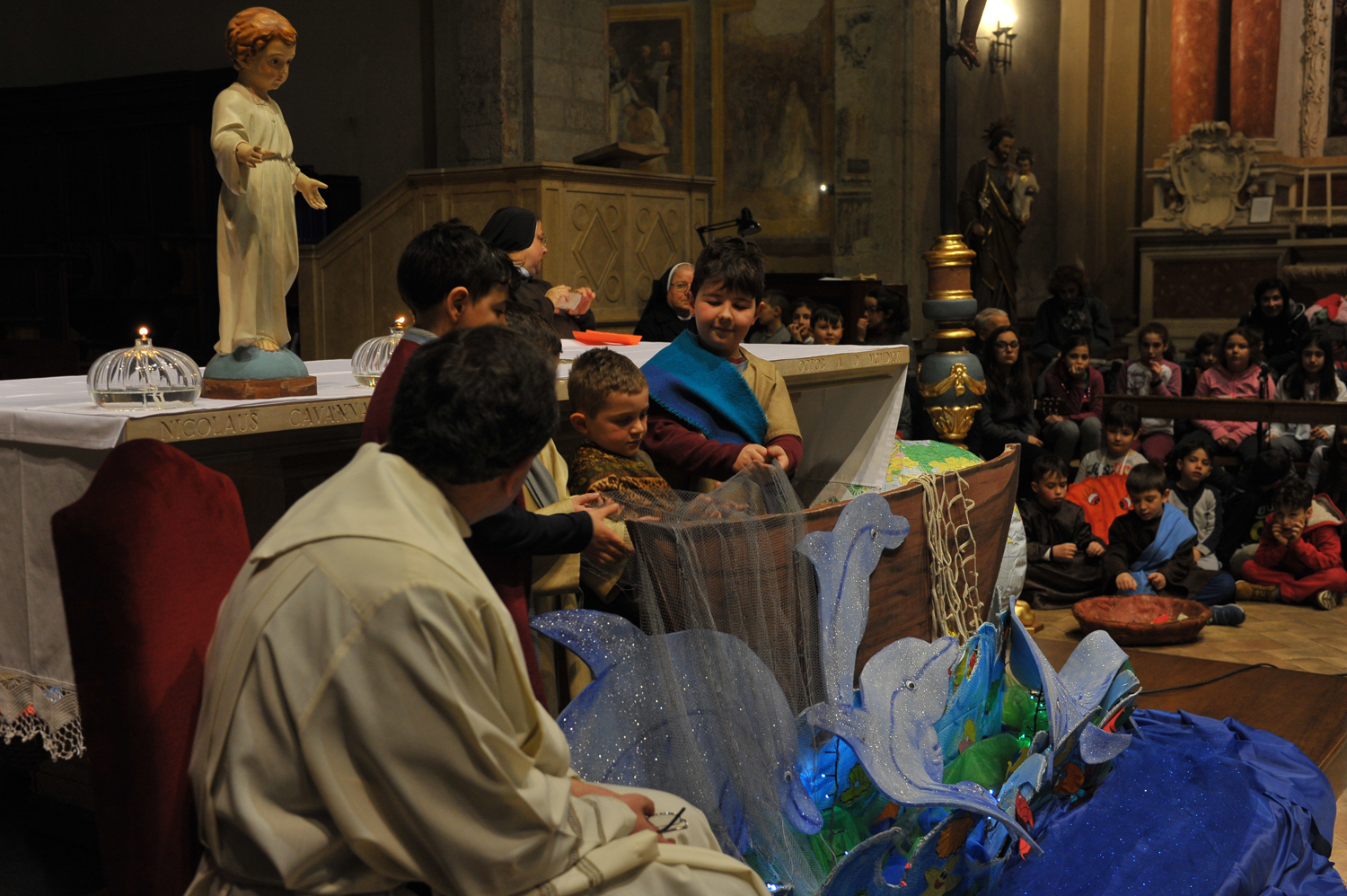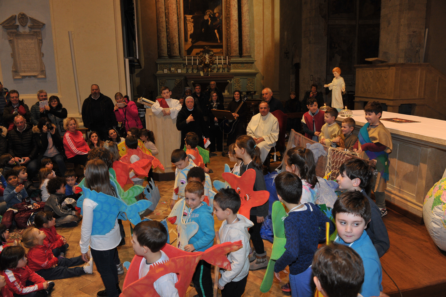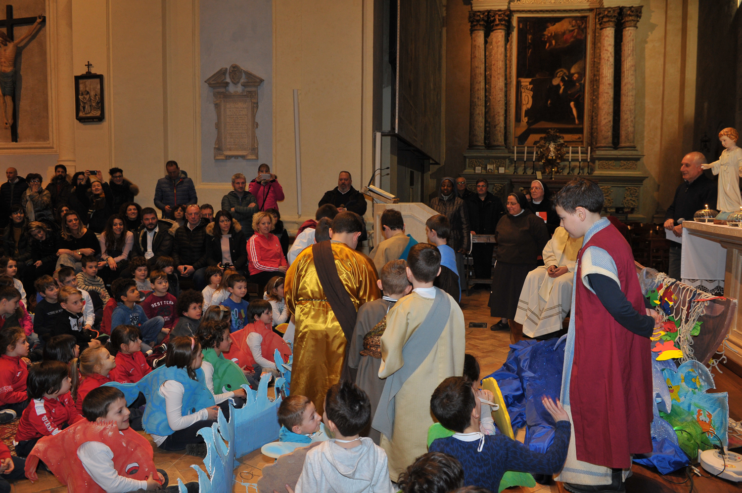 Mentre un bambino interpretava Gesù e altri gli apostoli, i compagni si sono affidati alla Parola, avvicinandosi ad essa nel modo forse a loro più naturale. Ai giovanissimi dell’asilo Maraini, della paritaria delle Pie Venerini in via Pietro Boschi, degli istituti Santa Lucia, Bambin Gesù e Divino Amore di Rieti, della scuola Santa Chiara di Santa Rufina e delle parrocchie cittadine di Quattrostrade, Micioccoli, Borgo e Vazia si è poi rivolto il vescovo Domenico, accompagnandoli nel segno della croce e condividendo con loro un momento di preghiera rivolto al Bambino, ma anche invitando i protagonisti della giornata a guardare in profondità. Con parole semplici, mons Pompili ha infatti spiegato ai ragazzini che più dei doni presentati, segno di adesione missionaria e vicinanza materiale al prossimo, è prezioso il tempo dedicato agli altri.