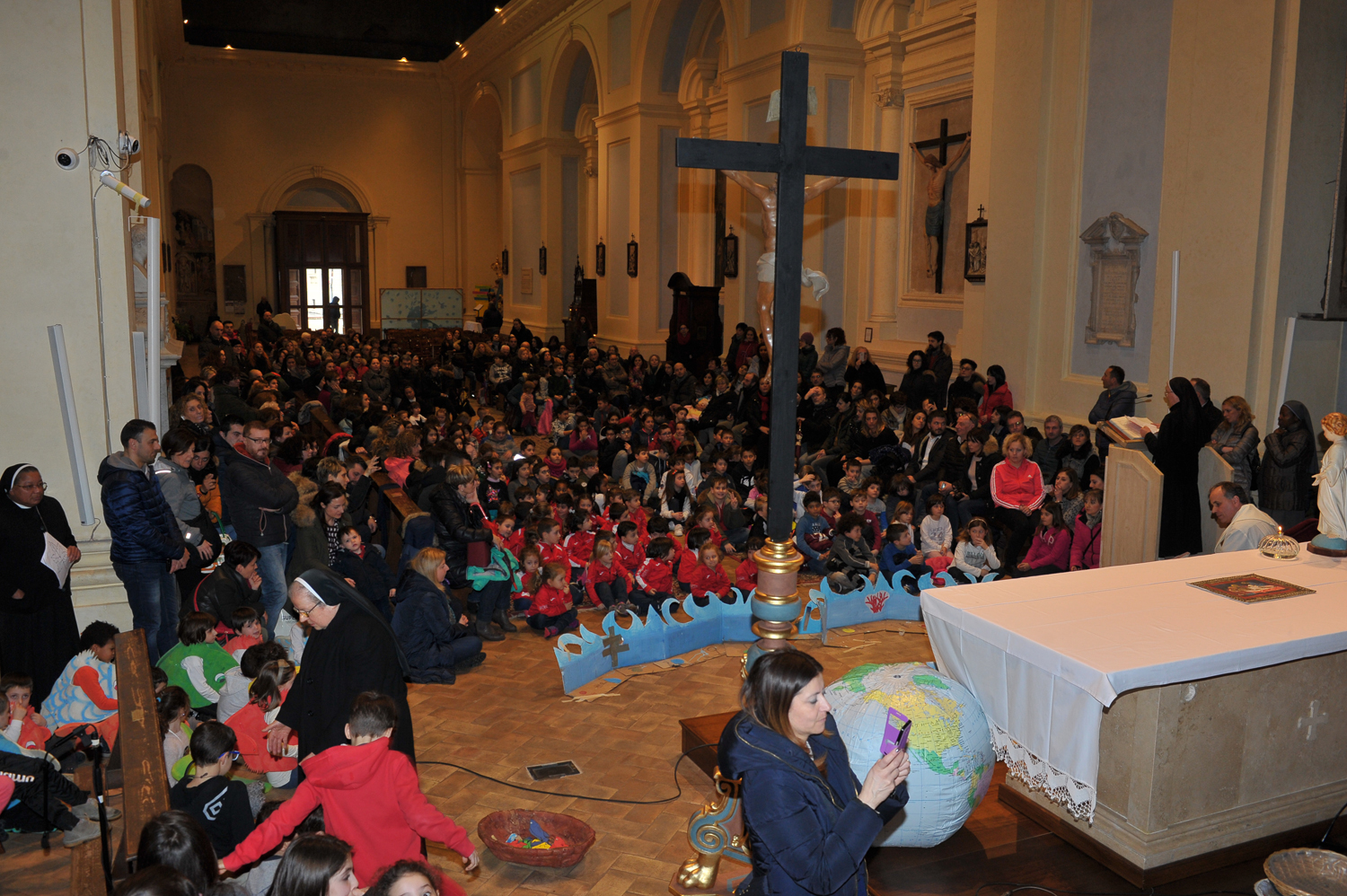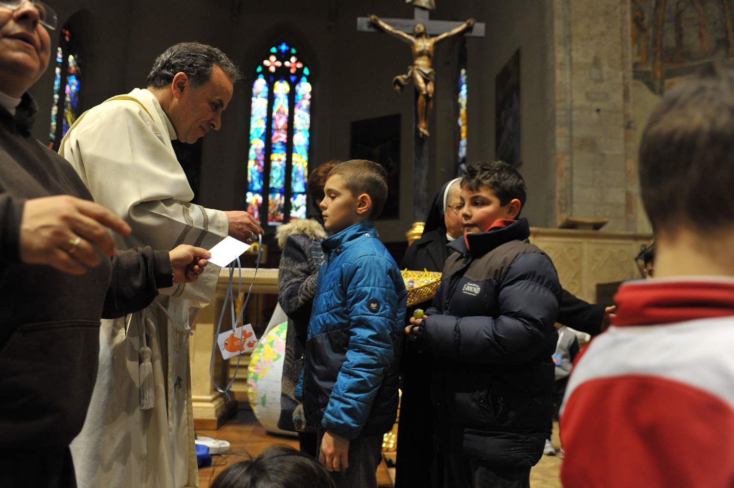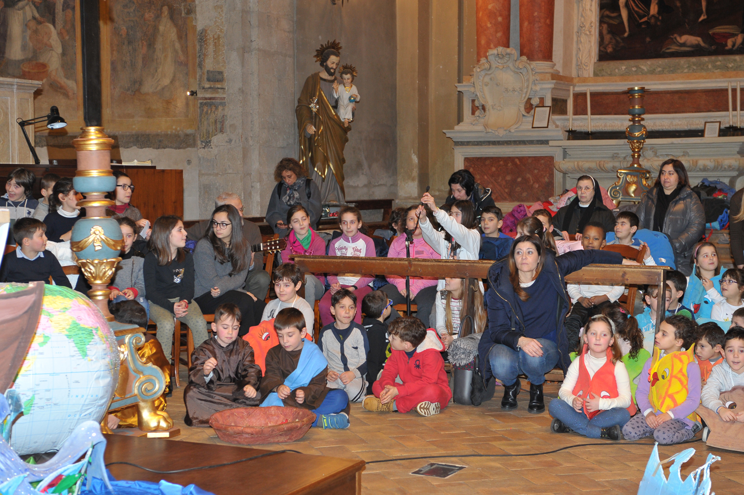 Non è facile quando ci sono di mezzo trecento bambini costruire un momento di raccogliemento, ma lo scorso lunedì l’esperimento è riuscito nella chiesa reatina di Sant’Agostino, in occasione della Giornata del Dono. Per accogliere i piccoli nella navata, la basilica ha cambiato assetto. Messi i banchi lungo le pareti e ampi tappeti a terra, gli alunni delle scuole per l’infanzia hanno trovato tanto spazio per vivere insieme ai genitori, alle insegnanti e alle religiose l’appuntamento organizzato ogni anno dal Centro missionario diocesano.