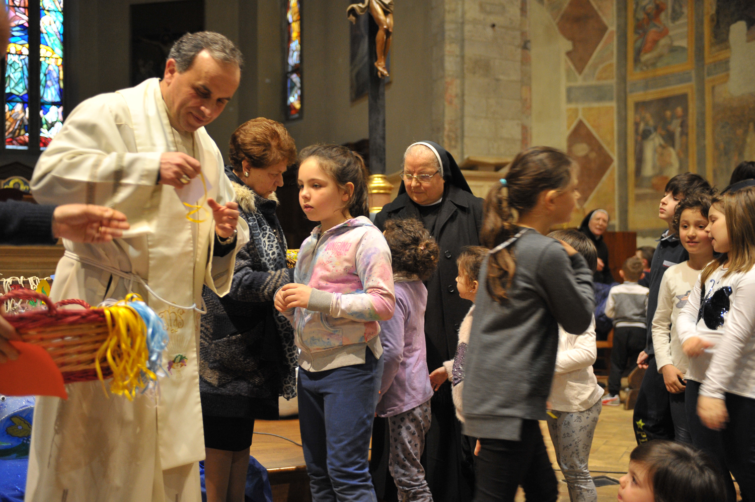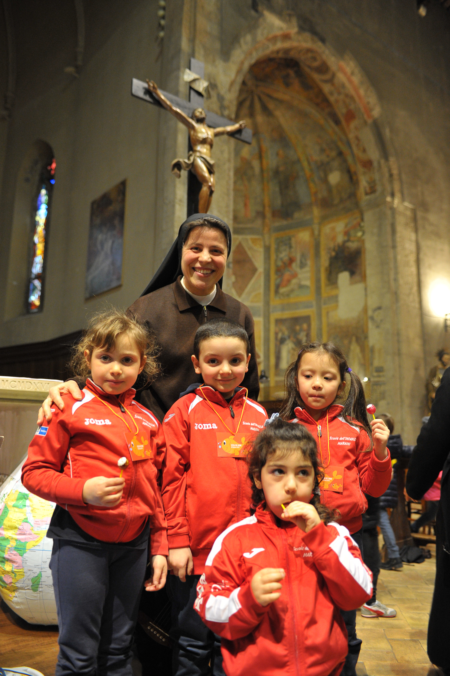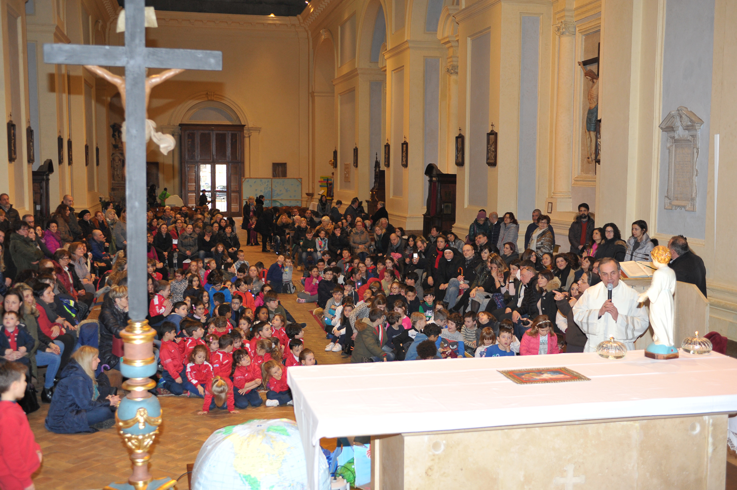 Non è facile quando ci sono di mezzo trecento bambini costruire un momento di raccogliemento, ma lo scorso lunedì l’esperimento è riuscito nella chiesa reatina di Sant’Agostino, in occasione della Giornata del Dono. Per accogliere i piccoli nella navata, la basilica ha cambiato assetto. Messi i banchi lungo le pareti e ampi tappeti a terra, gli alunni delle scuole per l’infanzia hanno trovato tanto spazio per vivere insieme ai genitori, alle insegnanti e alle religiose l’appuntamento organizzato ogni anno dal Centro missionario diocesano.