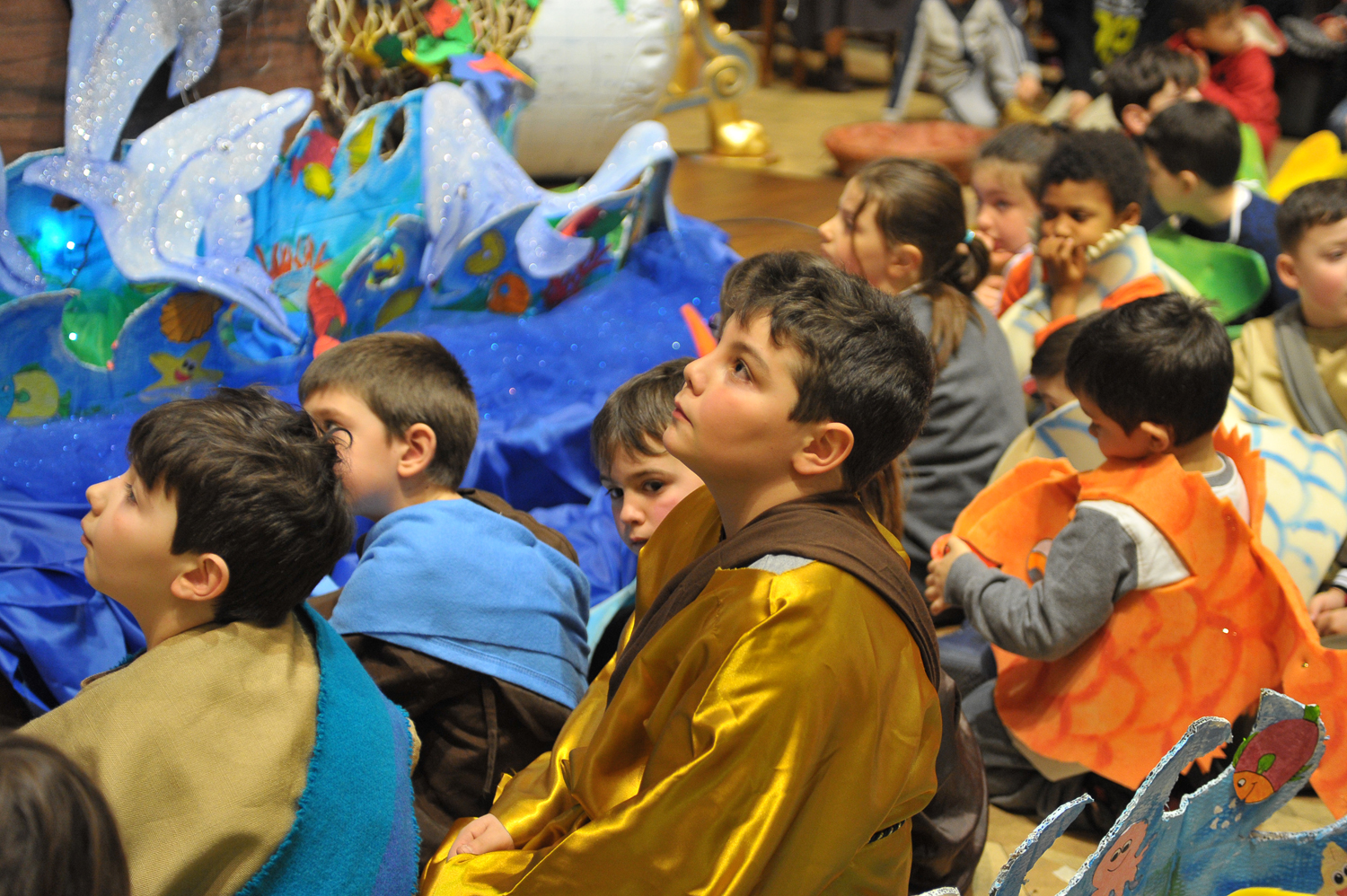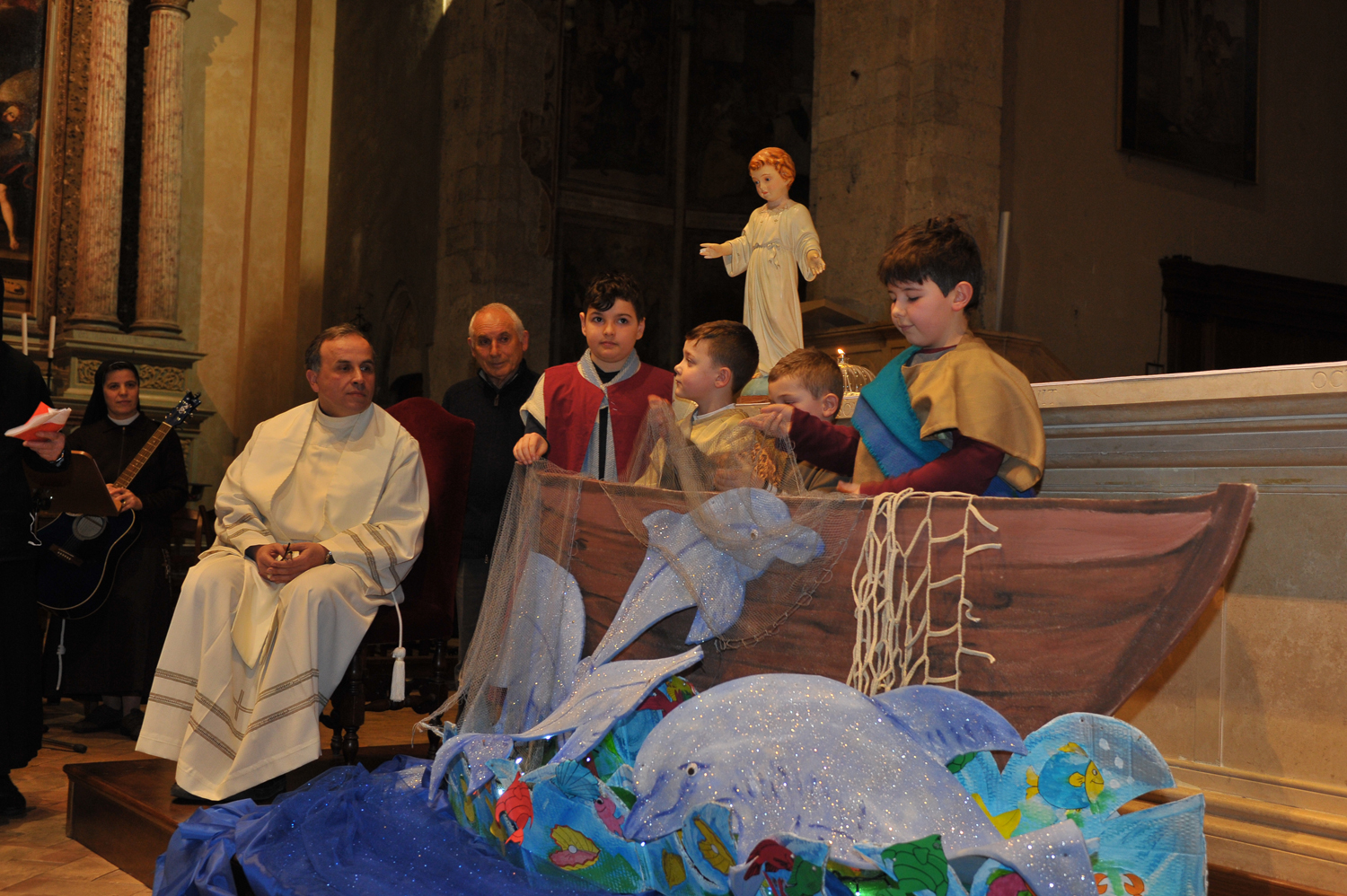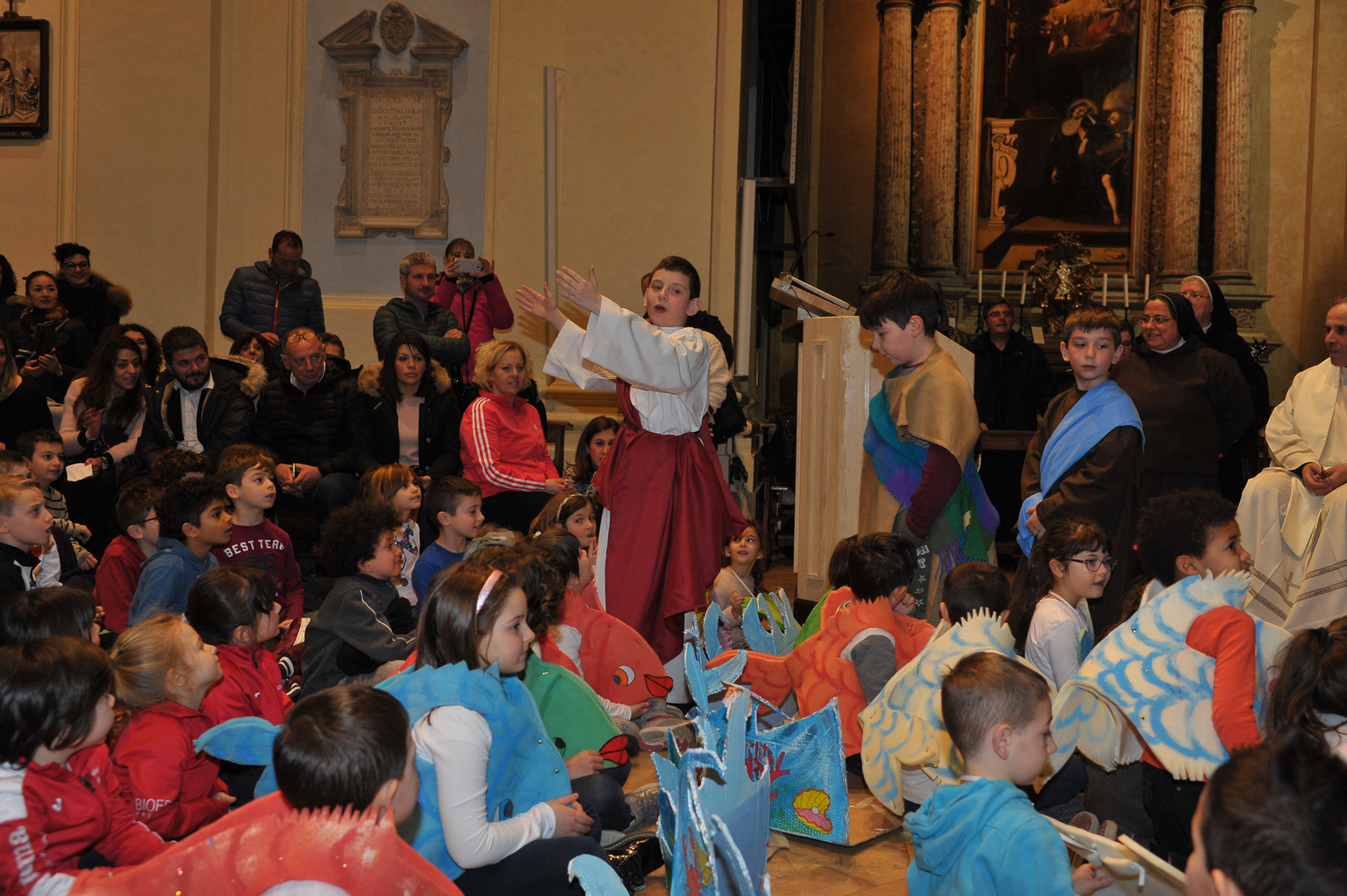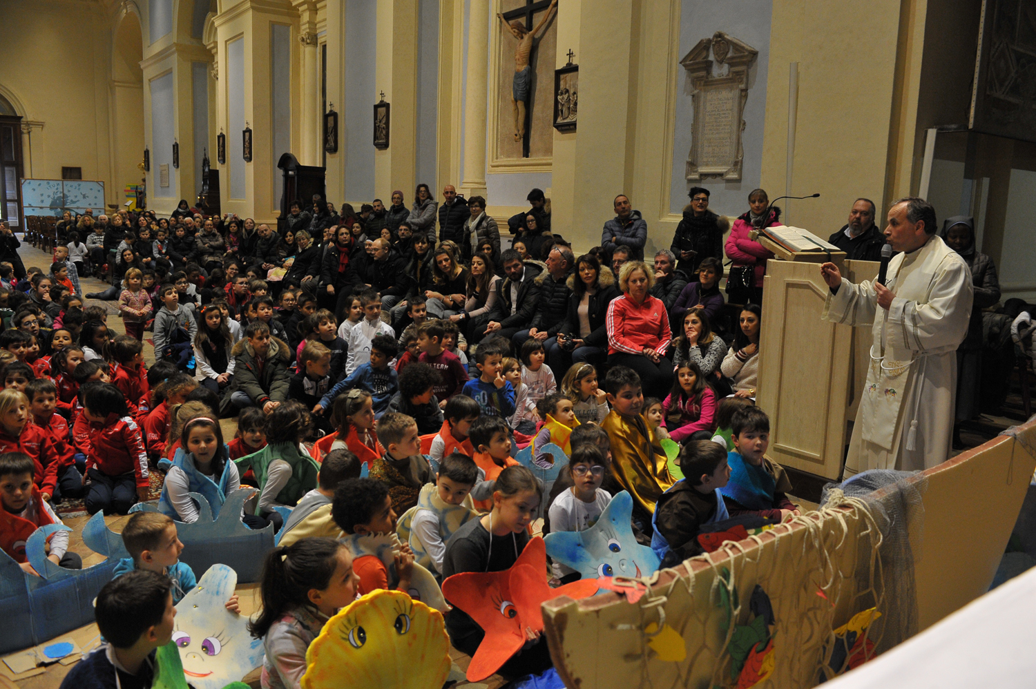 Ad ottenere la massima attenzione dei giovanissimi è stato il passo evangelico della pesca miracolosa, che non è stato letto, ma messo in scena grazie all’impegno di alcuni coetanei e alla guida di suor Elisabeth e suor Donata, coordinate dall’ufficio diocesano dedicato alle missioni, che ha contribuito alla colorata scenografia con la barca, le reti, i pesci.