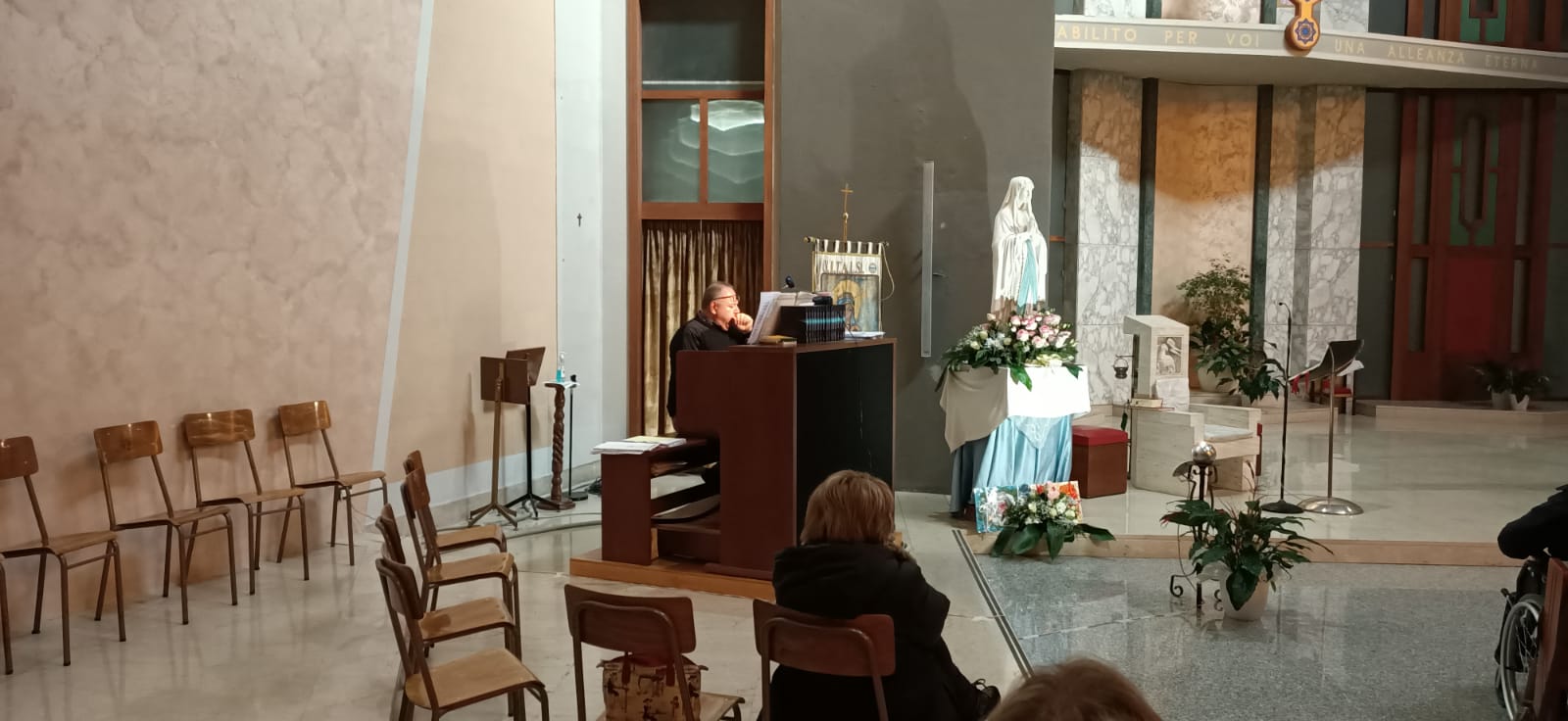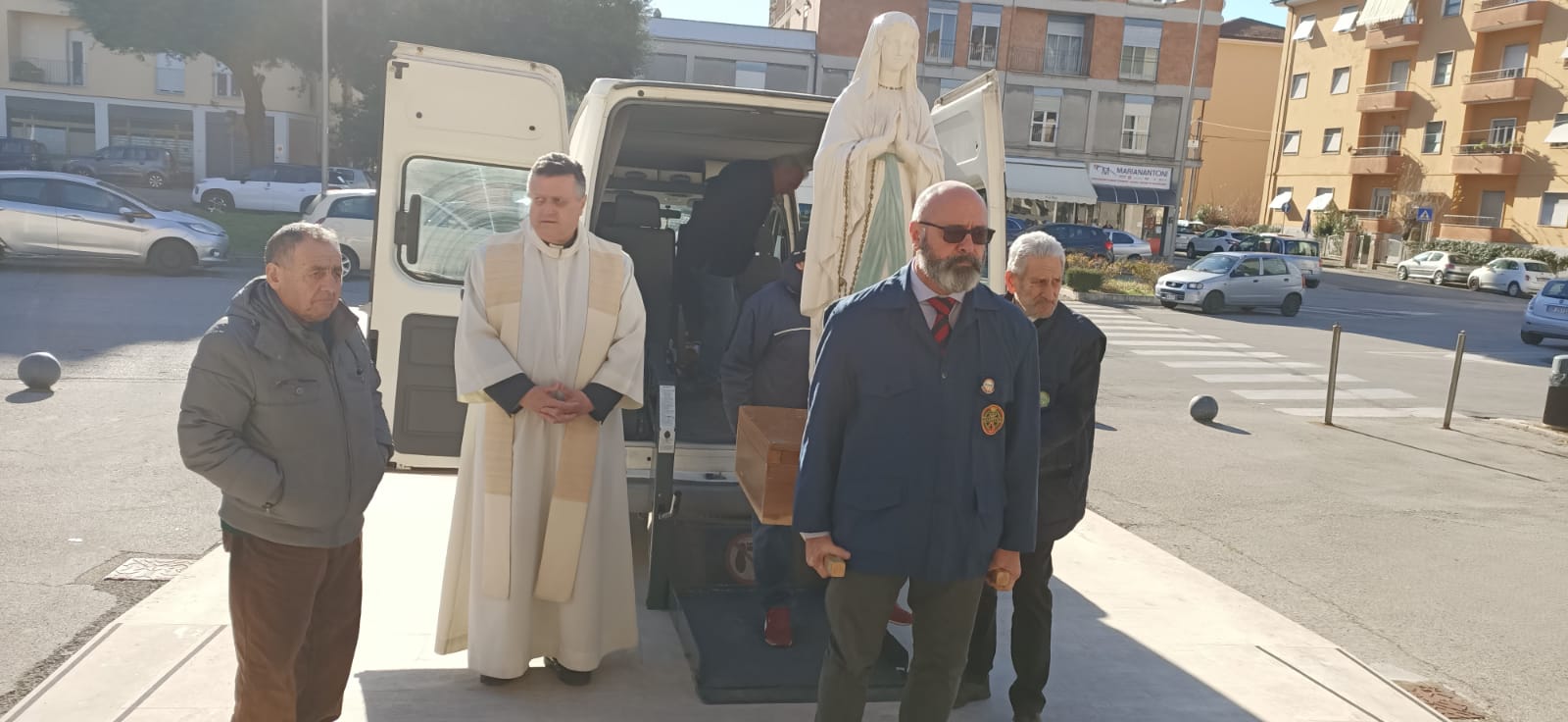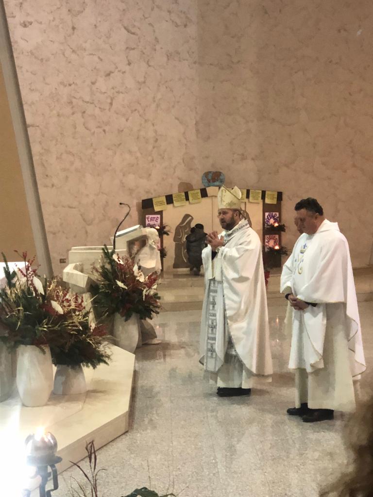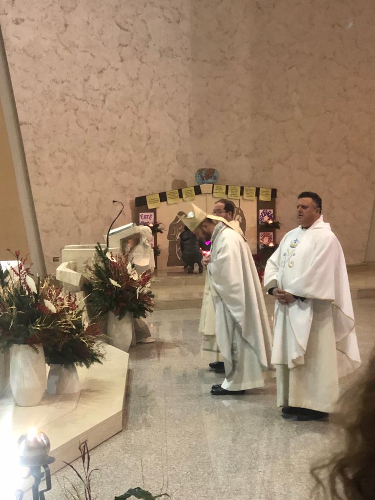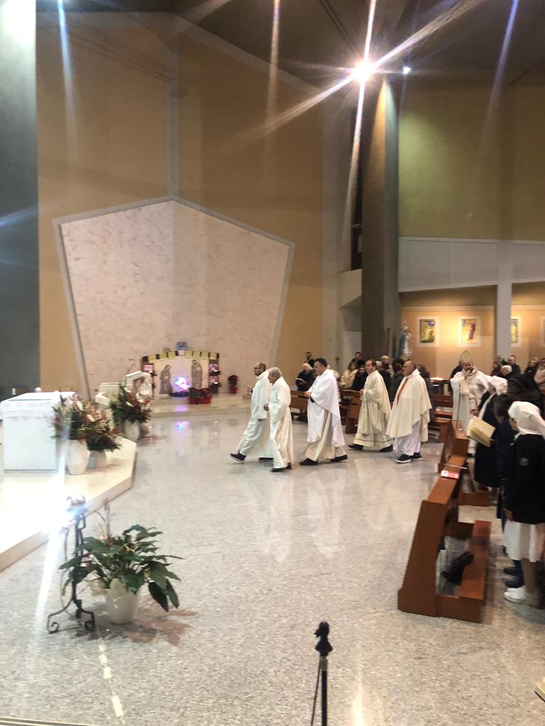Gli unitalsiani della sottosezione reatina sono andati a prelevarla, con il furgone dell’associazione, la mattina di Santo Stefano a Viterbo, trasportandola fino a Rieti nella chiesa di piazza Matteocci, che nel pomeriggio si è riempita di fedeli che, assieme a dame e barellieri dell’Unitalsi nelle loro classiche divise, si sono uniti nell’omaggio alla statua, raccogliendosi in preghiera per il Rosario e poi la Messa. A celebrarla, assieme ai sacerdoti della parrocchia e all’assistente diocesano Unitalsi, il vescovo Vito Piccinonna, che quei sentimenti misti di stupore natalizio e di fortezza nel martirio ha aiutato a leggere nella sua omelia. Lo stupore dinanzi al mistero del Dio che entra nella storia, che ha vissuto Maria per prima, con le sue domande e il suo smarrimento: quello che si continua a provare e che la liturgia all’indomani del Natale, nel ricordare il martirio del diacono Stefano, aiuta a non dimenticare, ricordando che quel Bambino è venuto per affrontare la Croce, quella a cui, primo fra tutti, Stefano fu chiamato ad abbracciare ripetendo l’esperienza di Gesù anche nelle parole pronunciate: il perdono ai suoi persecutori e l’affidamento del proprio spirito al Signore.
