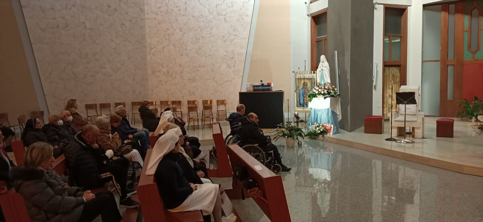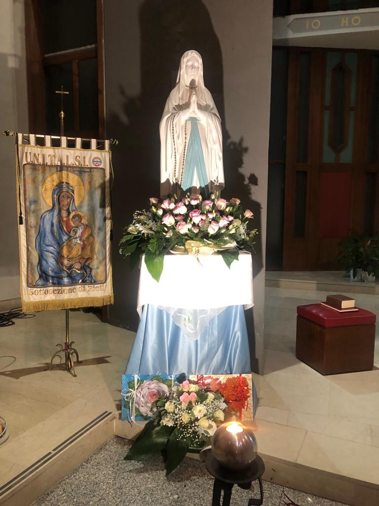 La tenerezza di un Bimbo e di una Madre, nel clima natalizio, unitamente al pensiero della croce che immediatamente, all’indomani di Natale, fa capolino con la memoria del primo martire Stefano: messi insieme, questi sentimenti, dal simbolo che ha raccolto tanti devoti a Regina Pacis nello spirito di quel luogo, caro a tanti, dove sofferenza e consolante letizia vanno di pari passo, che è Lourdes. La copia dell’effigie mariana che lì si venera, nell’ambito della Peregrinatio Mariæ promossa dall’Unitalsi che celebra i 120 anni di fondazione, è giunta a Rieti ed è stata accolta nella parrocchiale dedicata a Maria Regina della pace che è solita accogliere, ogni anno, a febbraio, la celebrazione diocesana della Giornata del malato nel giorno della Madonna di Lourdes.