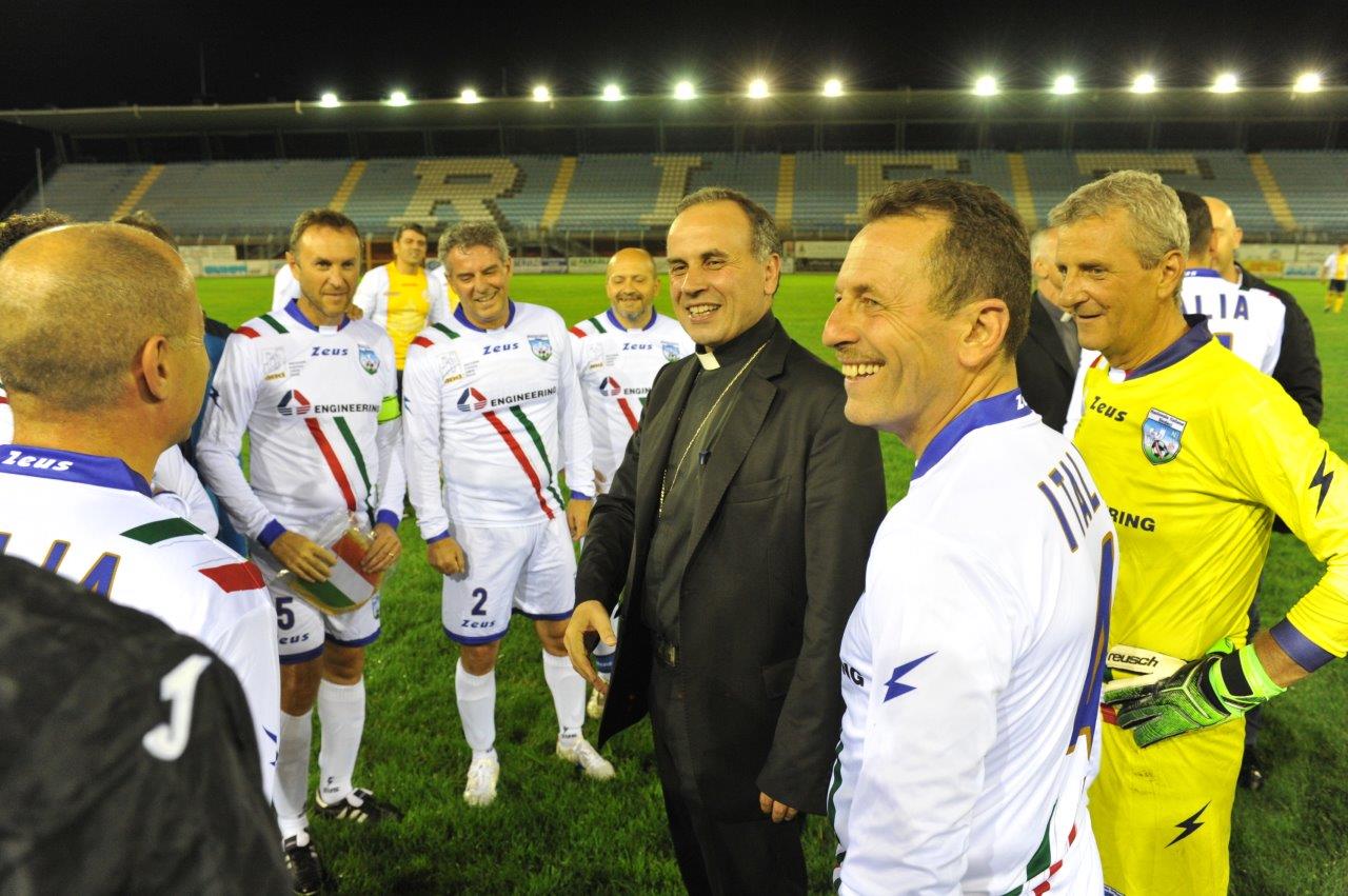 Si è svolto nella serata del 16 settembre allo stadio “Manlio Scopigno” un triangolare di calcio tra la Rappresentativa Vaticana, l’Associazione Italiana Calciatori e la Nazionale dei sindaci. Un torneo che ha portato un’ampia serie di personaggi in campo. Presente anche il vescovo, Domenico Pompili. I 10mila euro raccolti tramite i biglietti e le donazioni sono destinati ai parroci delle zone colpite dal sisma.
