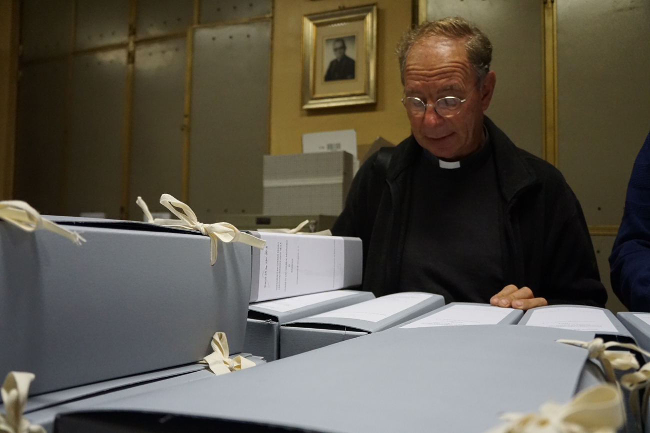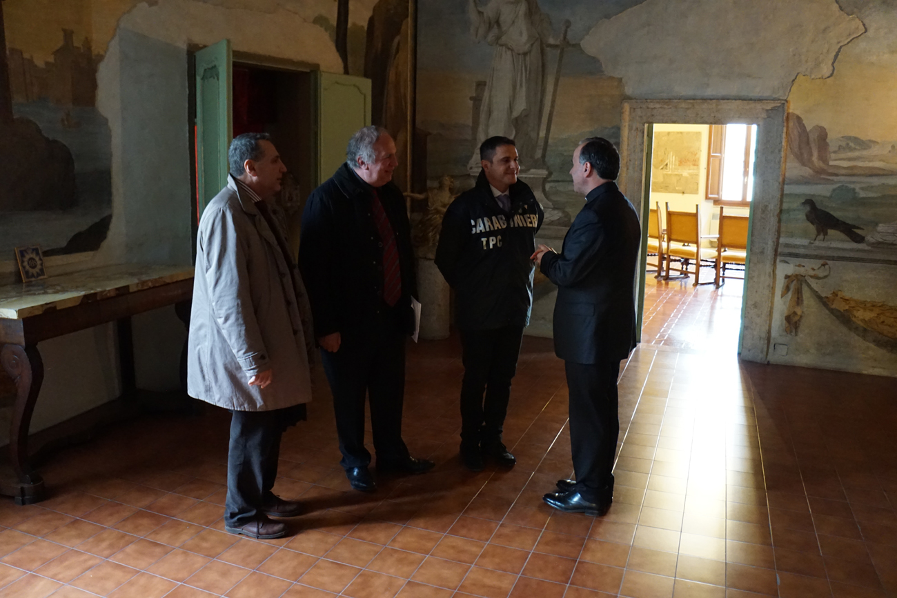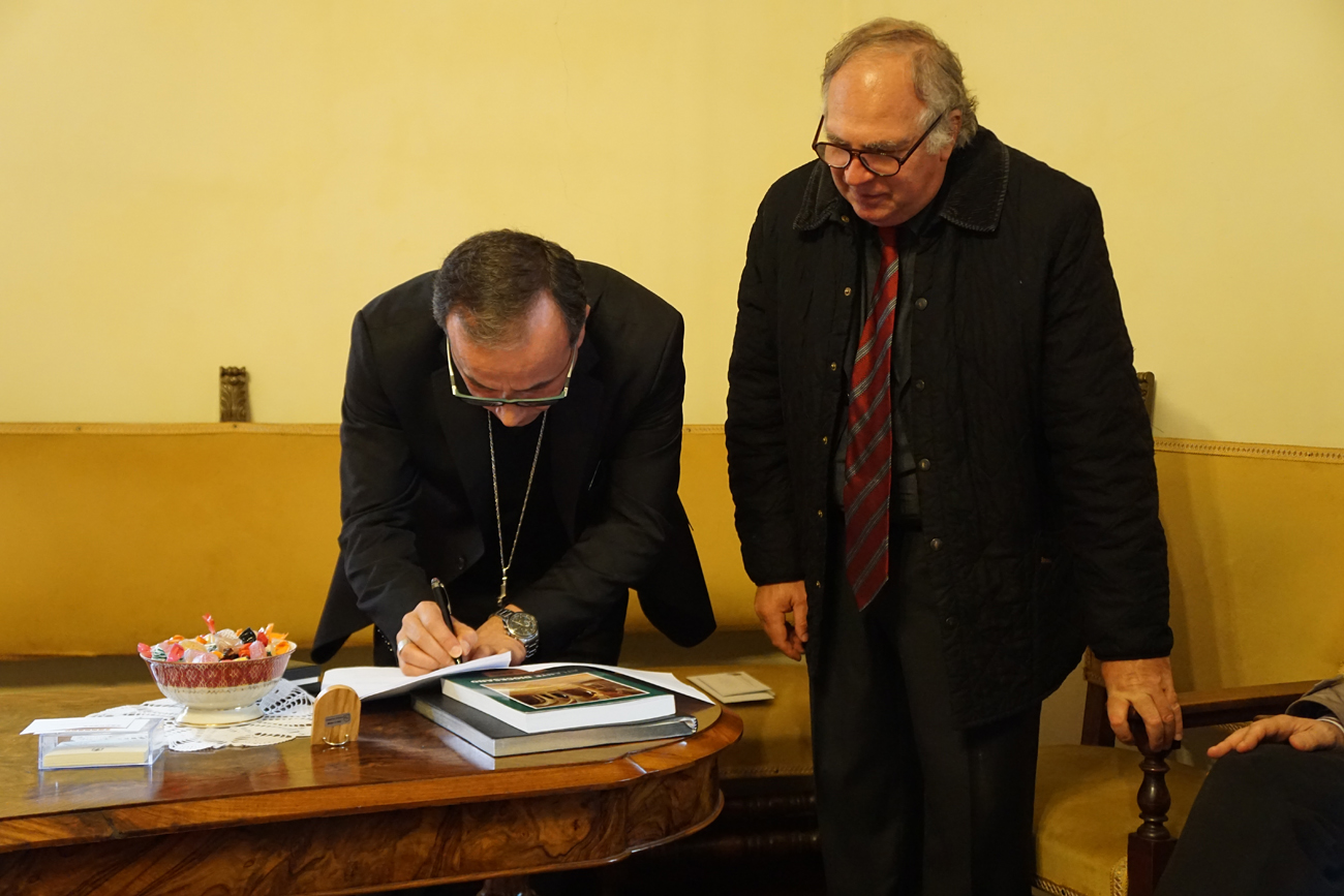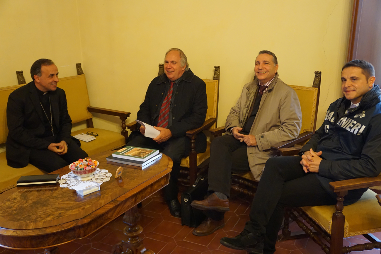 Dopo il collocamento del materiale nei depositi dell’Archivio Diocesano, il vescovo Domenico ha ricevuto e ringraziato i funzionari che hanno sovrinteso alle operazioni di trasporto: il direttore dell’Archivio di Stato di Rieti, Roberto Lorenzetti; il capitano Michelangelo Lobuono per il Comando Carabinieri per la Tutela del Patrimonio Culturale, e il soprintendente archivistico per il Lazio, Mauro Tosti Croce.
