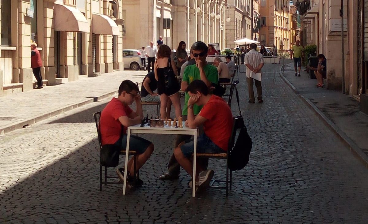 Si sta svolgendo in via Garibaldi un torneo di scacchi promosso dal gruppo di donatori di sangue Fratres in collaborazione con UISP, Rietinvetrina.it, Confraternita di Misericordia, Radiomondo, Circolo Associazione Scacchistica Dilettantistica di Rieti, Musikologiamo, Bar 18.01 e Tesori a quattro zampe.it.