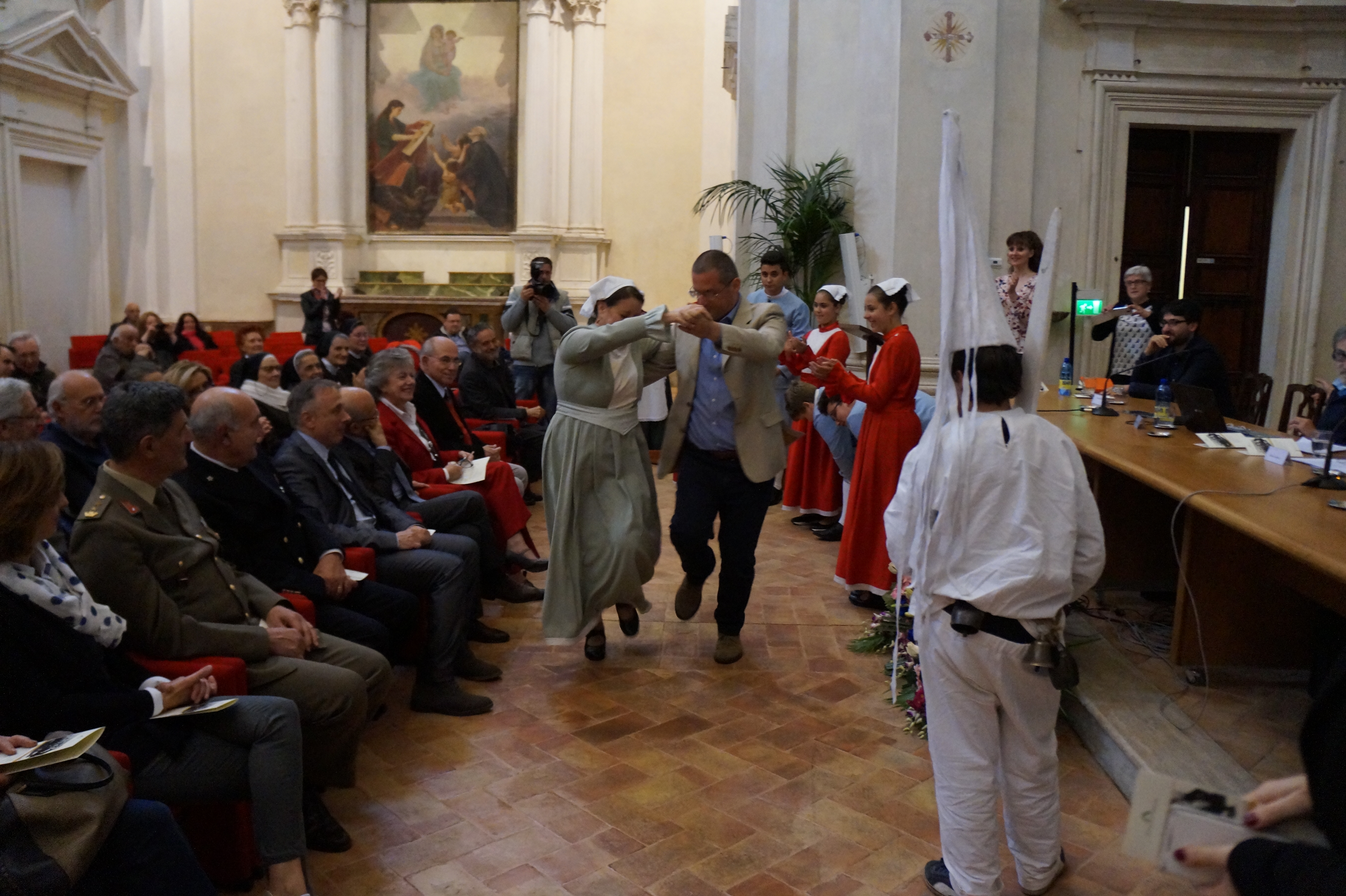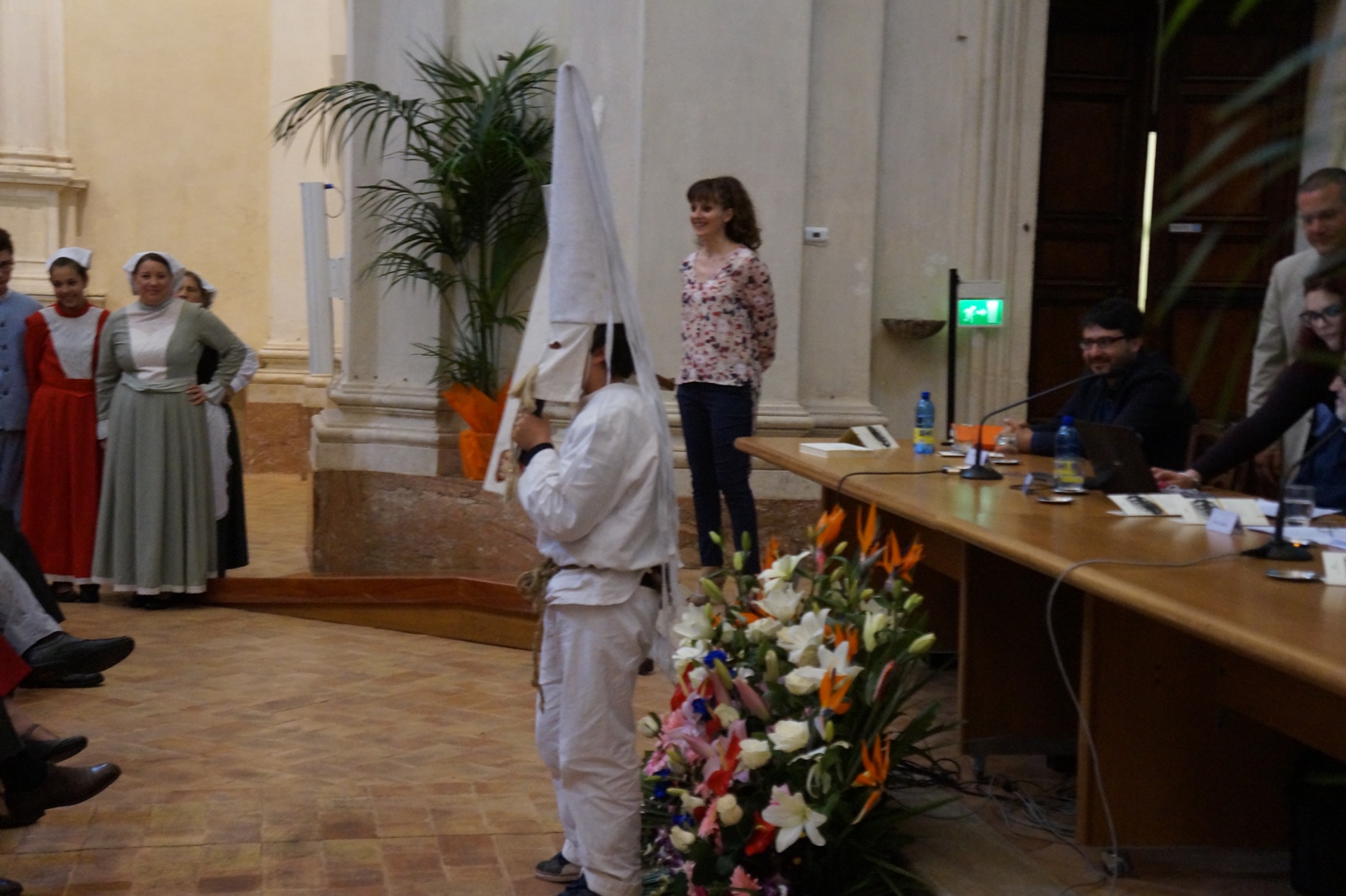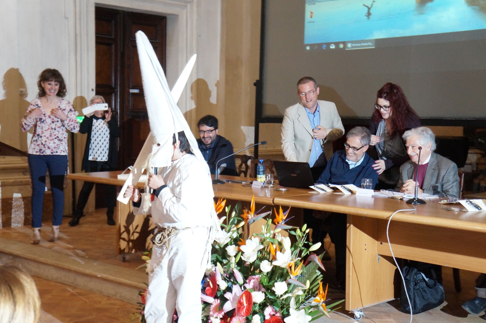“Il cosmo è il campanile” usava dire l’antropologo e attraverso i due estremi si è dipanato il percorso della sua ricerca. “La Compagnia degli Zanni” di pescorocchiano ha sorpreso e divertito la platea con un incursione musicale in costume.