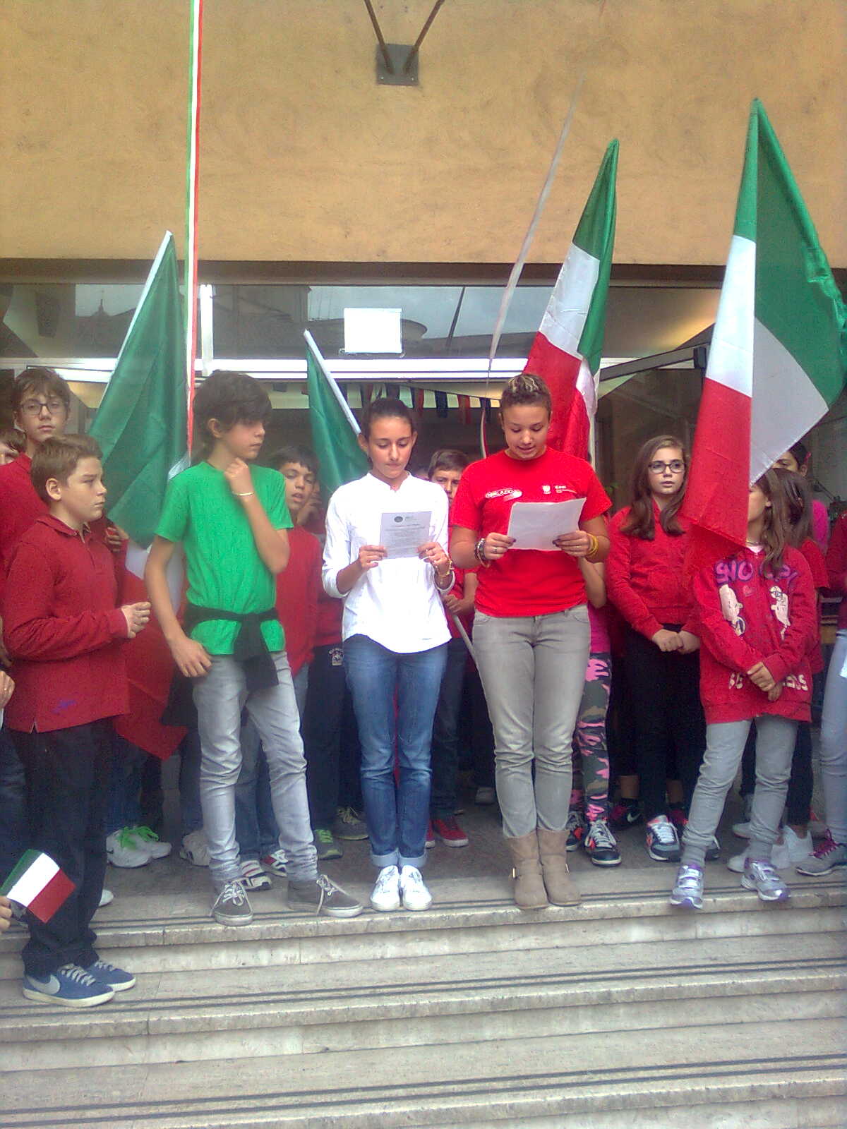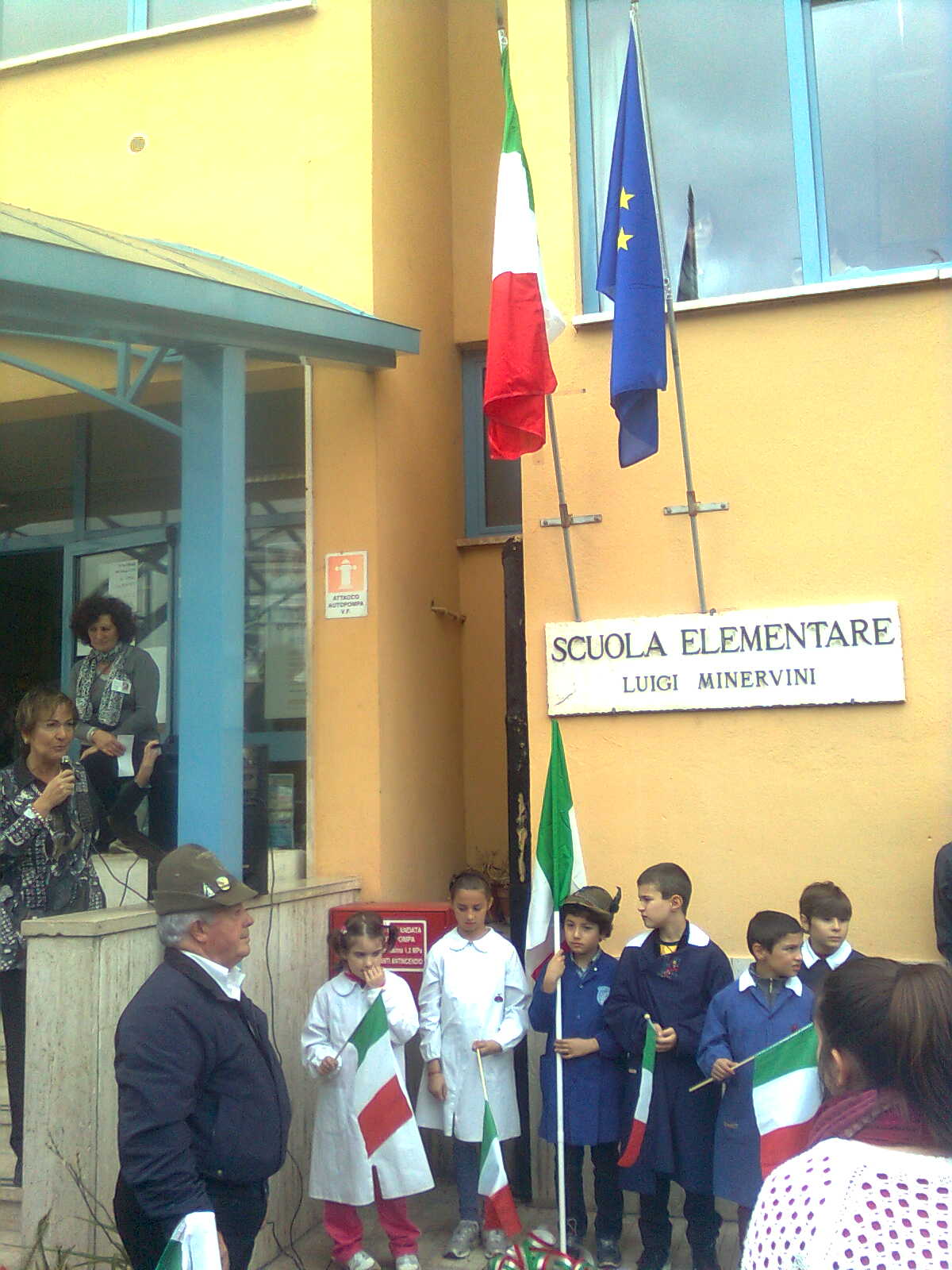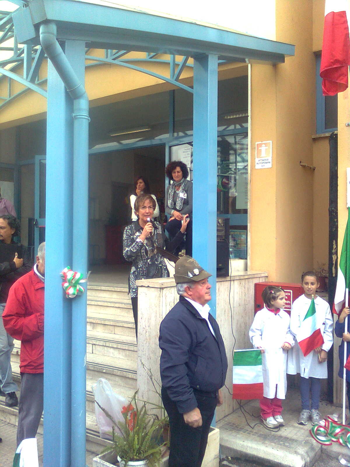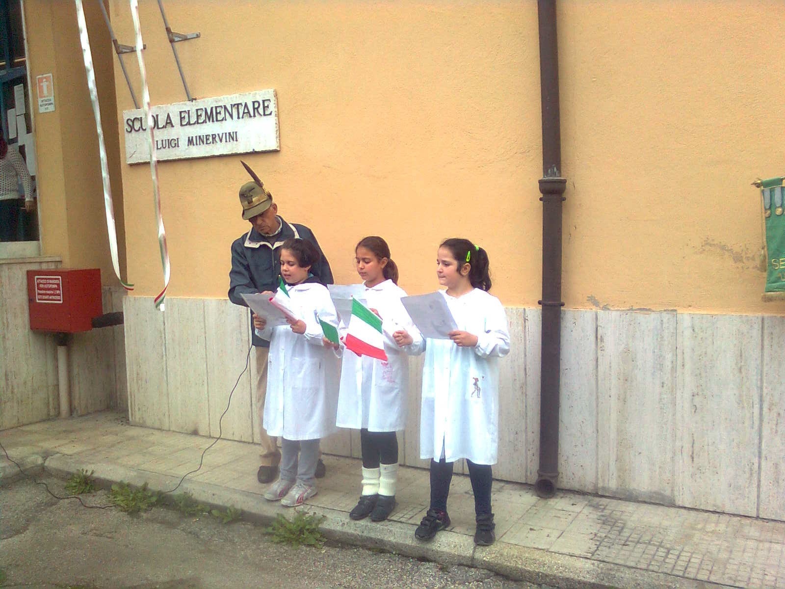 Due alunni trombettieri per gli squilli e l’inno di Mameli, altri allievi scelti per leggere le parole poetiche dedicate alla cara bandiera bianco-rosso-verde, il saluto dei docenti coordinatori in rappresentanza della dirigente scolastica, il saluto del presidente dell’associazione Alpini, con la presenza di vari esponenti dei gruppi della provincia e anche di un gruppo romano con il gagliardetto decorato al valor militare; non mancava il parroco del quartiere don Luigi Bardotti.