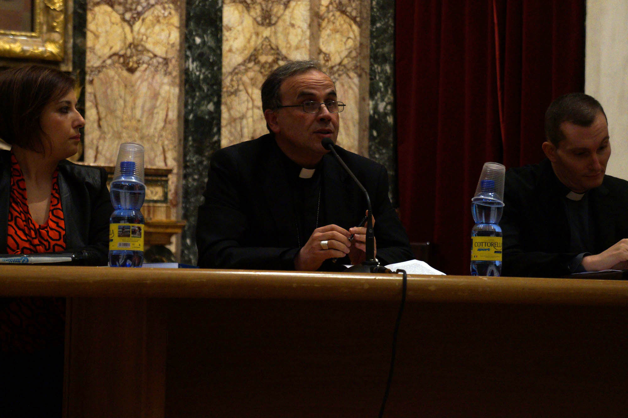 Un pomeriggio denso di contenuti, dunque, eppure leggero, costantemente sospeso tra conferenza impegnata ed elevazione spirituale grazie alla sensibilità dei relatori, complici anche gli inserti musicali assicurati dal coro diocesano, la Schola Cantorum «Chiesa di Rieti», e dal Coro Valle Santa. La speranza è che il pubblico abbia lasciato l’auditorium con la conferma di una consapevolezza necessaria, ma troppo spesso data per scontata: la liturgia si comprende e si ama “per immersione”, sprofondandoci dentro e lasciandosi interpellare da questa esperienza “totale”, che coinvolge l’intelligenza e il cuore, la ragione e i sensi. Questa è stata anche l’idea di fondo dell’intervento iniziale del vescovo Domenico, che ha firmato l’introduzione al volume. Tra le varie suggestioni offerte da Pompili, anzitutto quella secondo cui il movimento liturgico dell’inizio del secolo scorso e poi tutto il rinnovamento conciliare sarebbero stati, tra l’altro, una risposta all’individualismo sempre più marcato promosso dalla cultura politica liberale, tutto centrato sul linguaggio dei diritti e dei doveri del singolo e proteso a rinchiudere la religione entro il recinto della pura interiorità della coscienza, negandone i risvolti pubblici e comunitari. Di qui l’esortazione a recuperare la dimensione pubblica e relazionale della fede che proprio nella liturgia si manifesta al massimo grado e a celebrare non in modo «morto, inautentico ed elitario», bensì «vivo, autentico e popolare».