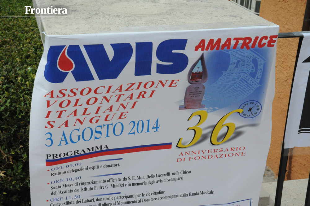 Si è svolta il 3 agosto ad Amatrice la trentaseiesima edizione della Festa del Donatore. La manifestazione, organizzata dalla Sezione Avis locale, ha visto la partecipazione di moltissime delegazioni da tutta Italia. In prima fila le sezioni gemellate con Amatrice (Padova e Manfredonia) e poi a seguire gli altri, in una sfilata che colorerà di labari la cittadina di Amatrice.