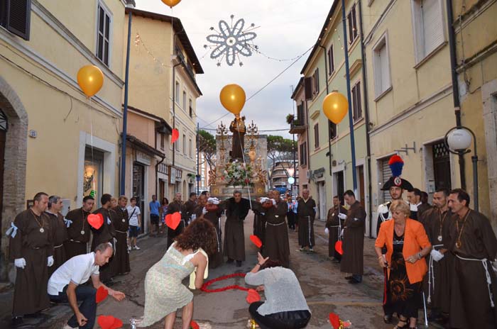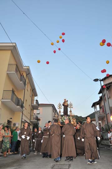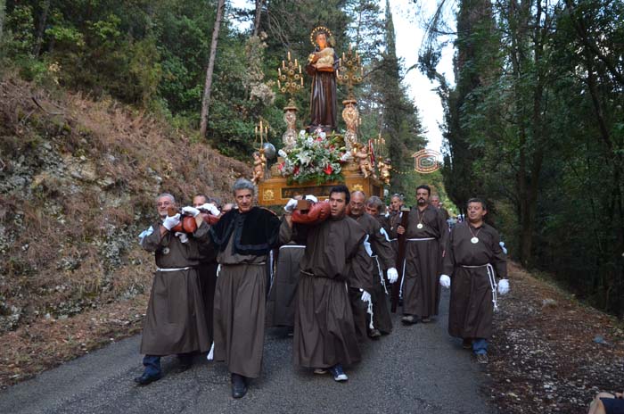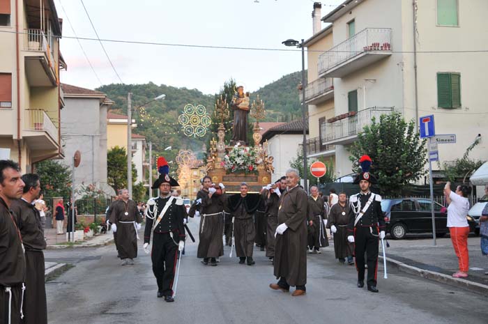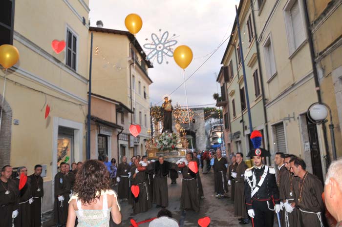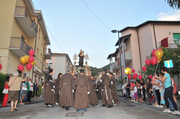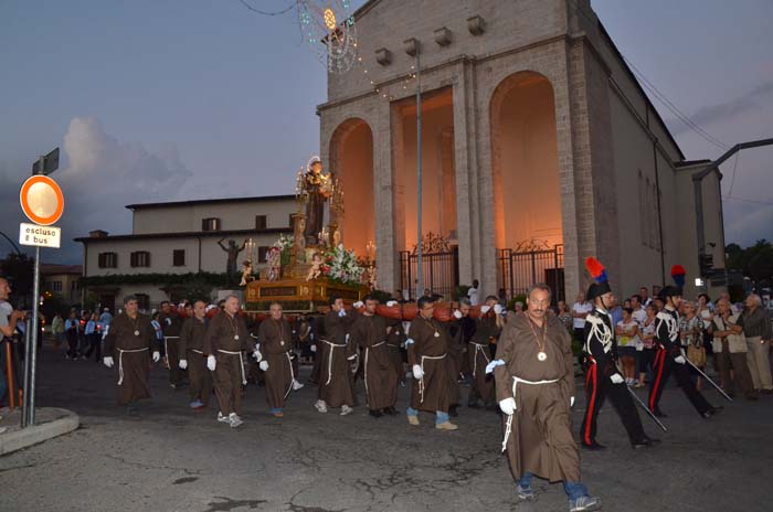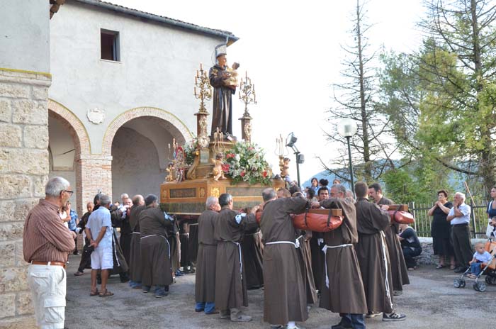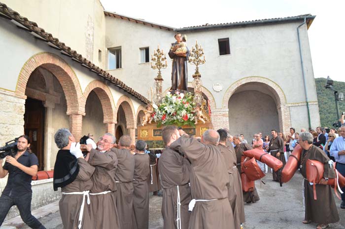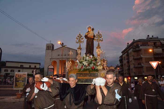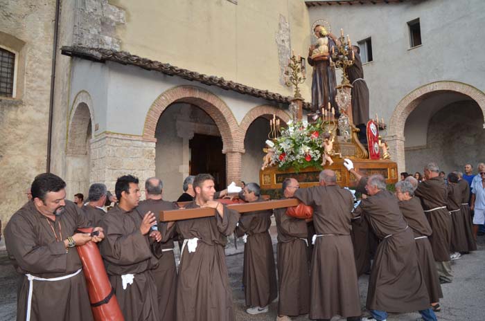 I festeggiamenti religiosi vanno dalla esposizione della statua del Santo mercoledì 21 agosto alle 18,30, proseguono con le messe di ogni giorno allo stesso orario fino alla benedizione dei bambini di domenica 25 agosto alle ore 11,00 ed alla Messa solenne celebrata da S.E. Mons. Delio Lucarelli Vescovo di Rieti, il clou dei festeggiamenti sarà la processione di domenica 25 agosto alle ore 21,00 che si snoderà attraverso le vie del Borgo per risalire, al lume delle torce e delle candele a Sant’Antonio al Monte.