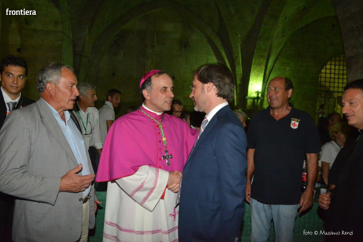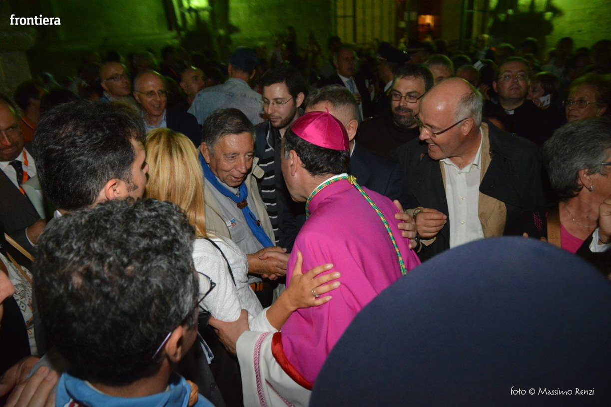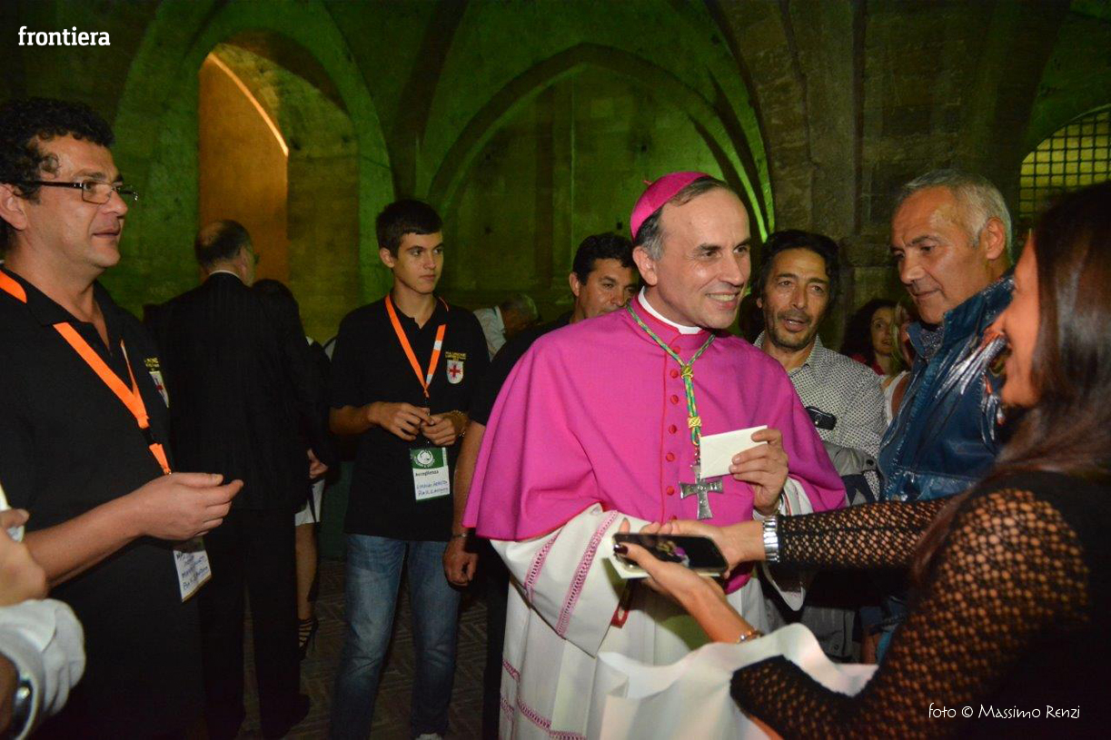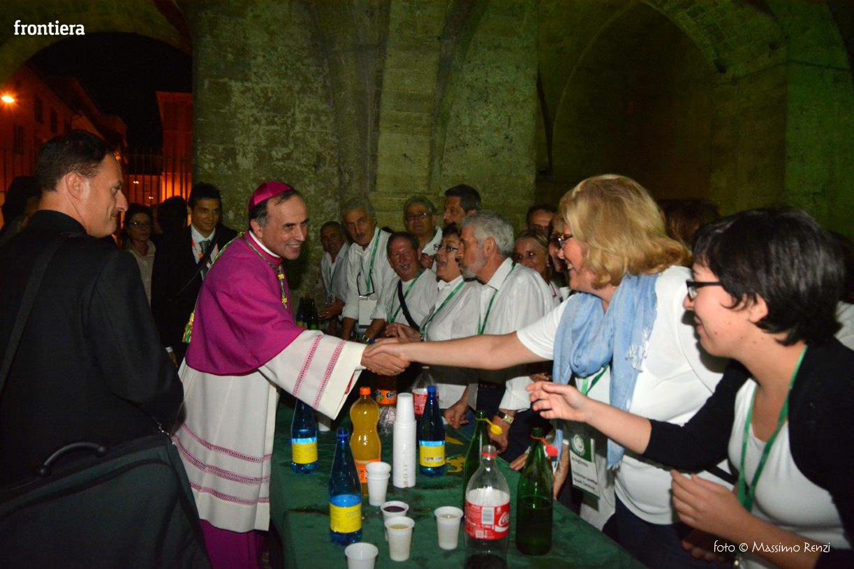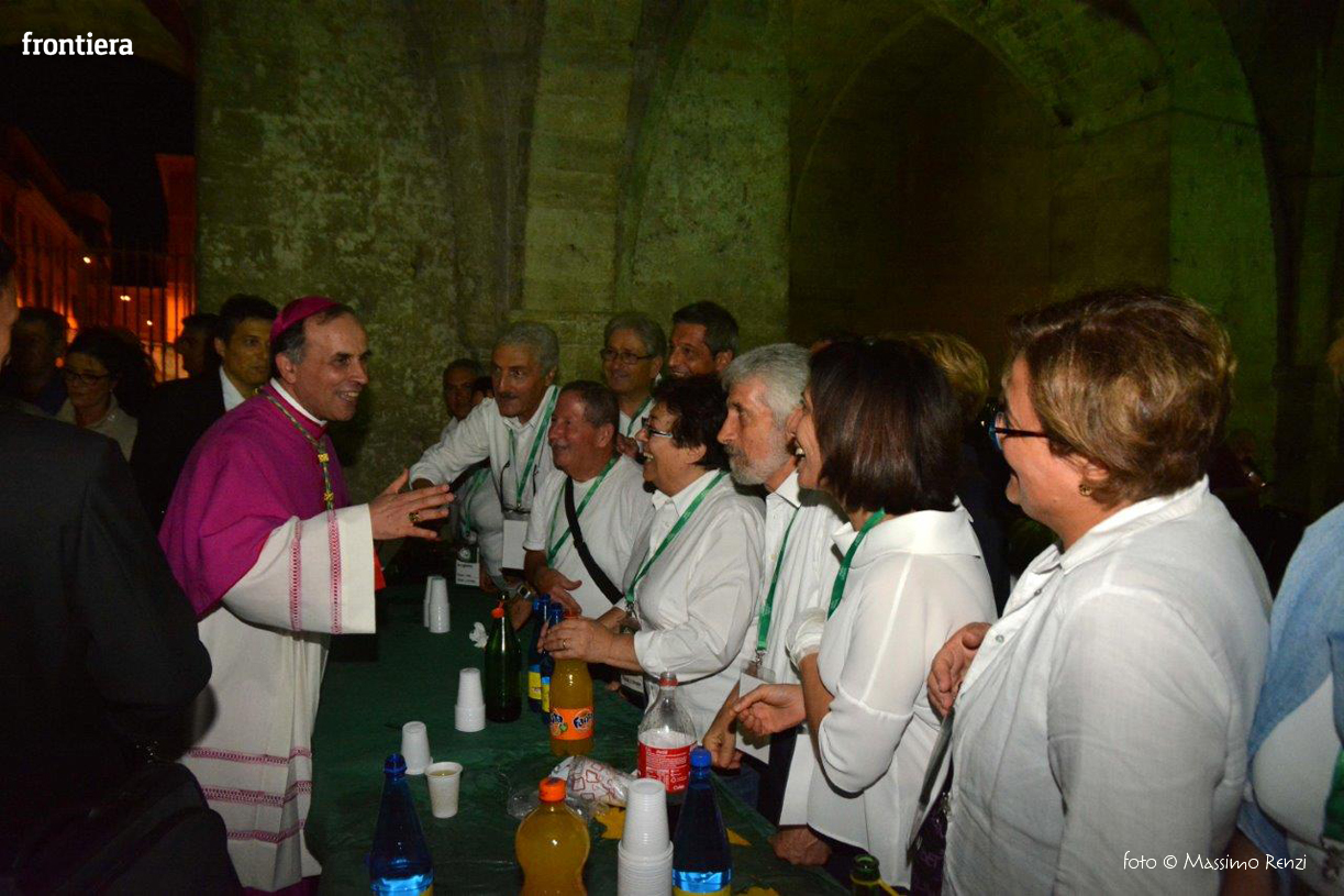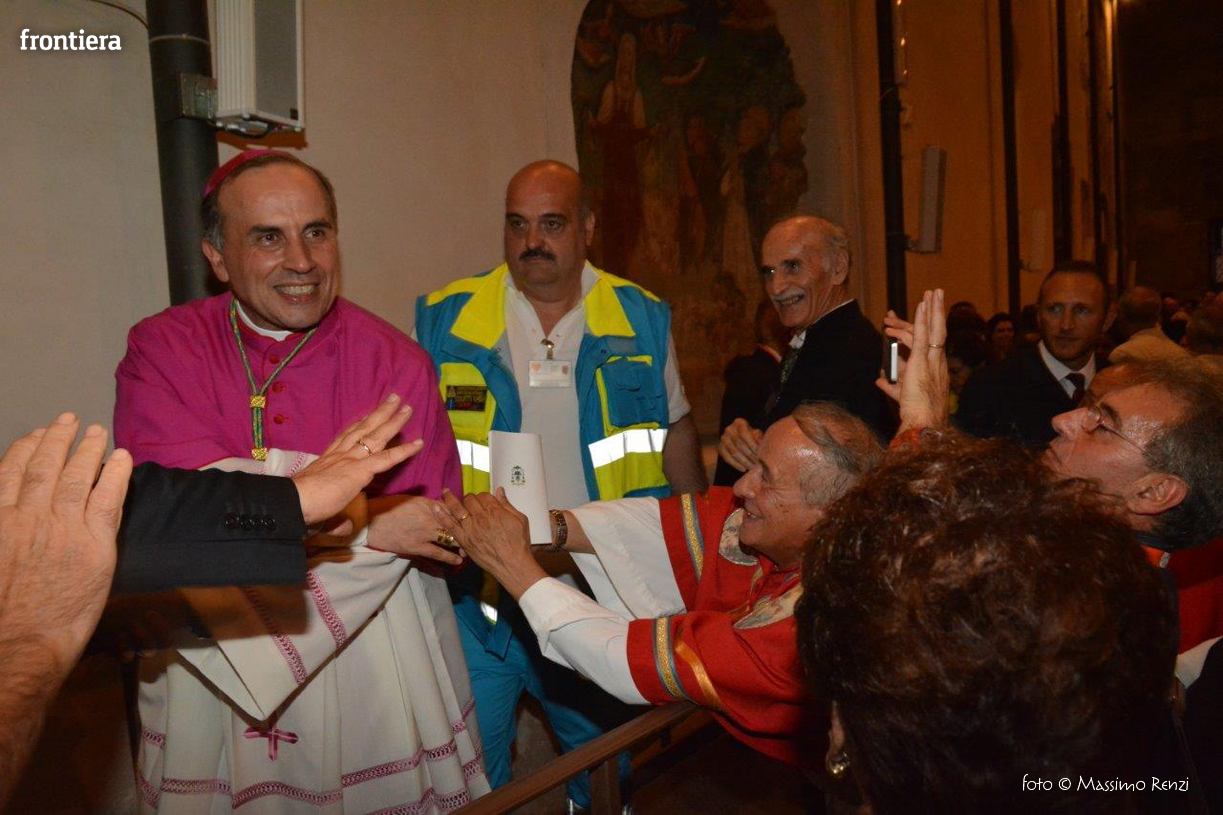 Ha avuto un abbraccio e una parola, una stretta di mano e un momento d’ascolto per ognuna delle persone che l’hanno voluto salutare sotto gli archi del Vescovado. È lo stile di don Domenico: quello di insegnare il Vangelo con l’esempio. Al termine della cerimonia della sua ordinazione episcopale aveva ricordato alla comunità cristiana la necessità di aprire i cuori, di ricercare il contatto, di costruire ponti, e non ha mancato di incarnare immediatamente quello slancio, di risolvere da subito l’invito nel gesto. Una necessità dell’anima, una disciplina del cuore che si riempie di tenerezza quando si rivolge ai malati, ai poveri, a chi affronta nel modo più duro le difficoltà della vita. Lo si è visto nella chiesa di San Domenico al fianco dei malati assistiti dall’Unitalsi e all’ospedale provinciale, in una visita che ha portato il vescovo alla scoperta dei ricoverati di tanti reparti. L’incontro, la partecipazione e la ricerca di unità come primo tratto dell’episcopato.