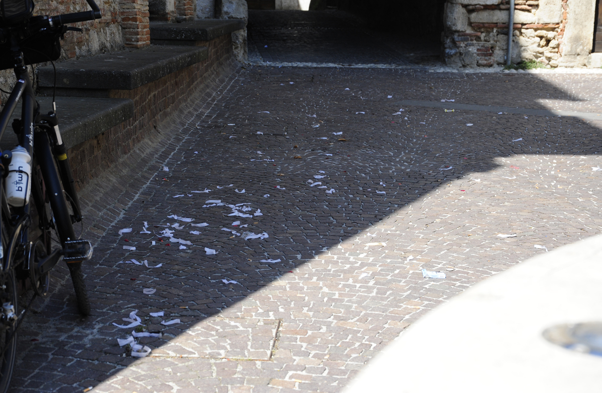 Chi si è incontrato a passare in piazza San Rufo a metà mattinata non ha potuto mancare di notare un certo disordine: cartacce a terra, bottigliette di plastica dell’acqua consumate e abbandonate, le immancabili cicche spente tra i sampietrini e addirittura una tazzina di caffè dimenticata in bella vista sulla “caciotta”…