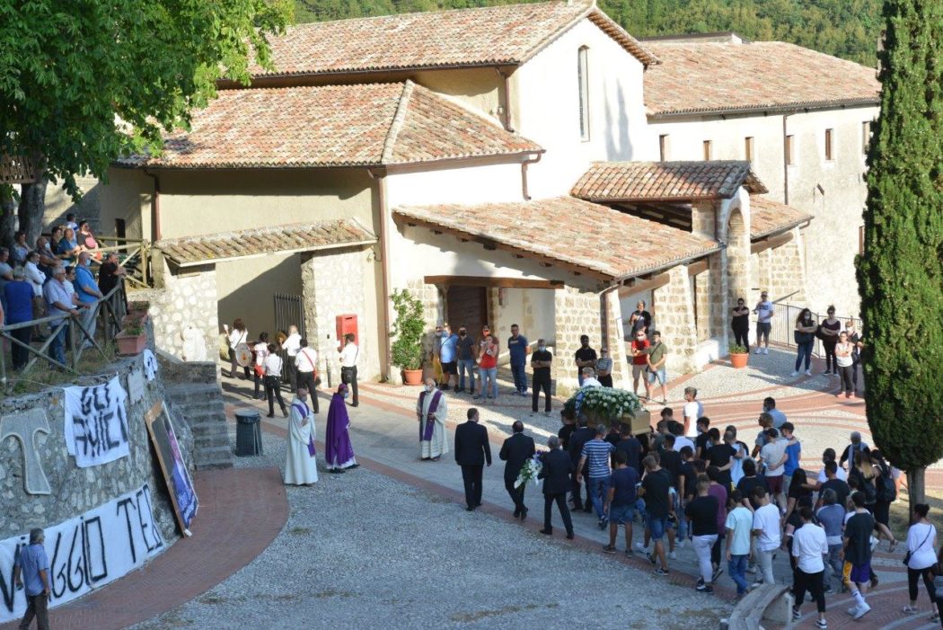 Una famiglia composta, chiusa in dolore fortissimo che solo chi ha vissuto può capire. E in tanti, tantissimi attoniti, increduli sono giunti ad accogliere la salma in arrivo al santuario. La celebrazione funebre presieduta da monsignor Pompili e da tutti i frati che da sempre conoscono Teo si svolge all’aperto: troppe persone per poter accedere alla piccola chiesa.