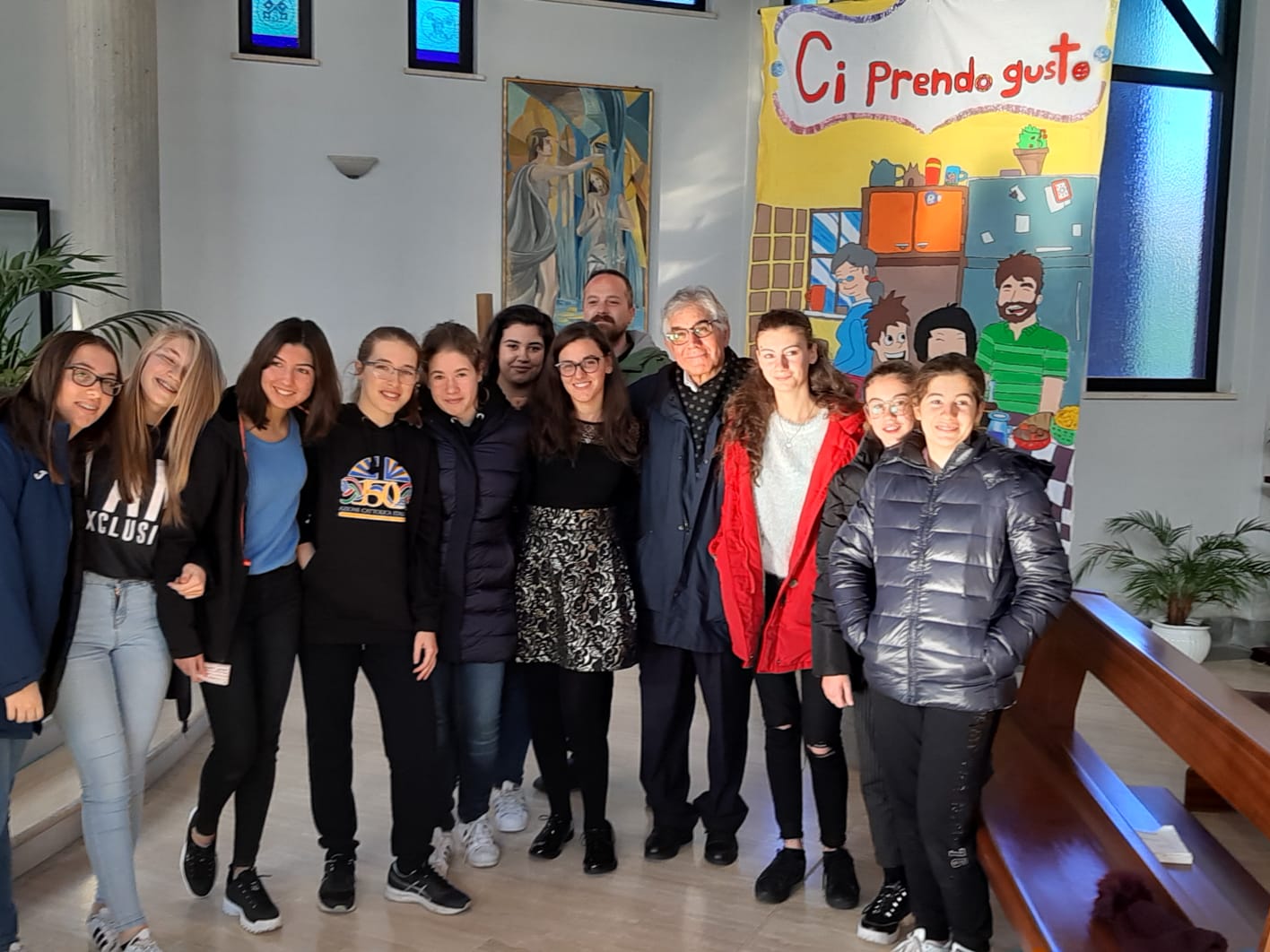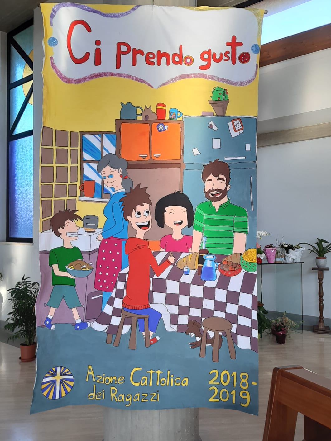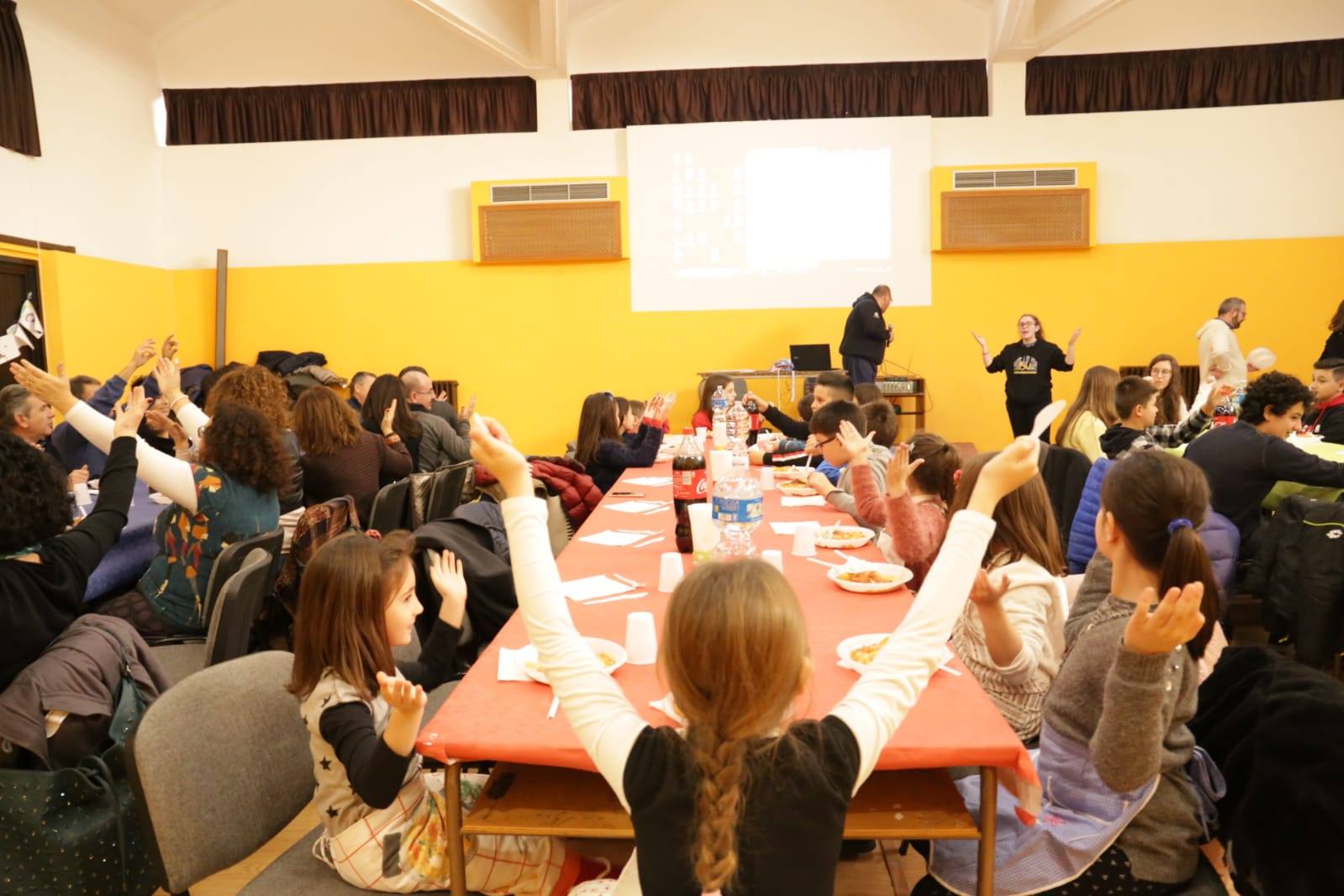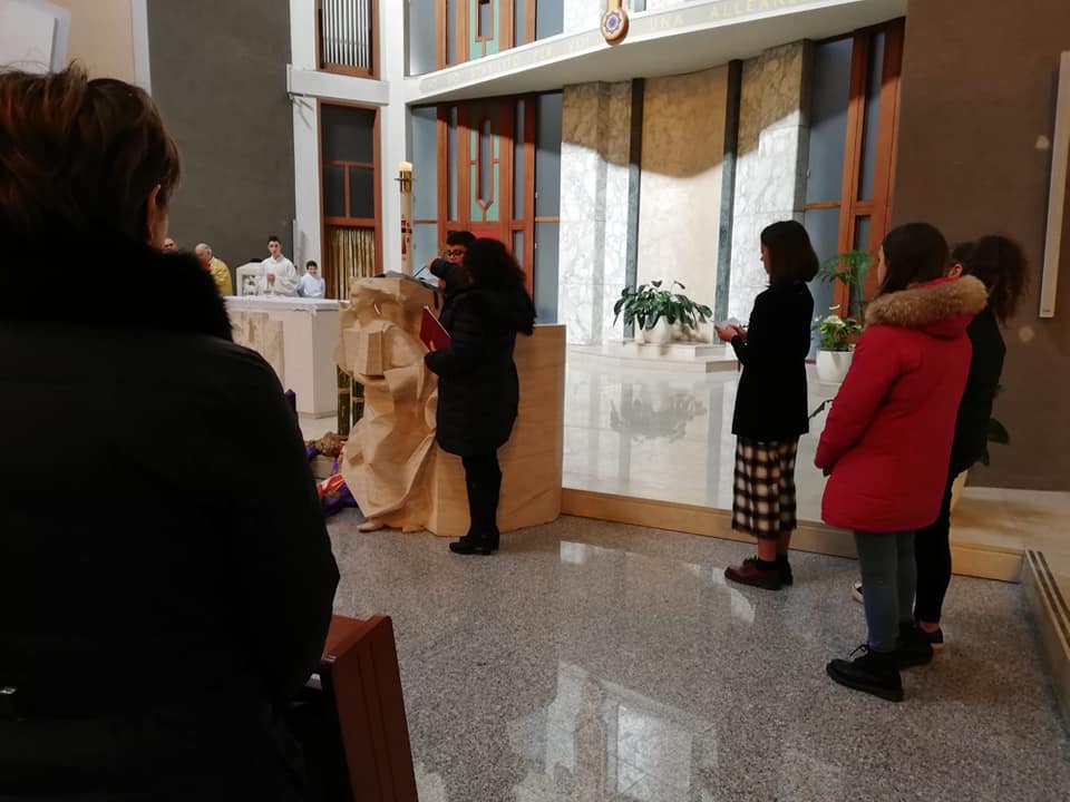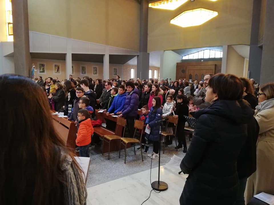 Anche i parrocchiani di Regina Pacis, nella cancellata accanto al sagrato, hanno trovato un grande striscione di stampo acierrino. Ed erano numerosi i fanciulli, accanto ai meno numerosi ma intrepidi giovani e adulti, che nella parrocchia dedicata a Maria regina della pace hanno animato la celebrazione per poi proseguire la festa nel salone parrocchiale: un bel pranzo in fraternità, assieme alle famiglie, e poi il pomeriggio in allegria con giochi per piccoli e grandi cimentatisi a preparare una speciale merenda, in sintonia col tema che guida l’itinerario Acr sulla convivialità e sul “gusto” dell’aprirsi alla parola di Gesù.