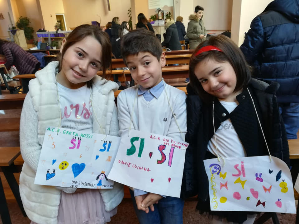 Un momento vissuto con grande emozione e partecipazione. Da qualche parte unito alla gioia della celebrazione di battesimi di parrocchiani, come avvenuto a Regina Pacis e a Vazia. Per tutti, un grande “sì”, pronunciato assieme a quello di Maria, alla chiamata del Signore (“Ecco il nostro sì, nuova luce che rischiara il giorno…” canta un inno caro all’associazione risuonato da parecchie parti il giorno dell’Immacolata), come esprimevano i cartelli degli acierrini di S. Giovanni Bosco, la vivace parrocchia del quartiere Villa Reatina che ha visto i ragazzi, insieme ai giovani e agli adulti, rinnovare il proprio impegno associativo. Un bel cartellone, riproducente il manifesto dell’Acr di quest’anno, campeggiava a S. Giovanni Battista: nella chiesa del quartiere Campoloniano, al momento la parrocchia più giovane e popolosa di Rieti, grande entusiasmo nel ricevere, da parte dei soci, la “carta di adesione” dalle mani del parroco.