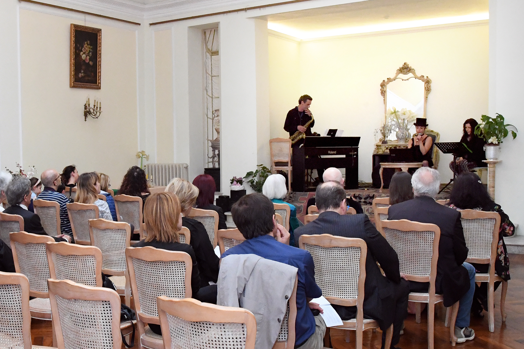 Poi, d’improvviso, l’anima già rapita è di colpo accarezzata dalla bellissima voce di Silvia Costanzi, che con grazia e capacità vocali non comuni culla l’astante nel deliquio di emozioni suscitate dal testo di Wilde, riscattando così quella “assenza di immaginazione” che l’autore dublinese imputa al giovane Douglas, troppo concentrato su se stesso e sul proprio narcisismo. Infine, l’ultimo ingrediente di questo mix artistico unico ed inedito, definito forse in modo troppo restrittivo “concerto – lettura”: la musica di Elmar Schafer, sassofonista tedesco oramai da anni trapiantato in Italia che con il suo magico sax ed il piano elettronico lega la recitazione al canto sino a costituire collante insostituibile dell’intera piece.