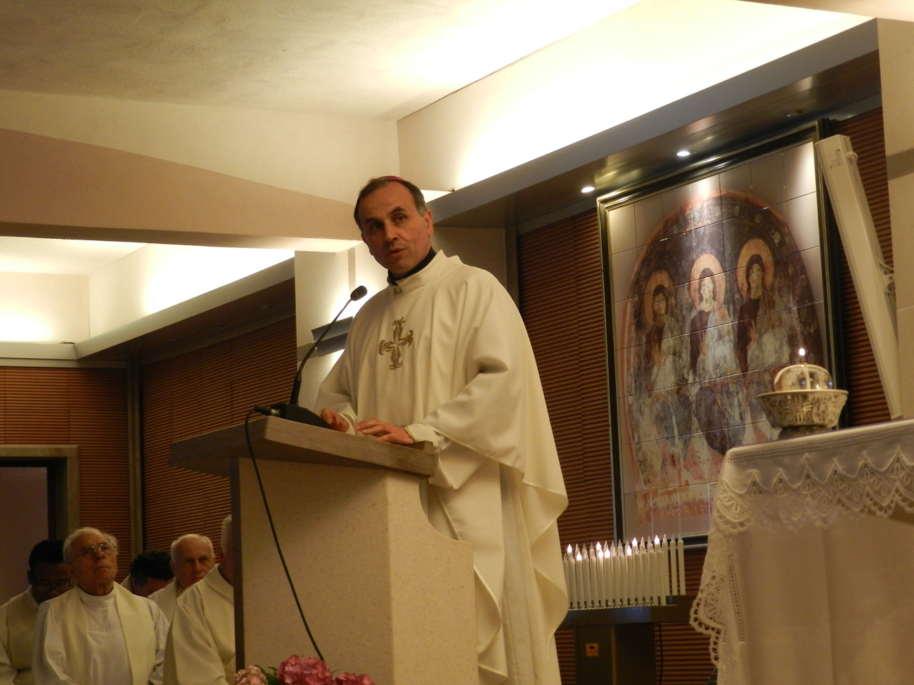 Dopo la santa messa, i sacerdoti hanno consumato il pranzo nel refettorio del santuario. In precedenza avevano visto un interessante documentario, Il Pianto delle zitelle, incentrato sull’antica pratica, caratteristica di Vallepietra, del canto di canzoni tradizionali legate alla Passione per opera delle ragazze nubili alla vigilia della grande solennità della Trinità.