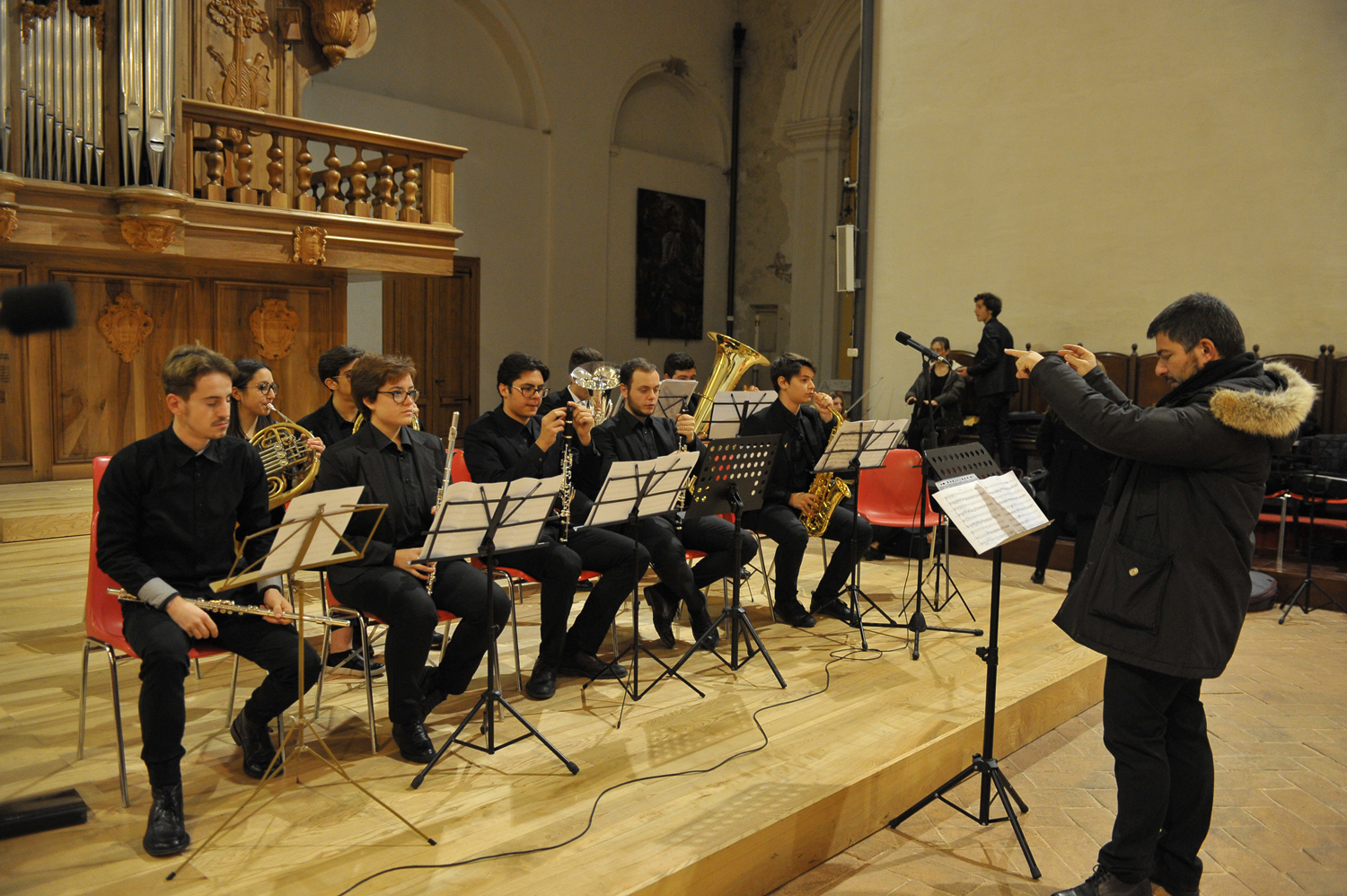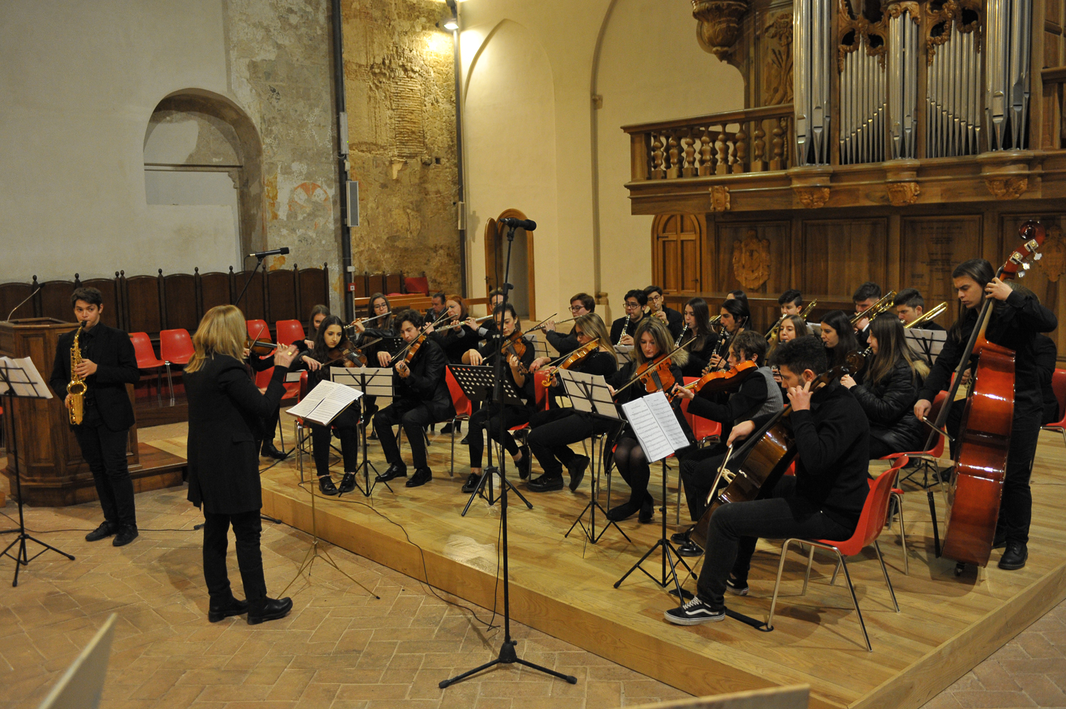 Coinvolgente ed emozionante il concerto del Liceo Musicale eseguito in occasione della premiazione delle opere dei Madonnari, nella chiesa di san Domenico nel tardo pomeriggio di domenica 17 dicembre. Le melodie eseguite ben si sono coniugate con le sensazioni evocate dalle ammirate immagini sacre, create dagli artisti che hanno partecipato alla competizione grafica all’interno della più ampia iniziativa della prima edizione de “La Valle del Primo Presepe”, fortemente voluta da mons. Domenico Pompili e sostenuta con convinzione dalle amministrazioni locali. Le parole della prof.ssa Gerardina Volpe, Dirigente Scolastico dall’Istituto Magistrale, sono state di ringraziamento e stima verso gli allievi e i docenti coinvolti, ma anche di gratitudine per l’occasione che è stata data al Liceo Musicale di mettersi al servizio di un’occasione culturale e spirituale così importante per la città e la Diocesi.