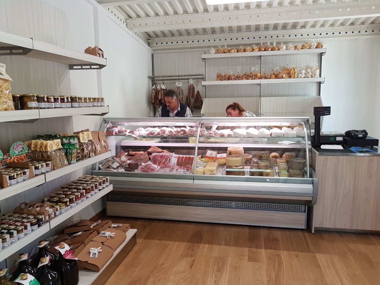 Al taglio del nastro del nuovo negozio di generi alimentari, il Sindaco Stefano Petrucci, il direttore dell’ufficio per la ricostruzione Stefano Fermante, l’onorevole Oreste Pastorelli e il Vescovo Domenico Pompili.