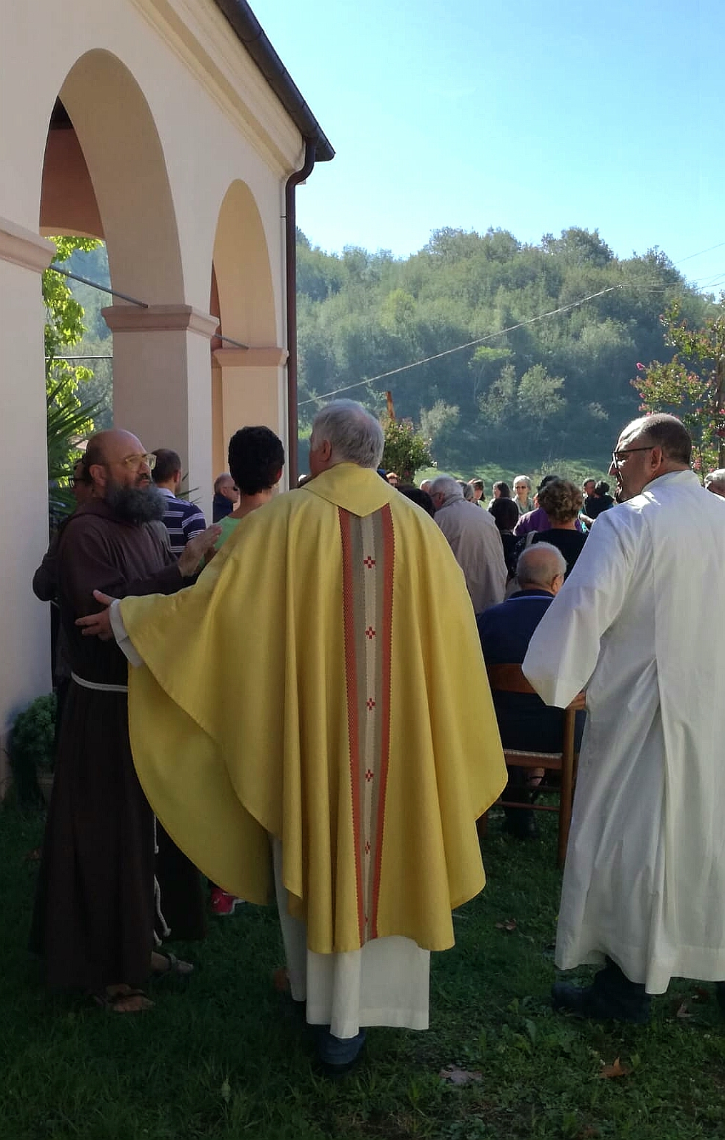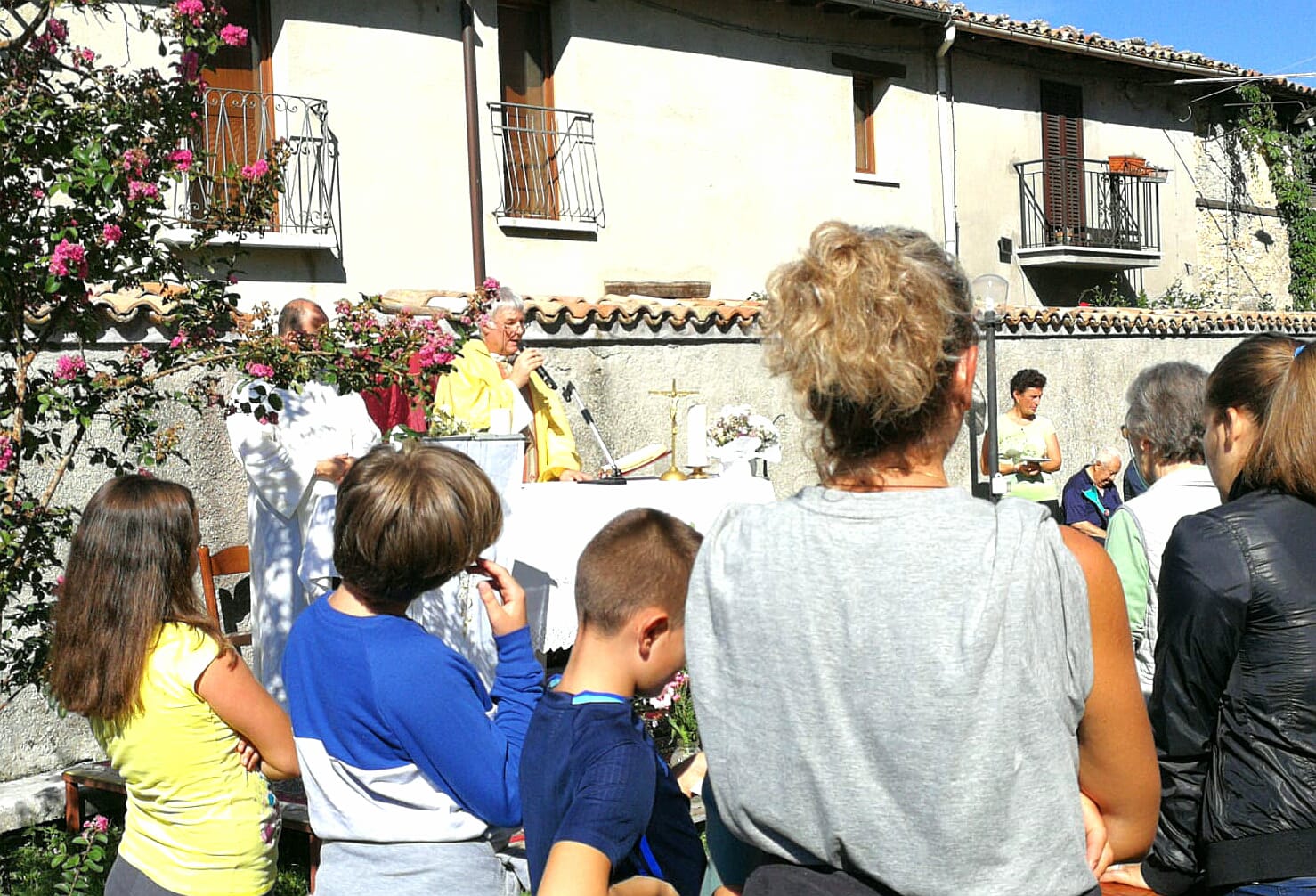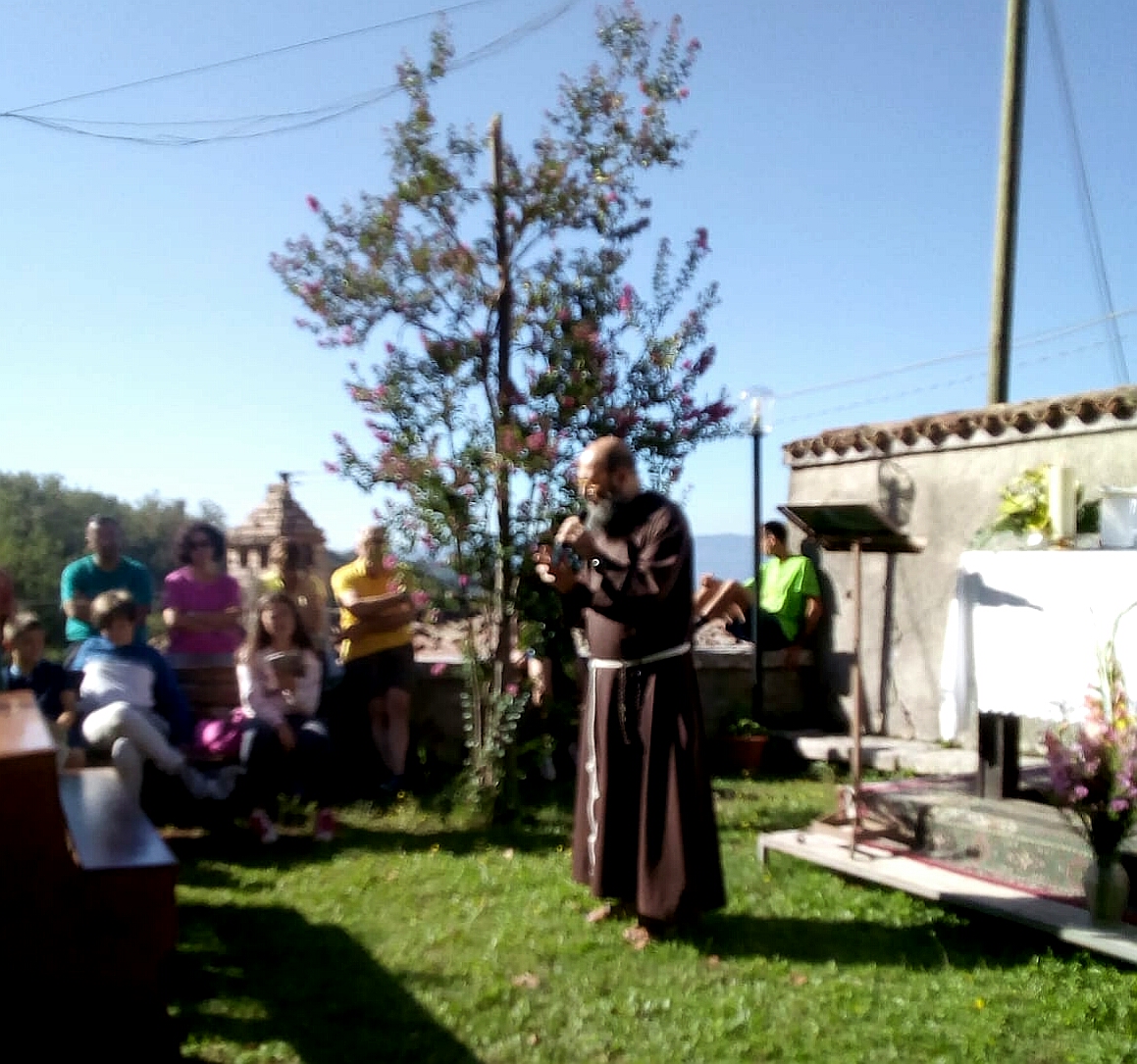 Il numeroso gruppo di pellegrini è partito da Vazia percorrendo prima la statale per il paese natale del santo, poi svoltando nei sentieri dei boschi. All’arrivo i devoti hanno riempito tutto il piazzale circostante il santuario, e a loro si si sono unite tutte le persone giunte da ogni paese limitrofo, per assistere alla Santa Messa.