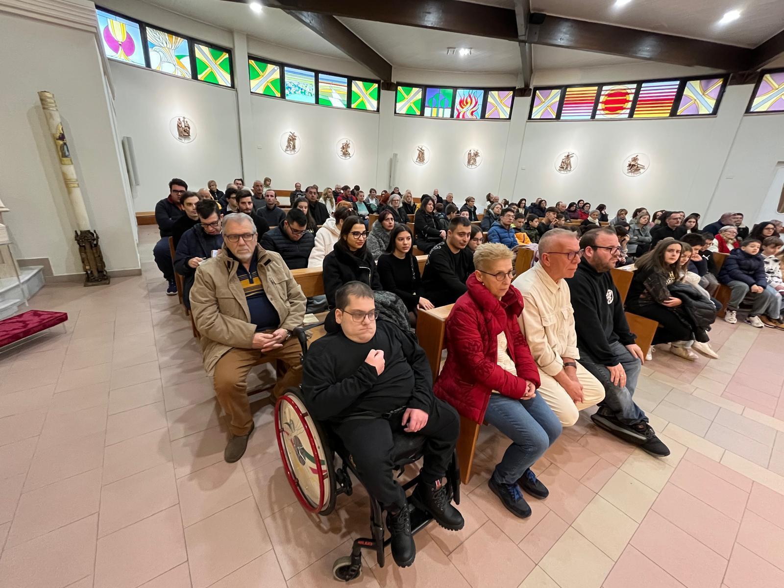Don Emmanuele ha poi ricordato il cuore di questa domenica: «la gioia nasce dalla certezza di non essere soli, perché il Signore è con noi: sempre, soprattutto nei momenti difficili della vita». A chiudere questo incontro di fede e umanità, le parole significative di Andrea Paolucci, che hanno riecheggiato come un inno alla resilienza e alla dignità: «Sono del mondo degli uomini, ma sono nel mondo come un ladro che vuole rubare normalità. Non aspiro a virtuosismi conformistici, mi adatto ad esistere come posso. Sarei leggiadro senza queste pesanti scarpe».